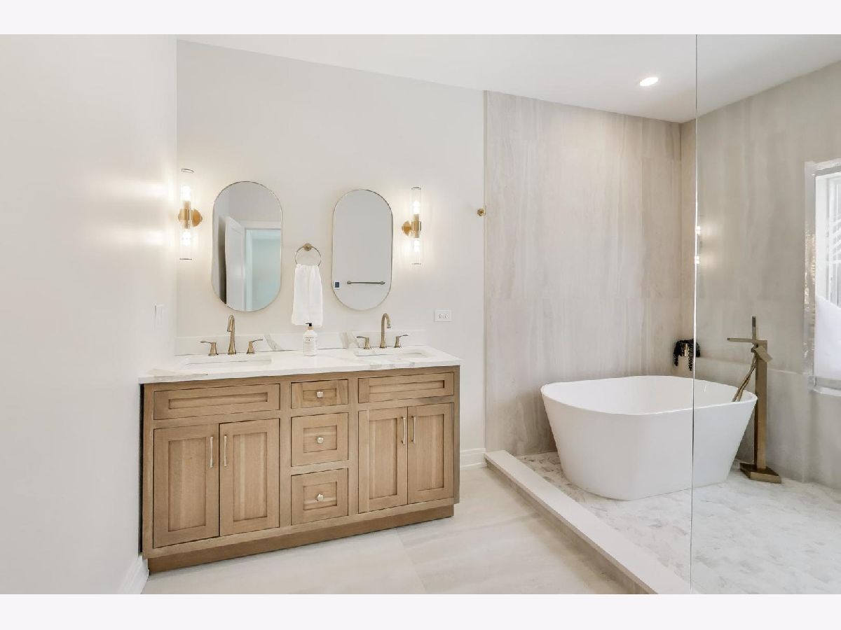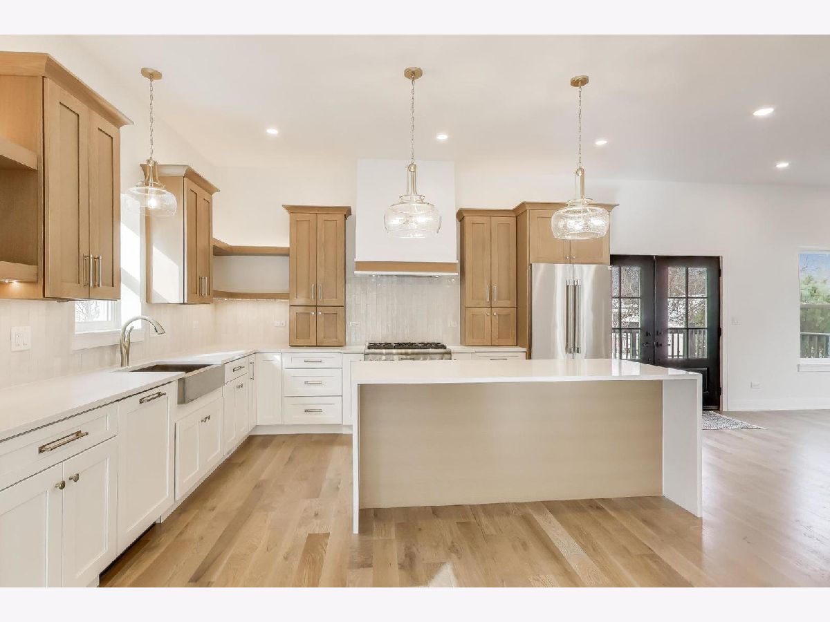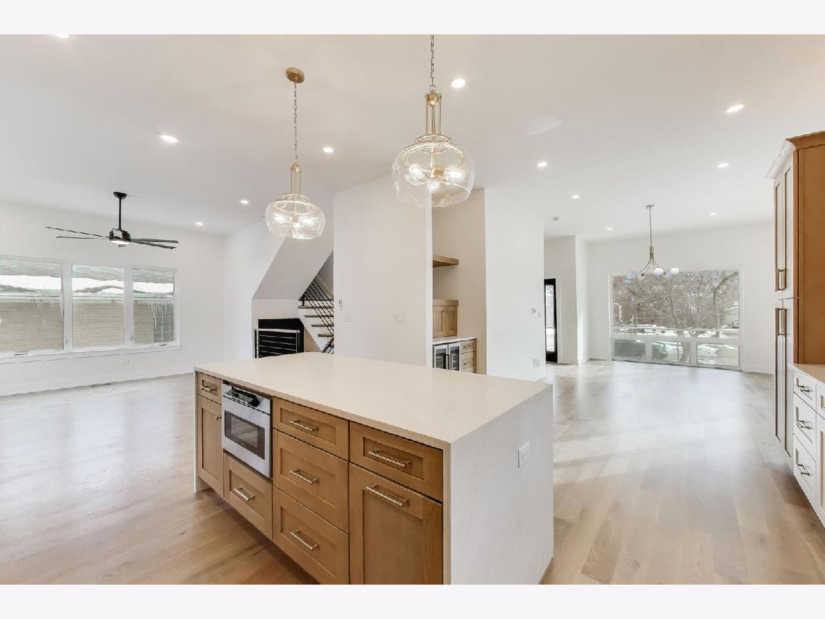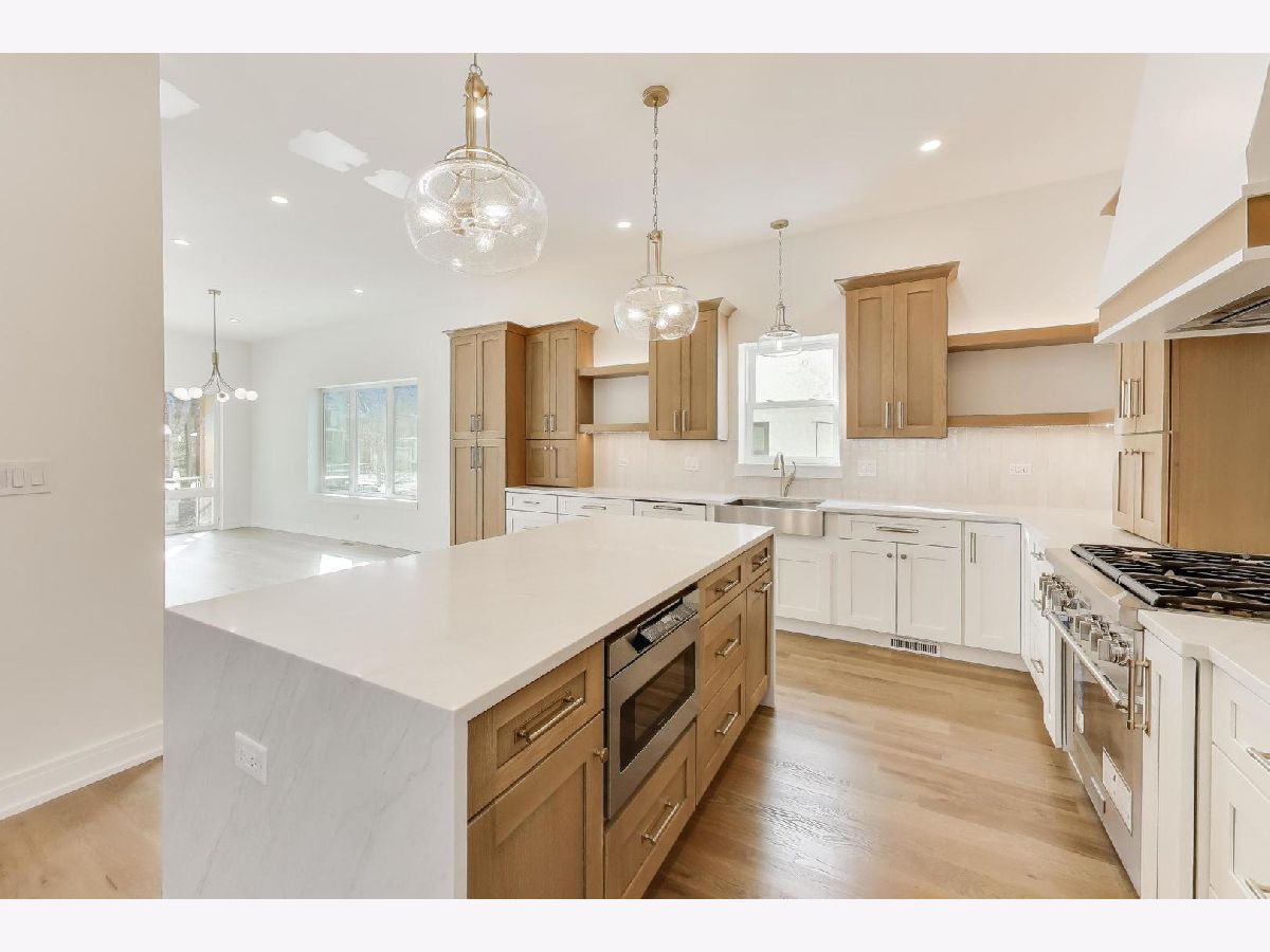 Stunning home rebuilt in 2025 in highly desirable Riverside! This exceptional residence offers an open floor plan, high ceilings, and every detail carefully considered. High quality finishes, five generously sized bedrooms, and three full bathrooms with comfortable heated floors. Perfectly blending modern convenience and functional design, this is an exceptional place to call home. Bright and airy throughout, the open-concept design offers living and dining room floor-to-ceiling windows, white-oak hardwood floors throughout the first and second levels, a living room with modern electric fireplace, and modern metal-oak stair railings. The sun-filled dining room opens into a stunning kitchen and a comfortable family room. The chef's kitchen is the heart of the home, featuring custom tall cabinetry, premium quartz counter-tops, a beautiful waterfall island, and designer fixtures that seamlessly flow with the luxury appliances, including a wine fridge and beautiful finishes. The primary suite provides natural light, generous walk-in closet, and a spa-inspired bath that features a freestanding soaking tub, glass enclosed shower, rain shower, dual vanities and the comfort of heated floors. Two additional upstairs bedrooms and a beautifully finished bathroom offer flexibility for family, guests, or work-from-home. Abundant windows fill every room with natural light. There is a full, finished attic for plenty of storage and endless possibilities. Conveniently located washer and dryer on the second floor. The basement offers fully finished ten-foot ceilings, two additional bedrooms and a beautifully finished full bathroom with glass enclosed shower and heated floor. The basement offers endless flexible space that is ideal for everyday living and entertaining. There is a recreation room with a wet bar featuring a blue quartz counter-top, and premium engineered hardwood floors. Behind the walls, enjoy peace of mind with all new electrical, plumbing, full-house closed cell insulation, roof, drain tile system with perimeter membrane and extra backup sump pump, tankless water heater, 200+Amp service, two separated high-efficiency furnaces and A/C systems, windows, and doors. Exterior highlights include a detached, two-car garage with 220V ready-for-EV-charger, new poured concrete driveway, James Hardy board siding, and and inviting cedar wood front porch. Spacious rear deck, and expansive yard. This home offers the perfect balance of neighborhood charm and convenience, near schools, town, and Metra. Don't miss this opportunity to own a luxurious home in a prime location!