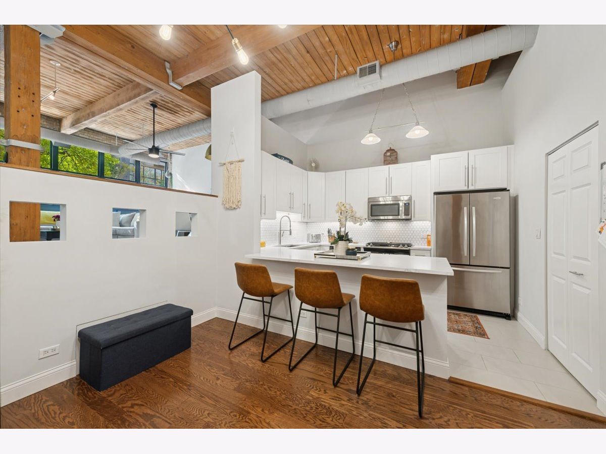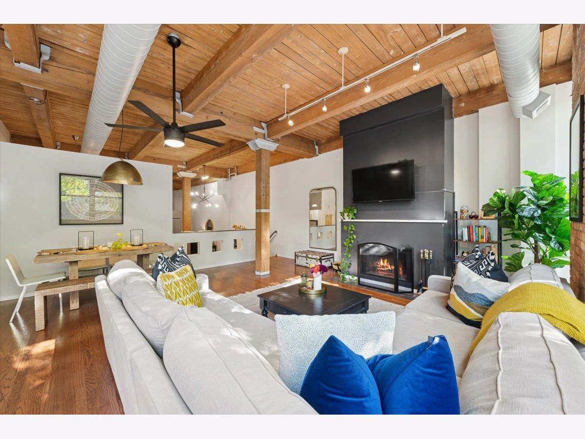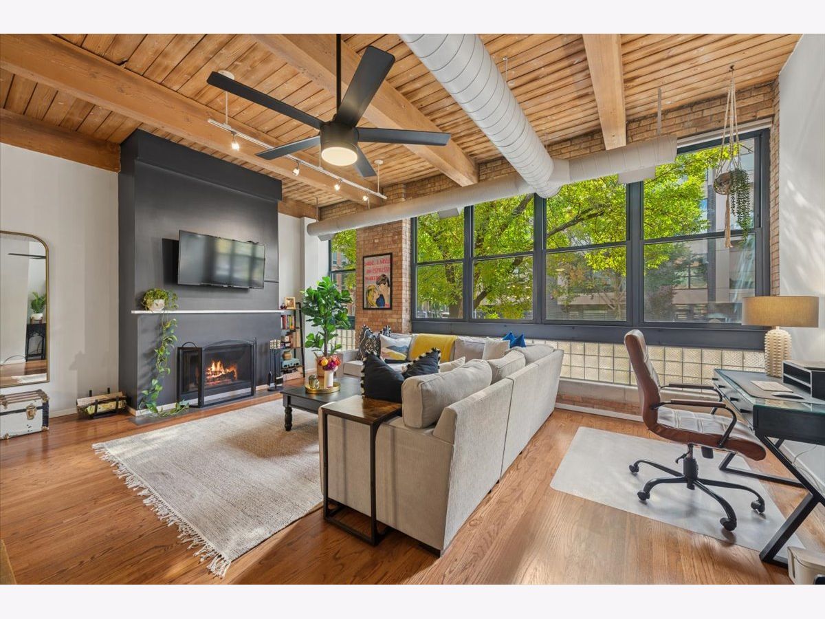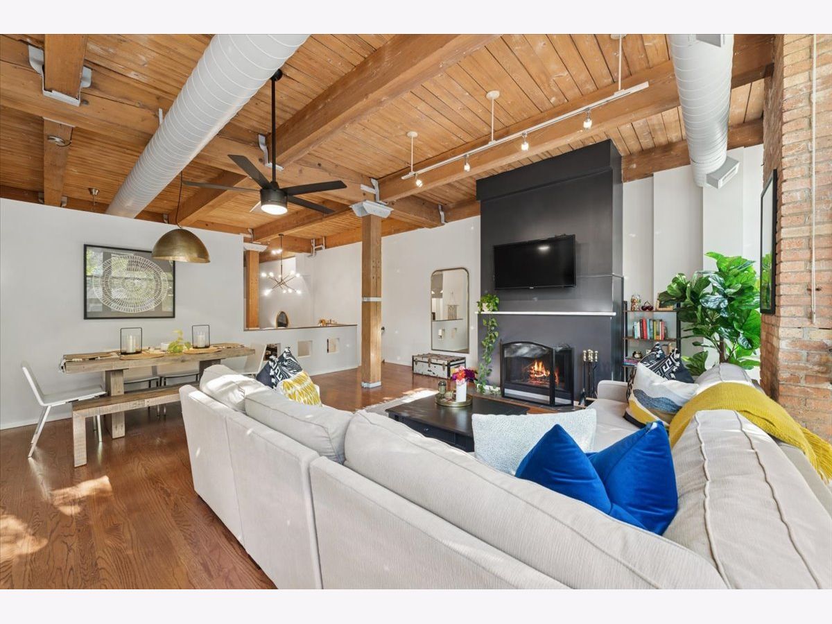 Welcome Home to 2804 LakewoodAve. Prepare to see WOW! Rarely available -very large 1Bed-1Bath -NYC Style timber loft in prime Lakeview steps to Lincoln Park in boutique style (only 20total homes) Metalworks Loft building. Before you enter the foyer into your next home, step within a two story common hallway atrium w/huge skylight where historic charm of the past (32,000 industrial building) meets the present in a modern style loft home. Comfort + warm timber beams, exposed brick, large exposed support beams throughout featuring tall 12-14 ft ceiling heights, oversized windows, hardwood floors mostly throughout main living, just some of the main highlights that make this such a unique home. A large all white Kitchen (renovated in 2021), large peninsula w/seating for 3, quartz counters + lots of lower and upper cabinetry, timeless tile backsplash, and SS Whirlpool appliances complete this space. Step into the main living room, able to accomodate a "suburban size" couch + a dining area + your home office if you need an additional spot to work, a wood burning fireplace is the rooms focal point (for the holidays and those Chicago winters), w/large oversized windows south facing exposure will flood this space w/natural light. Truly flexible open layout that can be customized for your needs. An updated accessible bathroom (renovated in 2021), w/walk-in shower and clean/modern finishes, stackable LG washer/dryer installed 2022, custom closets installed in master + hallway 2022, new hot water tank installed 2025, updated ceiling fans complete the interior updates. Secured exterior parking space additional -$20k. Located at the vibrant intersection of Lakeview and Lincoln Park (on the corner of Diversey and Lakewood), you're just steps from some of these neighborhoods' best dining, shops, parks, entertainment, Southport Corridor and CTA.