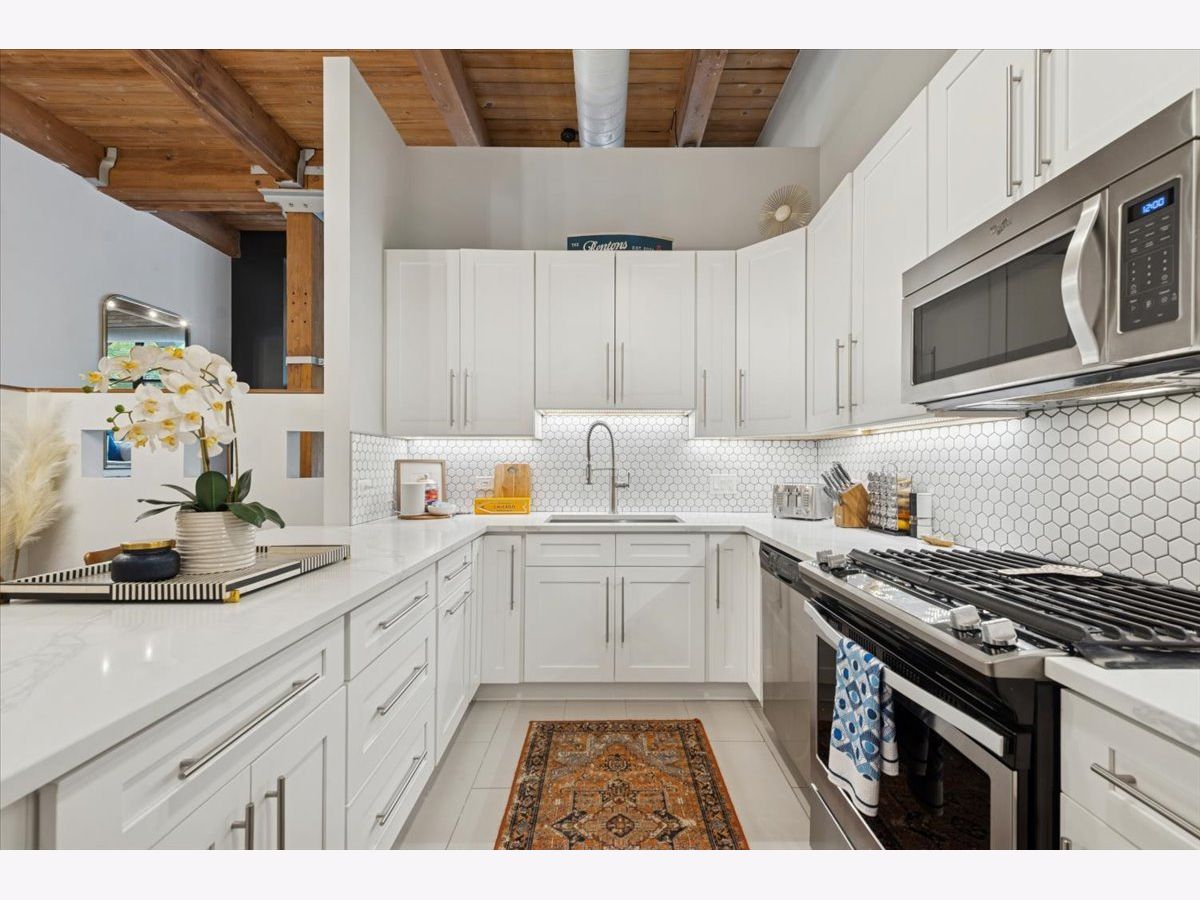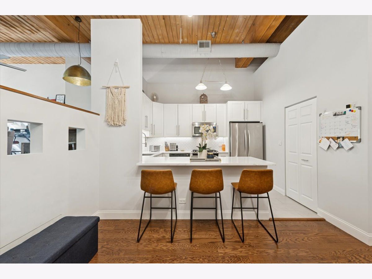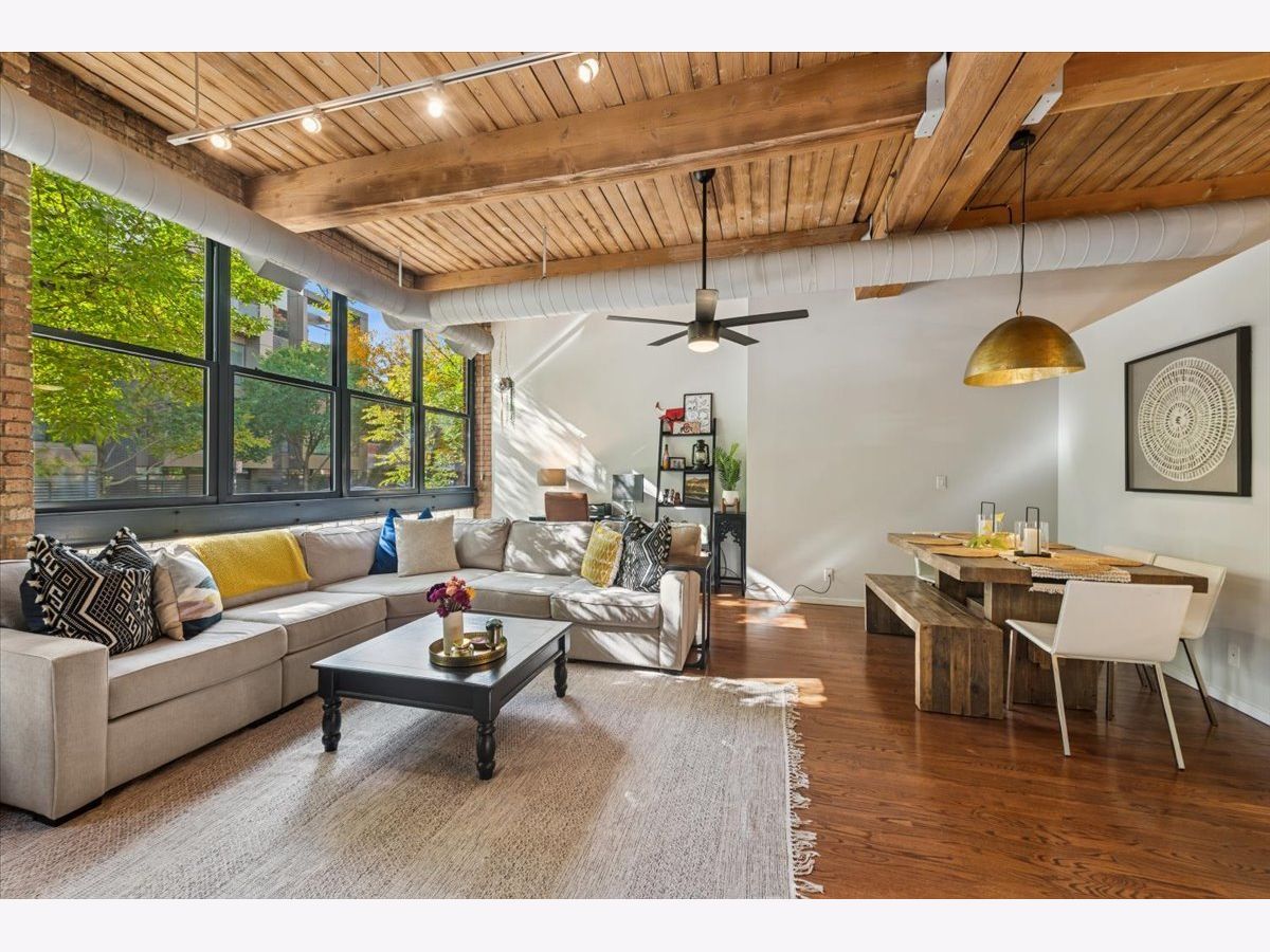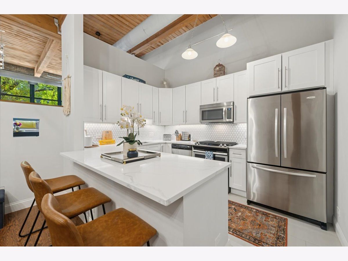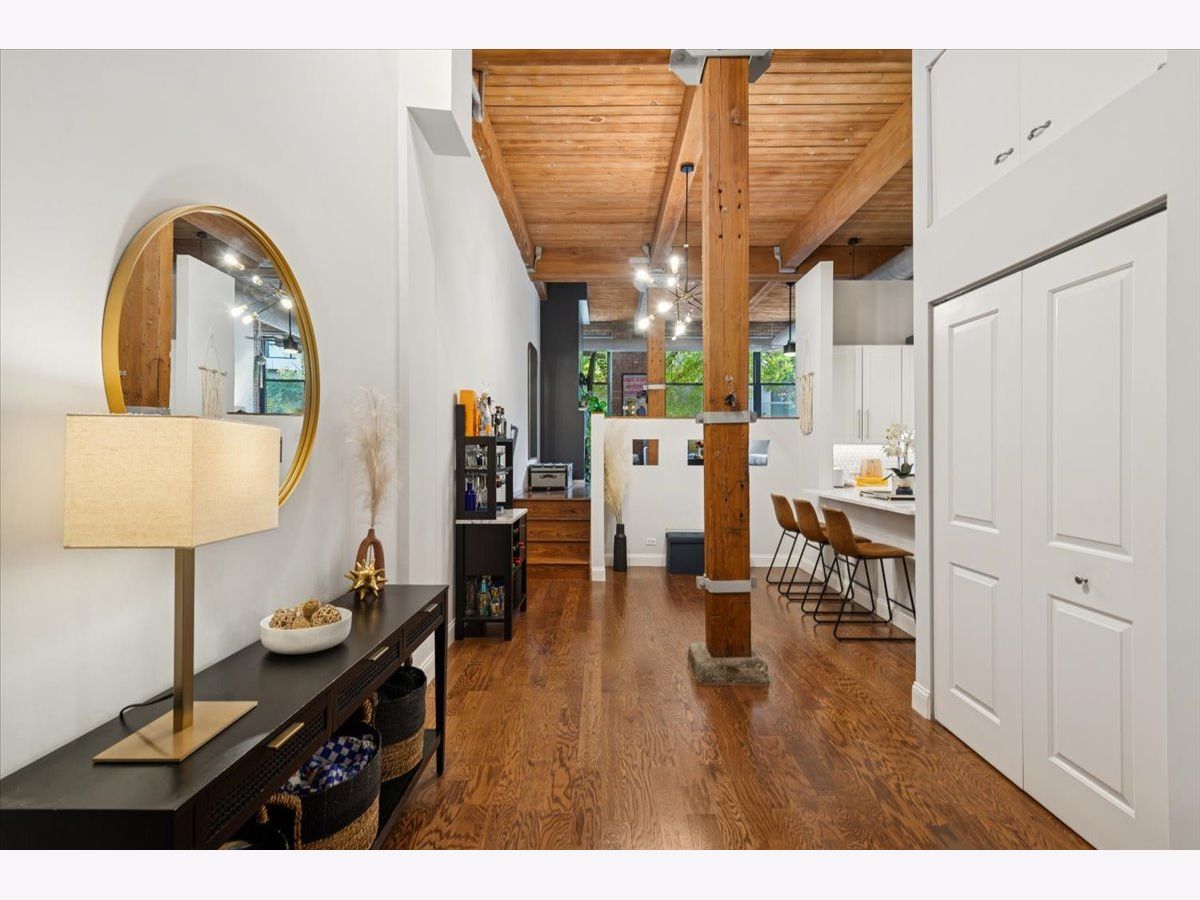 Welcome Home to 2804 LakewoodAve. Prepare to see WOW! Rarely available -very large 1Bed-1Bath -NYC Style timber loft in prime Lakeview steps to Lincoln Park in boutique style (only 20total homes) Metalworks Loft building. Before you enter the foyer into your next home, step within a two story common hallway atrium w/huge skylight where historic charm of the past (32,000 industrial building) meets the present in a modern style loft home. Comfort + warm timber beams, exposed brick, large exposed support beams throughout featuring tall 12-14 ft ceiling heights, oversized windows, hardwood floors mostly throughout main living, just some of the main highlights that make this such a unique home. A large all white Kitchen (renovated in 2021), large peninsula w/seating for 3, quartz counters + lots of lower and upper cabinetry, timeless tile backsplash, and SS Whirlpool appliances complete this space. Step into the main living room, able to accomodate a "suburban size" couch + a dining area + your home office if you need an additional spot to work, a wood burning fireplace is the rooms focal point (for the holidays and those Chicago winters), w/large oversized windows south facing exposure will flood this space w/natural light. Truly flexible open layout that can be customized for your needs. An updated accessible bathroom (renovated in 2021), w/walk-in shower and clean/modern finishes, stackable LG washer/dryer installed 2022, custom closets installed in master + hallway 2022, new hot water tank installed 2025, updated ceiling fans complete the interior updates. Secured exterior parking space additional -$20k. Located at the vibrant intersection of Lakeview and Lincoln Park (on the corner of Diversey and Lakewood), you're just steps from some of these neighborhoods' best dining, shops, parks, entertainment, Southport Corridor and CTA.