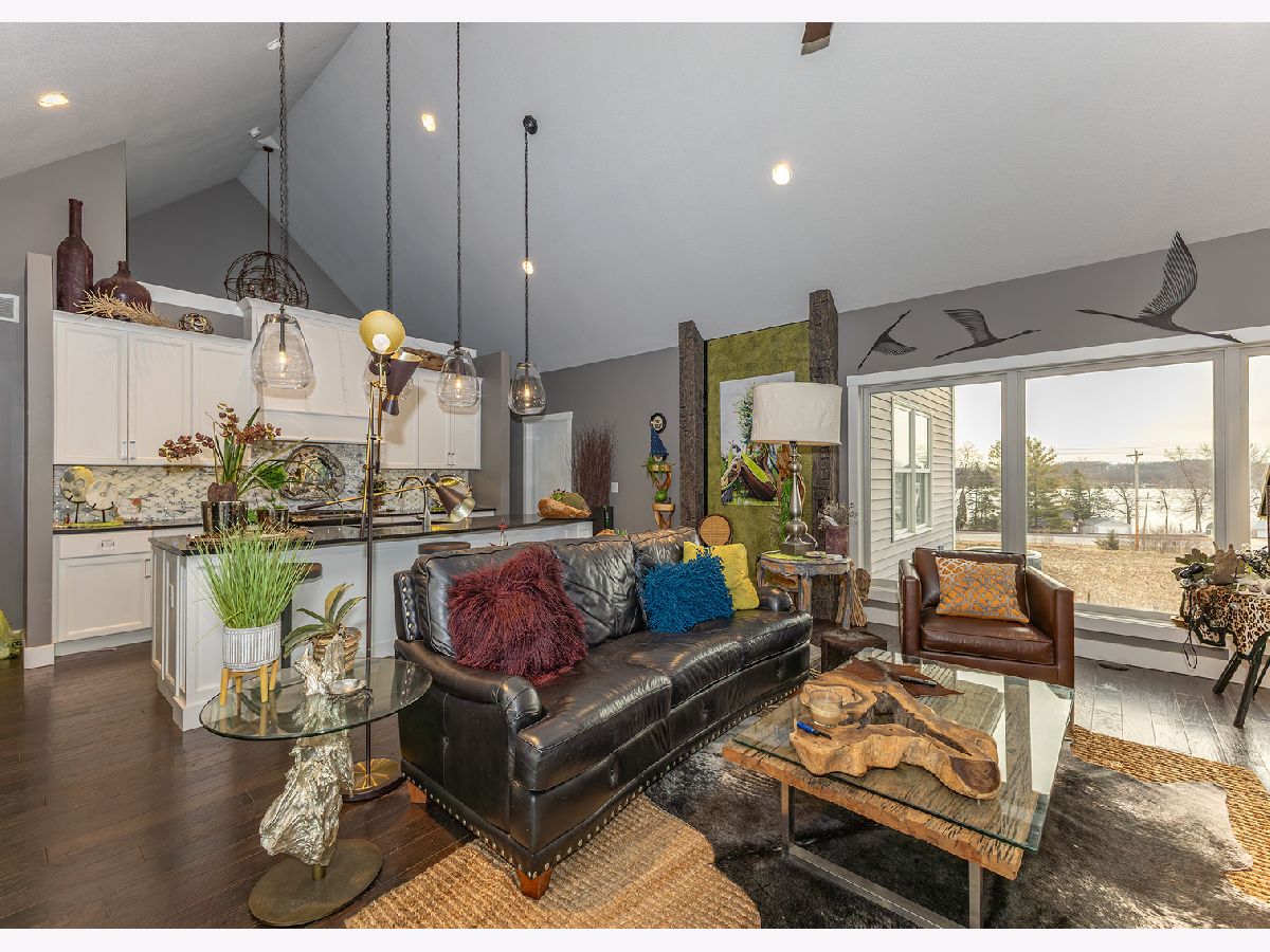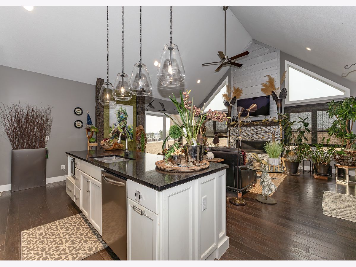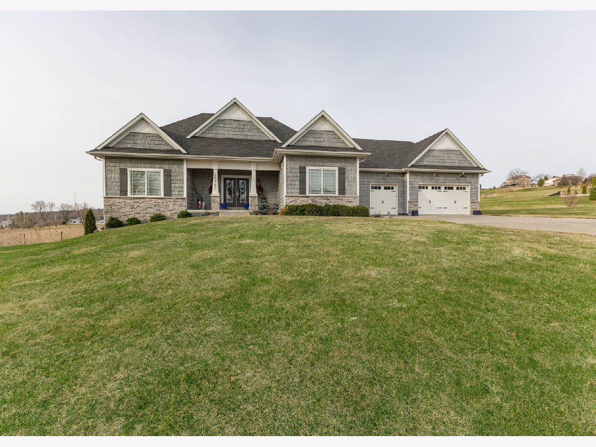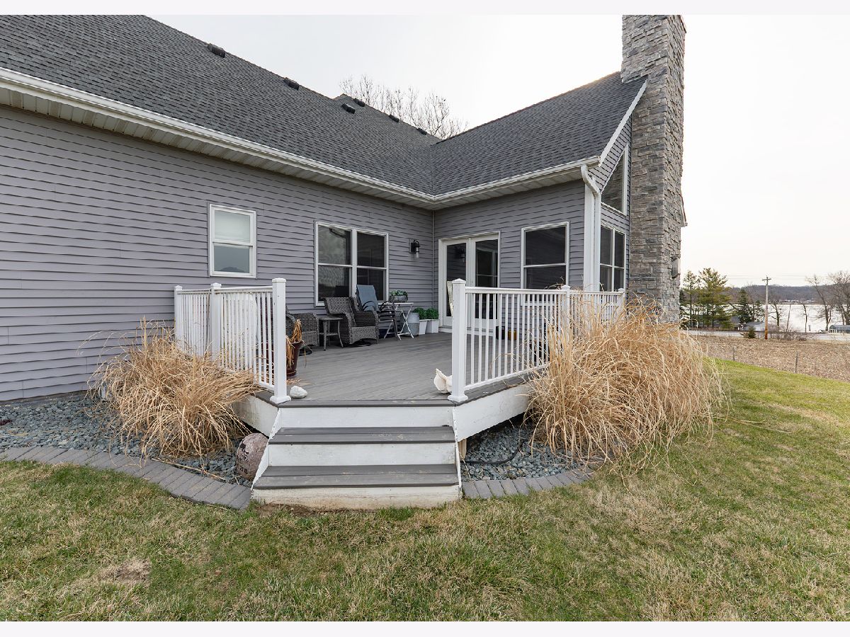 Custom built ranch in River Highlands. Sprawling 3 bedroom 2 bath home nestled on over 1 acre of pristine land surrounded by Mississippi River views and countryside. Revel in the elegance of Hickory wood floors, 18' floor to ceiling windows with Hunter Douglas power woven shades & tinted windows in the great room, charred distressed wood beamed wall accents & stunning gas log fireplace with metal tile surround. The WOW factor continues in the kitchen with 10' black quartz island with breakfast bar, upgraded hardware throughout & gray marble backsplash with bits of crystal. Full guest bath with petrified wood looking tile & marble mirror back splash. Formal dining room features trey ceiling, Hunter Douglas east rise woven blinds with gorgeous river views. Master bedroom suite features trey ceiling, Capiz shell light fixture, silhouette blinds with his and her closets, walk-in glass mosaic tiled shower & LVP flooring. Gorgeous glass mosaic tiled backsplash in master bath & granite countertop makes the vanity an ultimate convenience. 2nd bedroom can equip a king size bedroom set and 3rd bedroom can equip a full or queen size bedroom set. 3 car garage is finished and plumbed/vented for a heater. Main level laundry with LVP flooring. The 10' basement is heavily insulated for future finishing & plumbed for a bath which includes 2 egress windows and a family room. Water heater replaced 2 years ago. Kirby water softener remains.