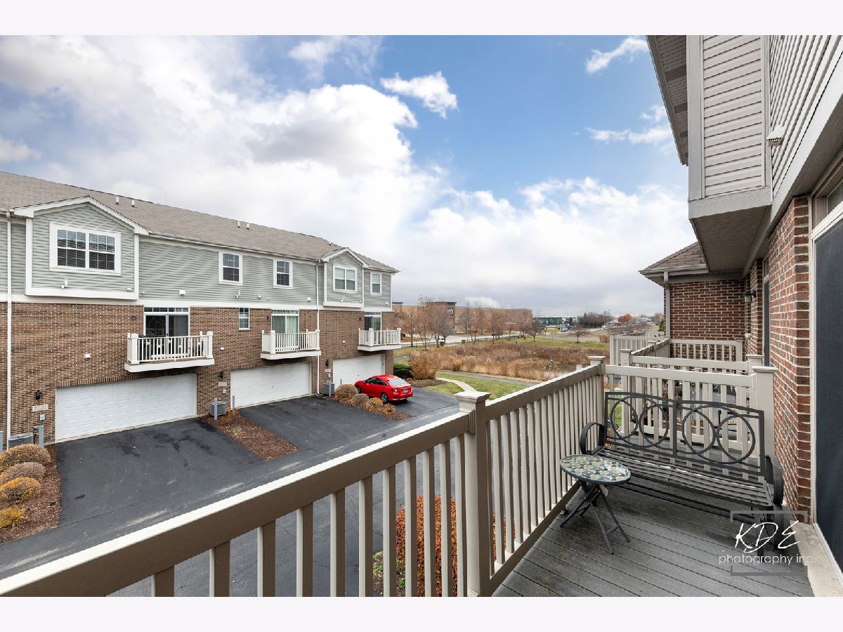 Beautifully appointed former builder's model in desirable Mayfair subdivision. Commuters' delight! @2.5 miles from Rt. 59 train station and so close to top schools, shopping and restaurants! Rare to find Hathaway model with 3 bedrooms and 3 FULL en suite bathrooms plus a powder room. The welcoming main floor is spacious and bright with 9 ft. ceilings & cherry hardwood floors throughout. The living room and adjoining dining room share a cozy gas fireplace and both have plenty of space for entertaining. The spacious kitchen features completely refreshed white 42" cabinetry with crown molding, Frigidaire stainless steel appliances, quartz countertops, pantry, and sliding doors that lead to a spacious balcony. Luxury Owners' suite has volume ceilings and bathroom with whirlpool tub, separate shower, and dual vanities. Second Bedroom features ample closet space and abundant natural lighting. Enjoy the convenience of 2nd floor laundry! Washer+dryer are included. Lower level features a private 3rd bedroom/den/office space with large windows and attached bath. Freshly painted. Loads of storage too! Welcome Home!!!