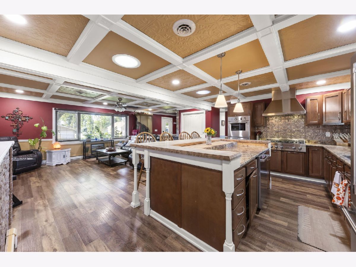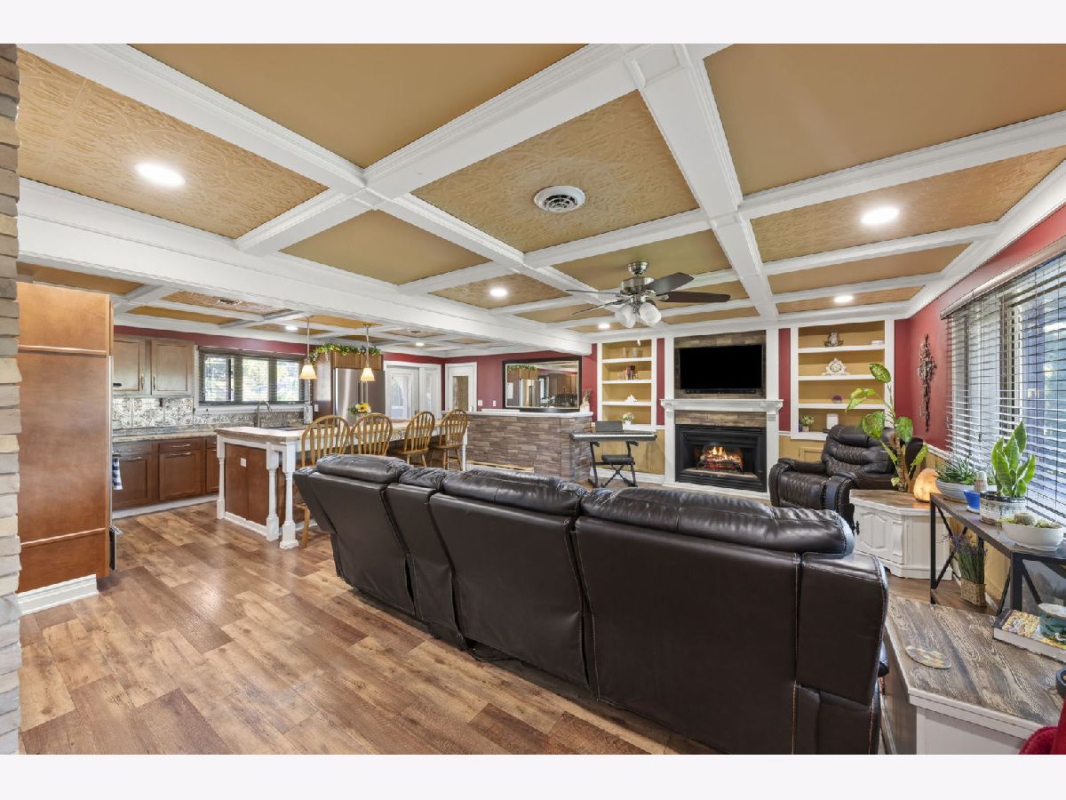 Welcome to your dream home, a stunning, completely renovated ranch that's the epitome of luxury and comfort. This all-brick masterpiece features 5 bedrooms and 3 full bathrooms, offering a perfect blend of space and sophisticated design. As you step inside, you'll be greeted by a modern, open-concept living space. The main kitchen is a chef's delight, equipped with new, high-end appliances and sleek finishes that make cooking and entertaining a joy. The finished basement is a world of its own, designed for ultimate recreation and relaxation. It includes a full kitchen, a dedicated movie theater, a spacious gaming area, full bathroom, and a versatile room that can serve as a private bedroom or office. The true showstopper is the backyard oasis. No detail was overlooked in creating this private paradise. Entertain year-round in the covered and enclosed patio, complete with a cozy fireplace and TV. Take a dip in the heated pool with a slide, or relax under the shade of the tiki hut. The expansive patio features beautiful brick pavers, a built-in grill, and a convenient outdoor bathroom. A dramatic fire and water feature adds a touch of magic, creating an ambiance you'll never want to leave. This home also offers unparalleled convenience with two driveways and two garages. The 28x38 garage is a car lover's dream, large enough to fit up to 6 vehicles and is both heated and air-conditioned, making it a perfect workspace or year-round storage area. This isn't just a home-it's a lifestyle. With so much to see and experience, you truly have to see it for yourself to appreciate all it has to offer. Low taxes! Plainfield Schools! Close to i-55, Costco + Target! Ask your realtor for additional info.