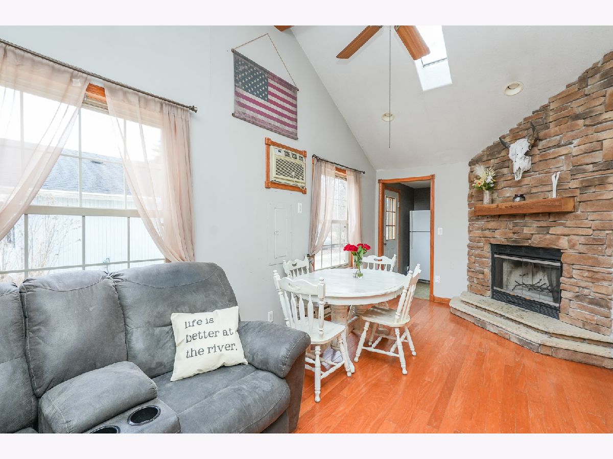 This one of a kind 3 bedroom, 1 bath home sits on an oversized lot and features an impressive 18x26 heated garage in Shadow Lawn. The fantastic layout, vaulted ceilings, and skylights create a bright, open feel throughout. You'll love the stunning floor-to-ceiling stone, wood-burning fireplace and oak hardwood floors. Additional highlights include vinyl windows and siding, oak trim, six-panel doors, tray ceilings, and a nice kitchen and bath. The third bedroom features a unique closet door from old St. Patrick's School, adding a touch of character and charm. Relax on the inviting front porch with porch swing and river views, or unwind in the backyard oasis complete with a hot tub, she shed, garden space, and nearby woods with walking trails. Plenty of storage is available in the garage and shed. Shadow Lawn residents enjoy water rights and river access, including a private beach, boat launch, wooded walking trails, and a 3-acre community lot. Not located in a flood plain - no flood insurance required. This home truly makes everyday living feel like a vacation!