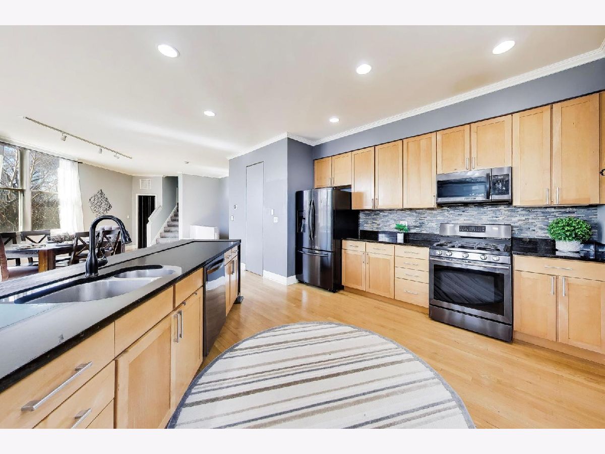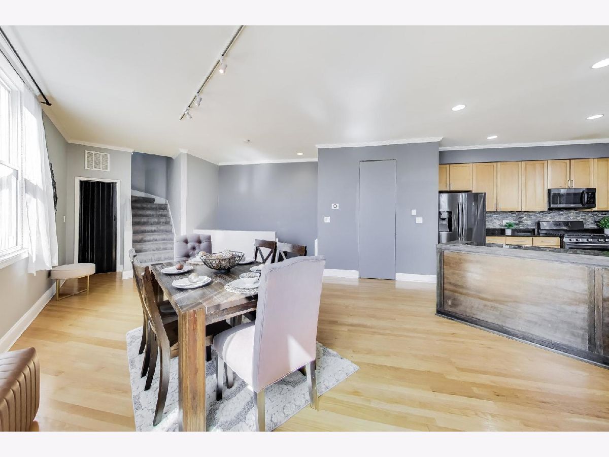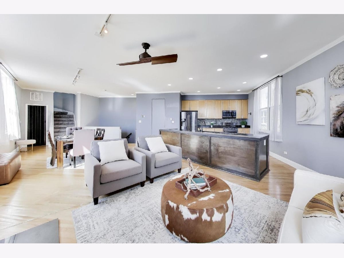 Welcome home to this expansive and truly one-of-a-kind townhome in the desirable Dairy Commons. Perfectly positioned as an end unit on a quiet, tree-lined residential street on the border of some of the city's most popular neighborhoods of Avondale and Logan Square, this impressive townhome offers four levels of flexible living space with 4 bedrooms and 2.5 baths. Walls of unobstructed windows flood the home with natural light, while tremendous ceiling heights throughout create a bright, airy feel rarely found in townhome living. Designed with a highly sought-after floor plan that lives like a single-family home at a fraction of the price. The welcoming entry level includes an inviting foyer with generous closet space, a versatile bedroom ideal for guests or remote work, and direct access to the attached two-car garage through a secured driveway. The second level is the heart of the home, showcasing an open-concept kitchen with tons of classic 42' cabinetry, newer black stainless steel appliances, an expansive kitchen island, and granite counter tops. Extra wide living and dining spaces offer tons of versatility with plenty of room for multiple furniture configurations-perfect for everyday living and entertaining alike. A powder room on this level is the perfect compliment. Upstairs on the third level, the sought after layout contains 3 bedrooms and 2 full baths including the spacious primary suite which features a walk-in closet and an en-suite bath with double vanity. Two additional bedrooms, an updated hall bath, and conveniently located laundry with washer and dryer complete the level. The top-floor loft offers a massive bonus living space ideal for a media room or family room. From here, step out onto the expansive private rooftop deck with stunning downtown skyline views-an incredible setting for relaxing or entertaining. Recent updates include two newer A/C units, a newer furnace, recently updated hall bathroom, newer carpeting, newer windows throughout, and new LVP flooring on the main level with updated baseboards. Dual-zoned HVAC adds comfort and efficiency. Enjoy easy access to transit, including highways, bus, and train, along with close proximity to the best of Avondale and Logan Square, including acclaimed restaurants, breweries, parks, farmers markets, grocery stores, and the scenic Chicago Riverwalk. A rare opportunity to own a spacious, light-filled home in one of Chicago's most vibrant neighborhoods. Don't wait!