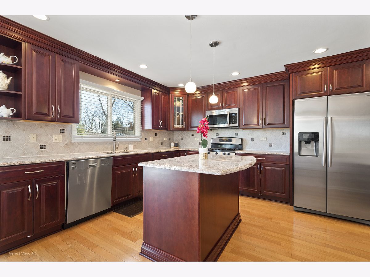 Stunning, sun-filled, and thoughtfully upgraded, this exceptional 5-bedroom, 3-full-bath home offers a rare blend of flexibility, privacy, and timeless design, all within the award-winning Stevenson High School District. From the moment you arrive, the powerful curb appeal makes a statement with a 3-car garage, dual driveways, and separate entrances to the main 2-car garage and the 1-car garage, which are internally connected-an incredibly unique feature rarely found in the neighborhood. Step inside to an open, airy floor plan highlighted by vaulted ceilings and skylights that fill the space with natural light throughout the day, creating an uplifting, welcoming atmosphere. Separate living, dining, and family rooms provide ideal spaces for everyday living and hosting large gatherings. The custom remodeled kitchen is a true showstopper, featuring ceiling-height cabinetry with elegant crown molding, abundant storage, 3 pantries, and a dedicated eating area overlooking the extended backyard, professionally designed landscaping with views of mature trees, and a beautiful privacy hedge of arborvitae and apple trees, showcasing seasonal beauty in the front or back through the year. The semi-circular brick-paver patio creates a tranquil outdoor setting ideal for enjoying morning coffee or entertaining guests. An additional covered deck patio off the family room extends the living space outdoors and offers the perfect setting for larger gatherings or relaxed evenings. A main-level bedroom and full bathroom provide excellent in-law or guest accommodations, offering flexibility for multi-generational living or private guest space. Upstairs, the oversized primary suite serves as a private retreat, featuring three closets, including a spacious 7x11 walk-in, ideal for any wardrobe enthusiast. The spa-inspired primary bathroom includes dual vanities, a whirlpool tub, and a private shower with a heated towel bar. A unique feature of the suite is direct access to a private office, nursery, workout room, or future expansion space, enabling the home to adapt to changing lifestyle needs. Truly appreciate the location, with the convenience of being within walking distance of Stevenson HS, nearby parks, and just minutes from shopping, the Metra train station, and many dining options. Recent updates include a customized mudroom and laundry room completed in 2025; furnace and A/C replaced in 2023; brick paver patio added in 2022; roof replaced in 2020; and multiple high-quality upgrades to the primary and guest bathroom completed in 2019. With over $150,000 invested in improvements over the past decade and a massive 37x35 unfinished basement ready for your personal vision, this home delivers exceptional space, sunlight, and comfort in one of the area's most desirable communities.