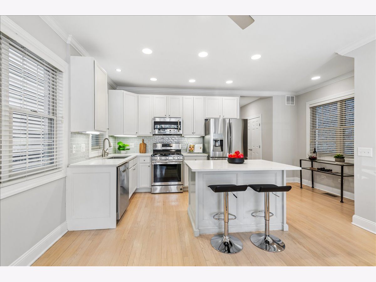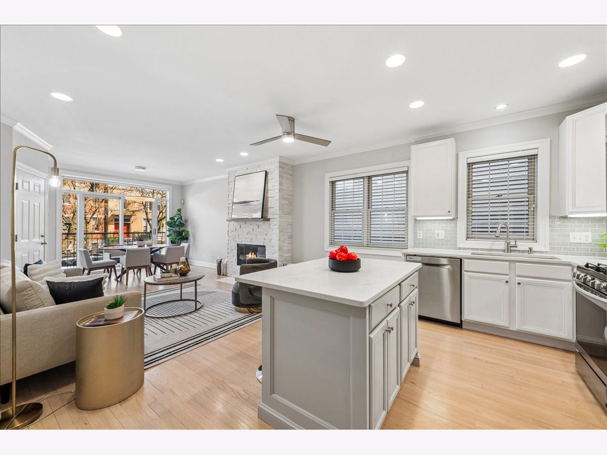 Welcome to this beautifully updated 3-bedroom, 3-bathroom duplex-down in West Lakeview, just steps from Hamlin Park! From the moment you walk in, you're greeted by a bright and spacious living room featuring a cozy fireplace with recently updated tilework. The main level boasts stunning hardwood floors throughout, creating a warm and inviting atmosphere. The modern kitchen sparkles with white cabinetry, quartz countertops, a large island, stainless steel appliances, and a subway tile backsplash. The king-sized primary suite offers a custom-organized closet and a sliding door that opens to your private back patio. The newly updated ensuite primary bathroom features sleek tile, a double quartz vanity, and a luxurious step-in shower with a bench. A second bedroom, 3 large hall closets, and a fully renovated hall bathroom complete the main level. The lower level offers even more space to spread out, with a large family room, access to a second private outdoor space, a third bedroom with brand-new carpet, a renovated third full bathroom, and an in-unit side-by-side washer/dryer. 1 garage parking space is INCLUDED in the price! With easy access to parks, grocery stores, restaurants, and the highway, this condo is the perfect place to call home!