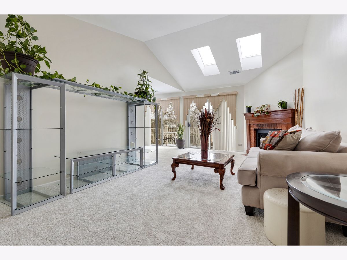 Popular Laurel model featuring numerous updates and upgrades throughout. This bright second floor unit boasts a dramatic cathedral ceiling and abundant natural light from 2 skylights and 2 sliding glass doors out to a spacious balcony. This home has been freshly painted and features brand-new neutral carpet throughout with a transferable warranty. The inviting living space includes a corner fireplace with a custom mantle, gas logs, brick surround and ceramic hearth. Major mechanical updates include a 2 year old Lennox furnace and air conditioner. Additional highlights include white six panel doors throughout. The updated kitchen offers Stainless Steel appliances, 3 year old granite countertop and decorative glass tile backsplash, newer 12 x 24 marble flooring and ceiling fan. Both baths have been refreshed with granite vanity tops, updated sinks and faucets, along with a newer light fixture in the primary bath. A separate laundry room with a full size washer and dryer provide extra storage along with a walk-in pantry. The electric garage door opener and springs were replaced 2 years ago. Ideally situated on a cul-de-sac backing to a large open area. Pool and playground are just 1 block away, and the home is conveniently located near shopping, restaurants and expressways.