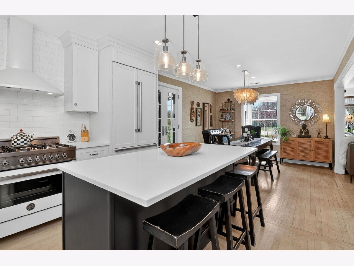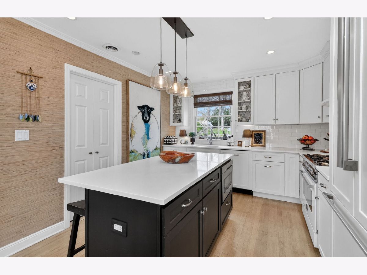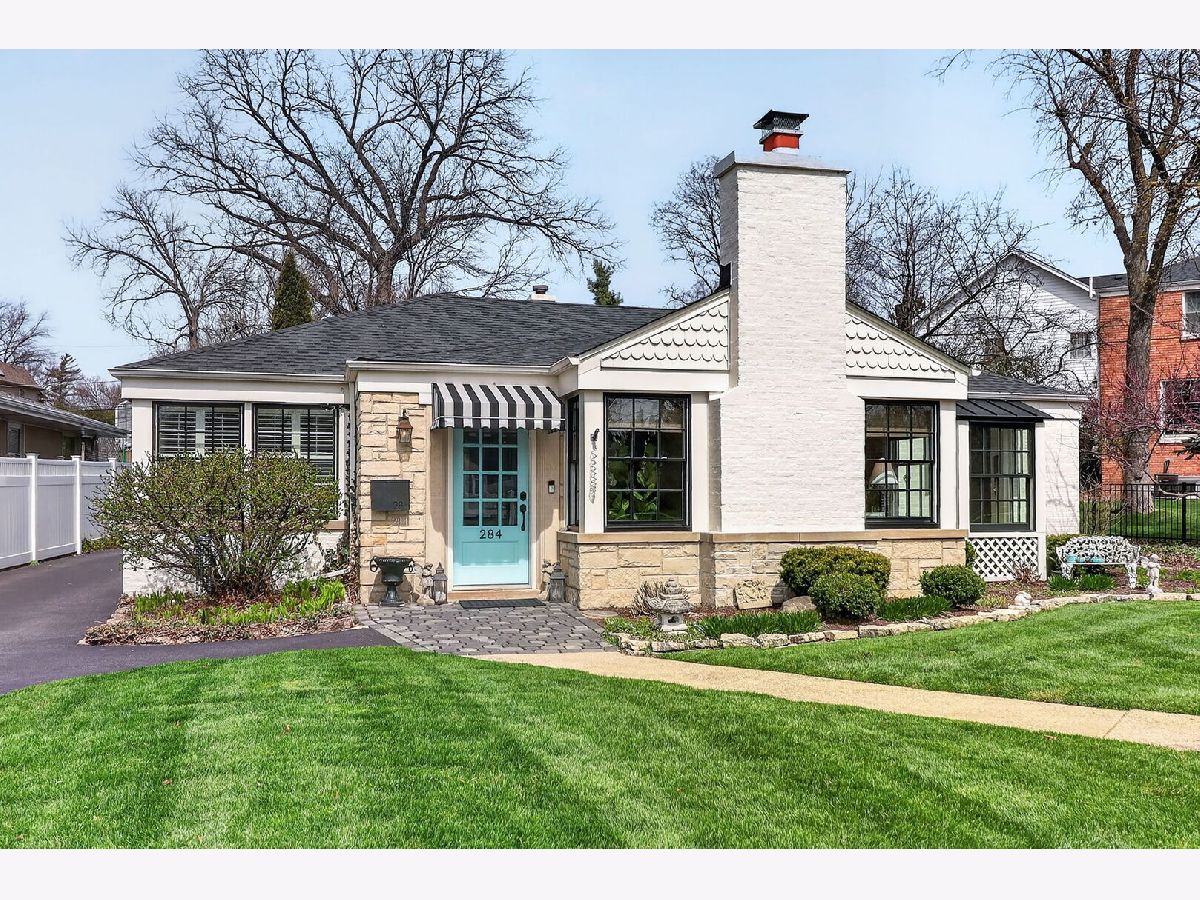 This brick and stone in-town Glen Ellyn ranch, updated with carefully selected details, exudes charm from every turn! So pretty that one will think the owner is a professional designer. The 2017 rehab includes new Marvin Window Replacements, new Doors and Millwork, new Open Concept Kitchen, new Recessed and Designer Lighting, new Plantation Shutters and Shades. The white cook's kitchen with quartz counters and center island is open to the dining room and well equipped with white and gold Bertazzoni 36" Gas Range and Built-in Refrigerator. Leaded glass cabinet doors flank the kitchen sink window...another sweet detail! The adjacent mudroom includes pull- down stairs to attic storage, additional cabinetry, counter space with sink, built-ins with access to the back patio. French doors from the dining room also gives access to the patio and sprawling, lush lot. The sizeable living room with fireplace accommodates oversized furnishings including sectional sofa and more. New bath in 2025 features stylish black accents and designer wallpaper. Additional updates include Fence- 2020, Driveway- 2018 Roof- 2017, HVAC- 2017, Appliances- 2017. Convenient location with winding streets and sidewalks, a few blocks to the Metra train station, GE shops and restaurants, IL Prairie Path, Hoffman Park, GE Library and Lincoln Elementary. Very special offering!