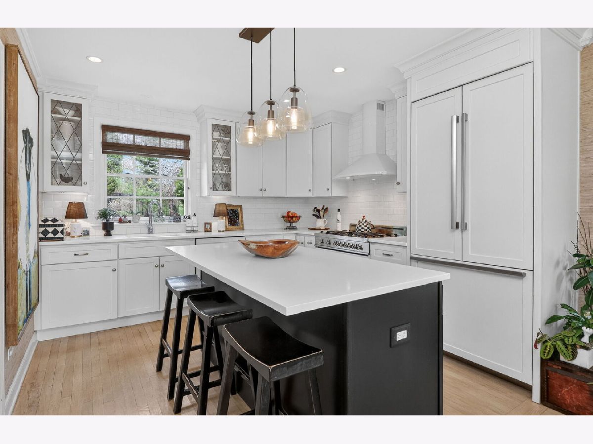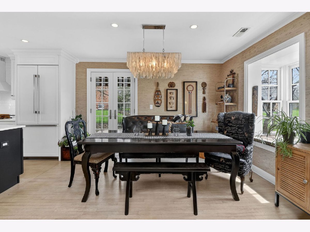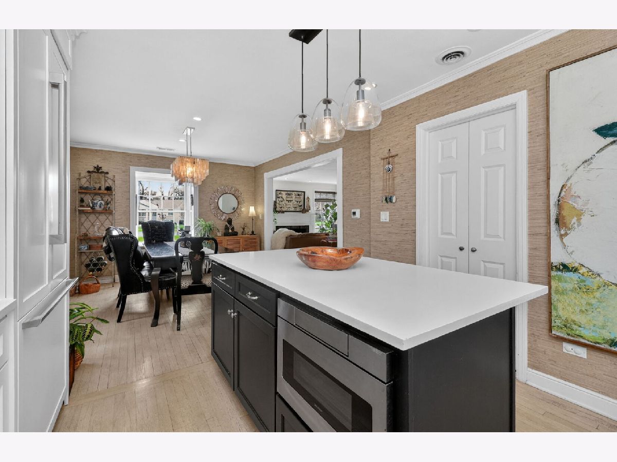 This brick and stone in-town Glen Ellyn ranch, updated with carefully selected details, exudes charm from every turn! So pretty that one will think the owner is a professional designer. The 2017 rehab includes new Marvin Window Replacements, new Doors and Millwork, new Open Concept Kitchen, new Recessed and Designer Lighting, new Plantation Shutters and Shades. The white cook's kitchen with quartz counters and center island is open to the dining room and well equipped with white and gold Bertazzoni 36" Gas Range and Built-in Refrigerator. Leaded glass cabinet doors flank the kitchen sink window...another sweet detail! The adjacent mudroom includes pull- down stairs to attic storage, additional cabinetry, counter space with sink, built-ins with access to the back patio. French doors from the dining room also gives access to the patio and sprawling, lush lot. The sizeable living room with fireplace accommodates oversized furnishings including sectional sofa and more. New bath in 2025 features stylish black accents and designer wallpaper. Additional updates include Fence- 2020, Driveway- 2018 Roof- 2017, HVAC- 2017, Appliances- 2017. Convenient location with winding streets and sidewalks, a few blocks to the Metra train station, GE shops and restaurants, IL Prairie Path, Hoffman Park, GE Library and Lincoln Elementary. Very special offering!