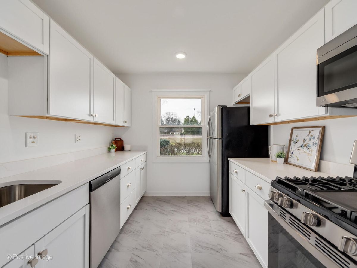 Refreshed and renewed, hard to find duplex in the heart of downtown Elmhurst. This 3 bedroom, 1.5 bath home features newly refinished hardwood floors, fresh paint and a fantastic floor plan. 1430sf plus a finished basement. The fully renovated kitchen boasts quartz countertops, crisp white cabinetry, and stainless steel appliances. The main level offers a comfortable, open layout with a spacious living room that flows into the dining area and out to a private patio, ideal for everyday living and easy entertaining. An updated powder room completes the first floor with new white vanity and top. Upstairs includes 3 large bedrooms each with luxury vinyl plank wood flooring and ample closet space. The full bathroom with fresh paint and tub/shower combo completes the second floor. The massive finished basement adds valuable living space with an amazing 20x19 recreation room featuring fresh paint and new luxury vinyl plank wood floors, plus a separate laundry room with additional storage and a second refrigerator. Private yard with detached two-car garage. A solid, move-in ready option in a highly convenient location close to Elmhurst City Centre shopping, dining, and the Elmhurst Metra train station.