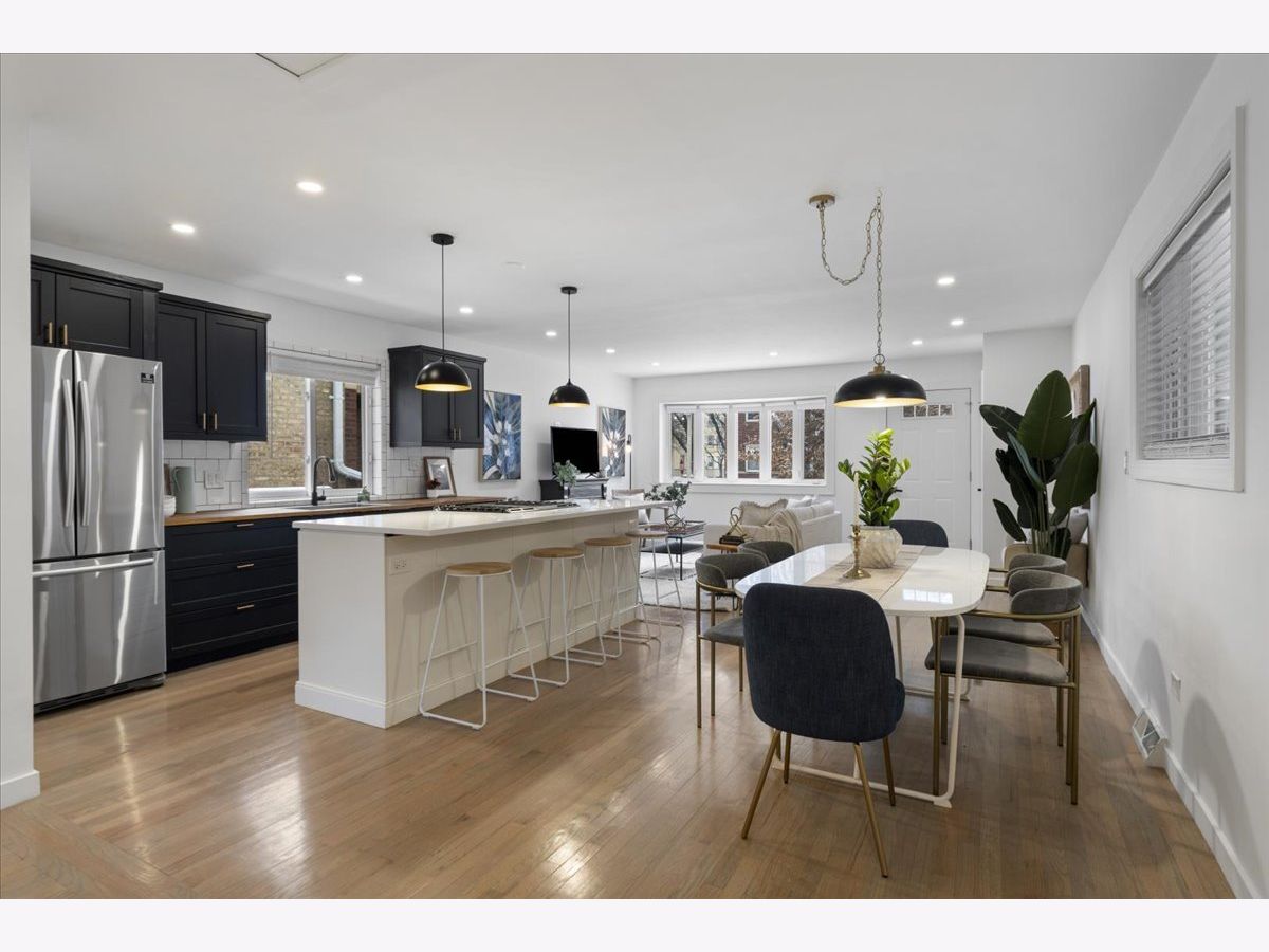 Amazing opportunity to own this fully updated ranch-style home with a spacious open-concept layout, main-level primary suite, and a beautiful yard in a prime Avondale location bordering Logan Square. For the price of a condo, this 3-bedroom + office / 2.5-bath home lives like a duplex-down while offering the privacy, two-car garage, and generous yard that come with single-family ownership. The bright main level features a large great-room layout with a renovated kitchen, sizable dining area, and flexible living space that flow seamlessly for everyday living and entertaining. An updated powder room sits just off the living area, and hardwood floors run throughout the main floor. Also on the main level is a spacious primary suite overlooking the backyard, with room for a king bed and additional furniture, large closets, and a renovated primary bath. The lower level offers an additional family room with a wet bar, two well-sized bedrooms, a full bathroom, ample storage, and a separate office with a closet that could also function as a nursery or kids' room. Ideally located with easy expressway access and close to everything Logan Square and Avondale have to offer, including Four Letter Word, Small Bar, the Logan Blue Line stop and more.