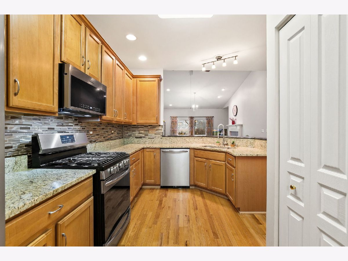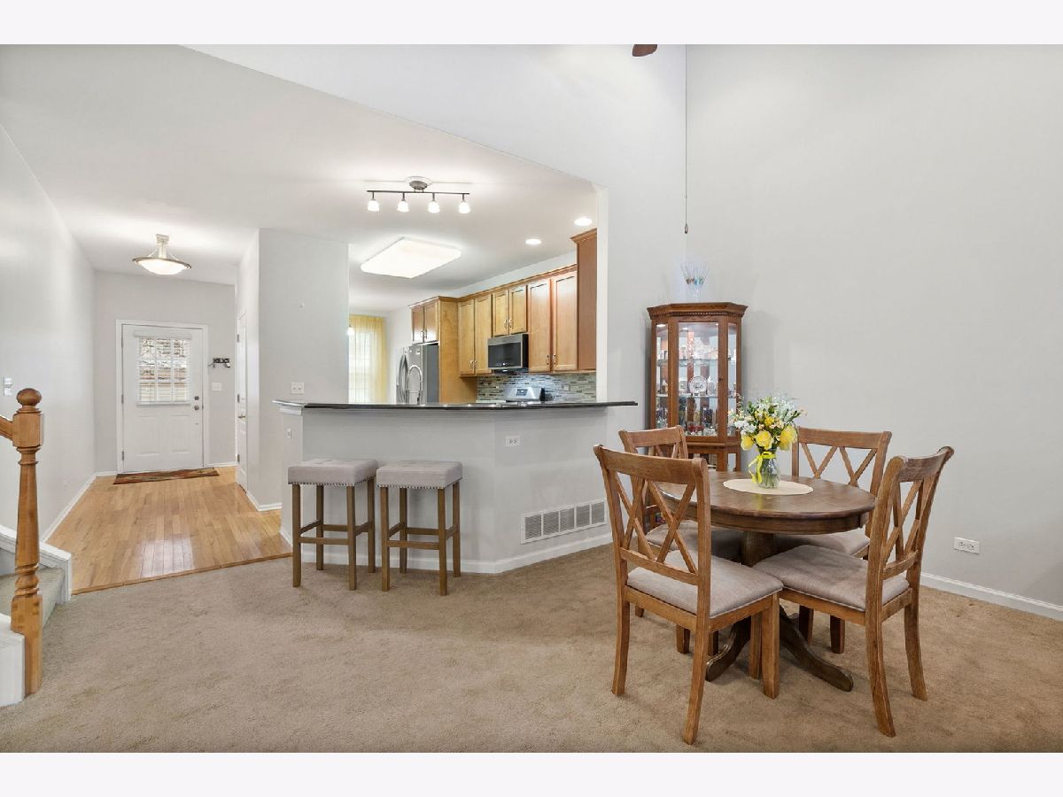 Discover the perfect blend of privacy, comfort, and nature in this gorgeous townhome tucked away on a quiet cul-de-sac in the gated Creekside Villas community. From the moment you step inside, the open-concept floor plan welcomes you with a beautifully updated kitchen featuring stainless steel appliances, granite countertops, hardwood floors, maple cabinets, pantry closet, under-cabinet lighting and a breakfast bar. The kitchen flows effortlessly into the dining and living room with vaulted ceilings, complete with a cozy tiled fireplace, recessed lighting, and serene views of the surrounding nature. Oversized sliders open to your own private patio and peaceful wilderness oasis - keep an eye out for deer that love to wander by! The highly sought-after main floor layout includes a lovely primary bedroom with a custom walk-in closet and private en suite with relaxing soaker tub, separate shower and dual vanity. The spacious laundry room and convenient half bath complete the main level. Upstairs, you'll find another generously sized bedroom, a large loft with recessed lighting (easily be converted in to a third bedroom) and a full bath. The unfinished basement is ready to be finished and offers flexible space for hobbies or a home gym, plus a crawl space for all your storage needs. All of this is in a prime location close to top-rated schools, great restaurants, shopping, walking paths, and parks - everything you love about Algonquin right at your fingertips!