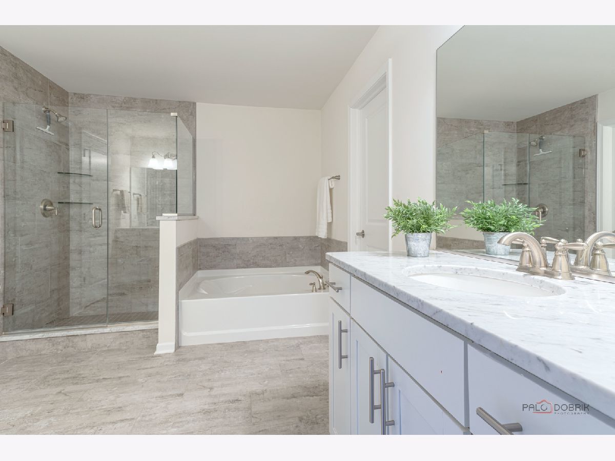 Stunning Home in the Prestigious Camberley Club Gated Community, proudly served by award-winning D103 and Stevenson high schools. Experience luxury living in this beautifully designed residence offering over 2,400 square feet of thoughtfully crafted space that truly lives like a single-family home. The heart of the home is a chef-inspired gourmet kitchen, featuring sleek modern white cabinetry, stainless steel appliances, and elegant granite countertops-perfect for both everyday living and entertaining. The expansive great room provides an inviting setting for gatherings and relaxation. Enjoy 10-foot ceilings and rich hardwood flooring throughout the main level, adding both sophistication and warmth. Retreat to the luxurious primary suite, complete with a private sitting area, two spacious walk-in closets, and a serene balcony. The spa-like en-suite bath features dual vanities, a soaking tub, and a separate walk-in shower. The professionally finished basement (completed in 2022) adds valuable additional living space-ideal for a media room, home office, gym, or guest retreat and half bathroom. Additional highlights include a convenient second-floor laundry room, a two-car garage with EV charger and a backyard with the option to add a fence-offering flexibility to suit your lifestyle. This exceptional home combines elegance, comfort, and convenience. A true must-see-don't miss this incredible opportunity!