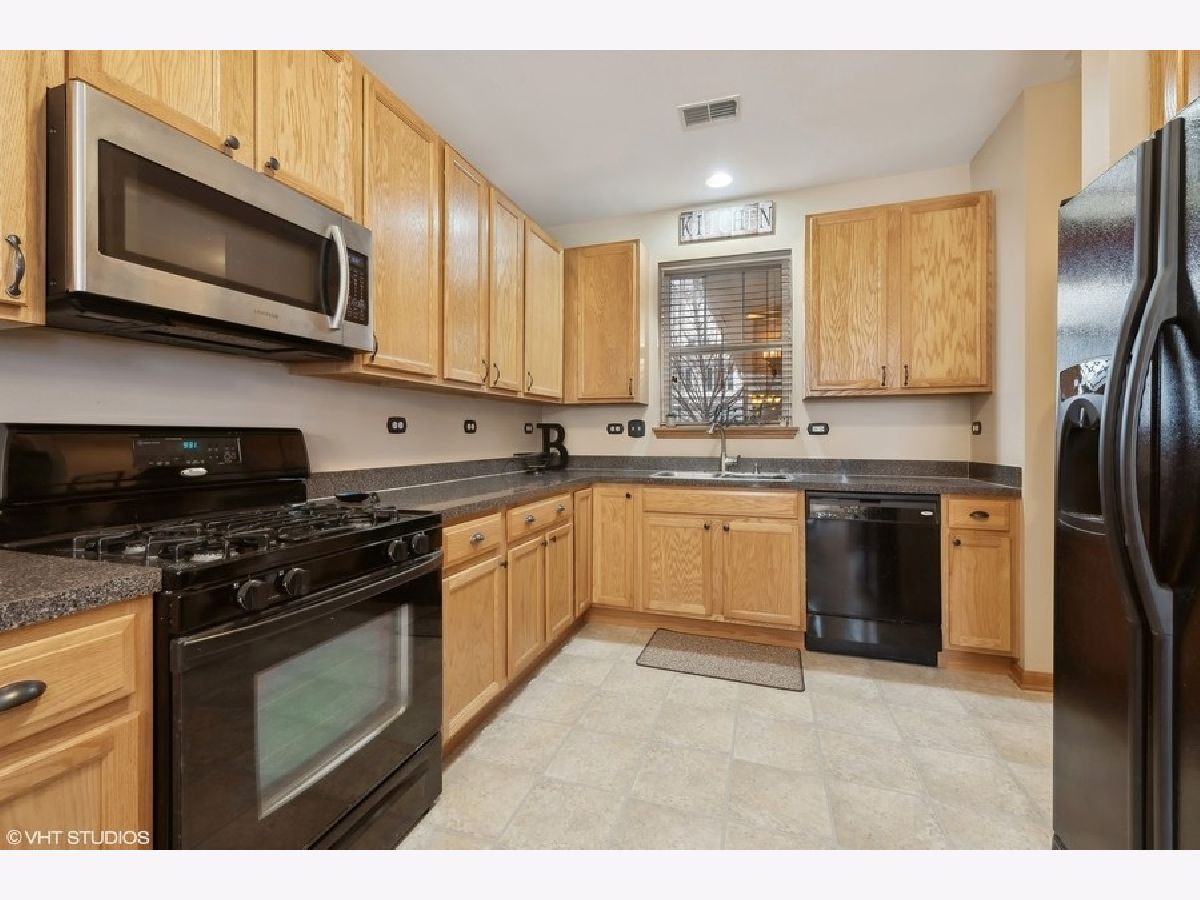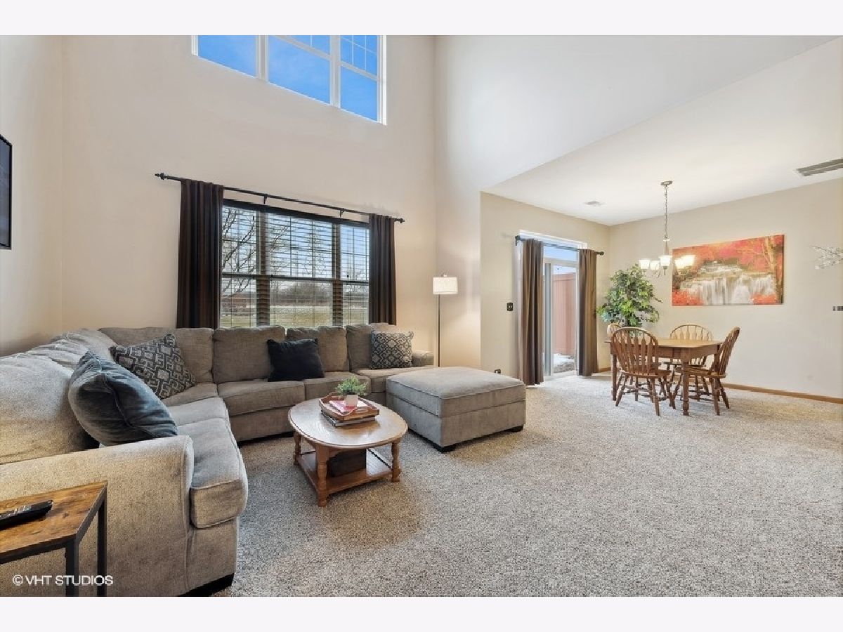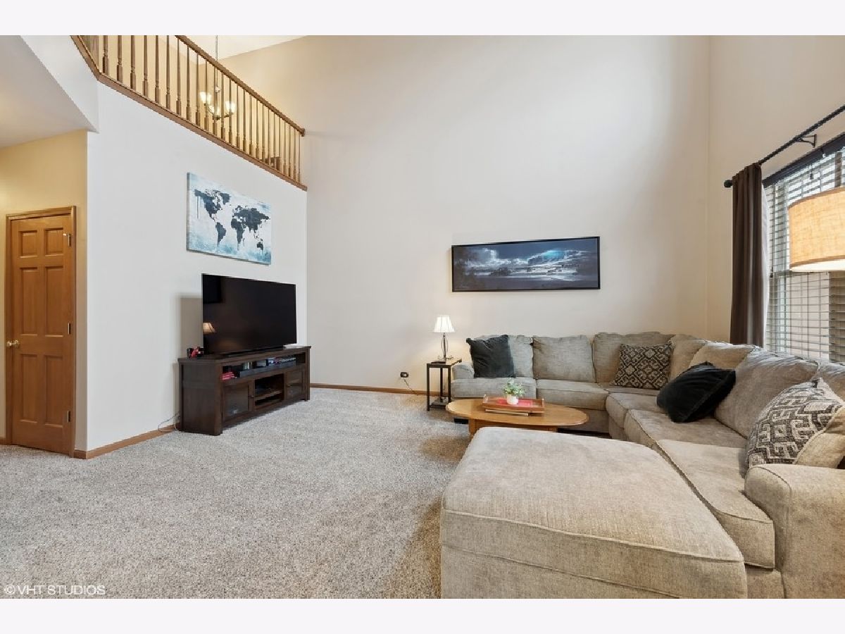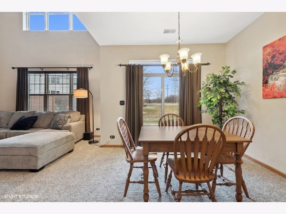 Welcome to this beautifully maintained and move-in-ready townhome located in the highly sought-after Liberty Lakes community, ideally positioned near the Lakewood Forest Preserve and the Millennium Park Trail, offering easy access to nature, walking paths and outdoor recreation. This immaculate residence combines thoughtful updates, functional living spaces and an inviting layout perfect for today's lifestyle. Upon entry, you are greeted by a welcoming foyer with soaring vaulted ceilings that immediately create a sense of openness and warmth. Large windows throughout the main level allow abundant natural light to fill the home, enhancing its bright and airy feel. A conveniently located powder room adds everyday functionality for guests. The kitchen is the heart of the home and is thoughtfully designed for both cooking and entertaining. It features ample cabinet and counter space, a 4-burner gas range, microwave, side-by-side refrigerator with water and ice in the door, pantry closet and Whirlpool dishwasher (new in 2025). A breakfast bar provides additional seating and flows effortlessly into the dining area, which opens to the spacious living room-ideal for hosting gatherings or enjoying quiet evenings at home. From the dining room, a sliding glass door leads to your private patio and yard area, offering a perfect space for outdoor dining, relaxing or enjoying warmer weather. The second level features a well-designed layout with a versatile loft area. The primary suite is a true retreat, complete with tray ceiling, walk-in and wall closets and an updated, spa-like ensuite bath featuring newer dual sinks and vanity (2023) and modern finishes. The second bedroom is generously sized and is complemented by a full hall bath. Additional highlights include a second-floor laundry room with Whirlpool washer and dryer, extra storage and a folding counter, an upstairs linen closet and a dedicated deep storage closet off the family room-making organization easy and efficient. The home also features a direct entry 2-car attached garage with workbench and overhead racks for additional storage space. New roof 2022. All new toilets 2023.