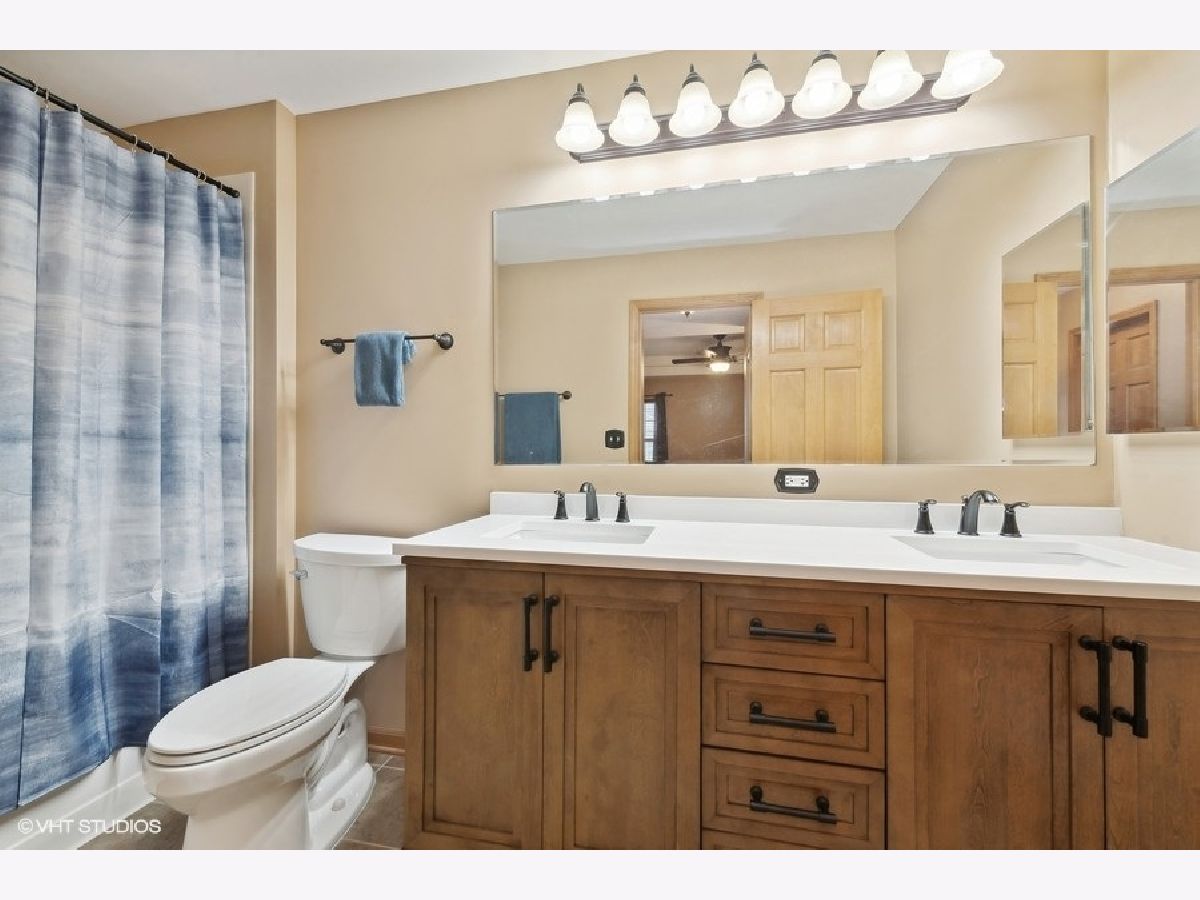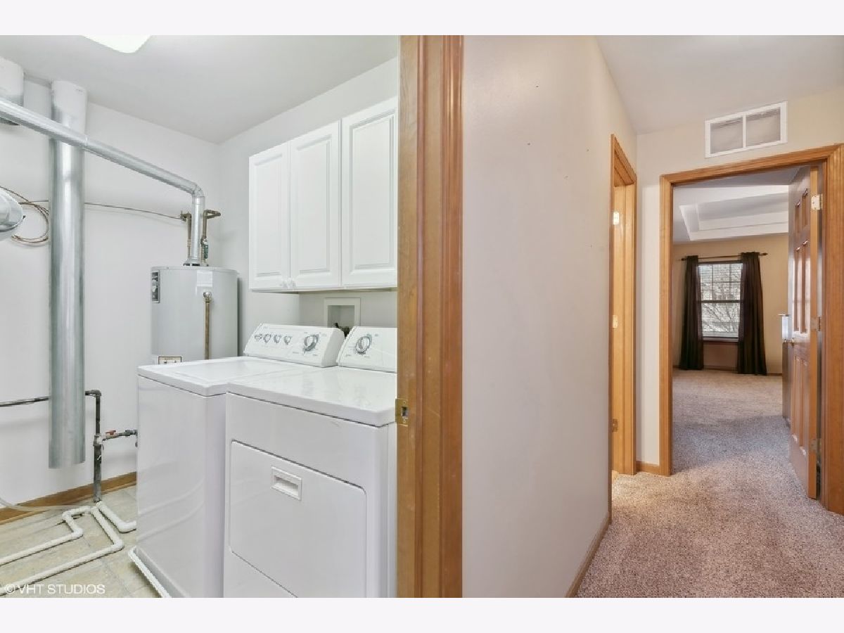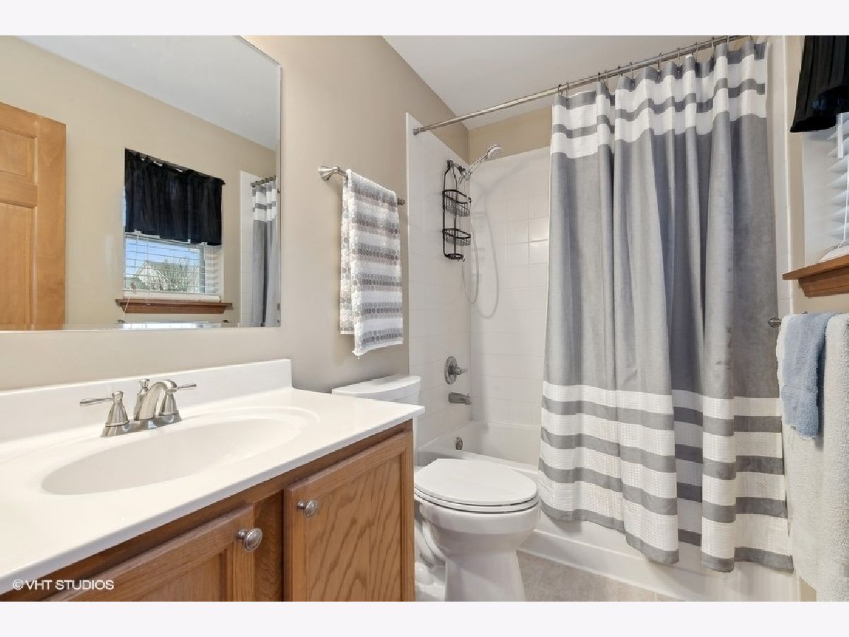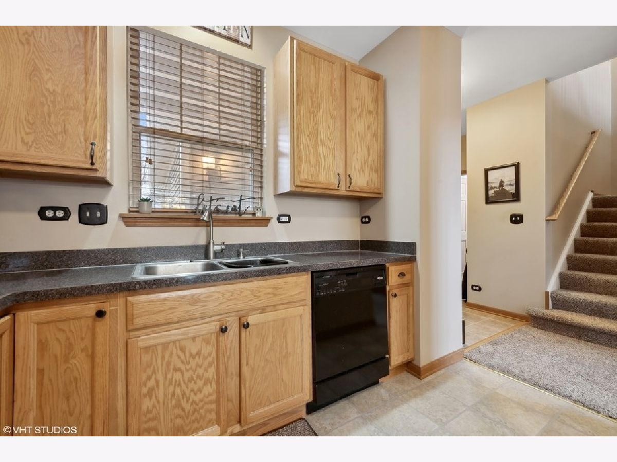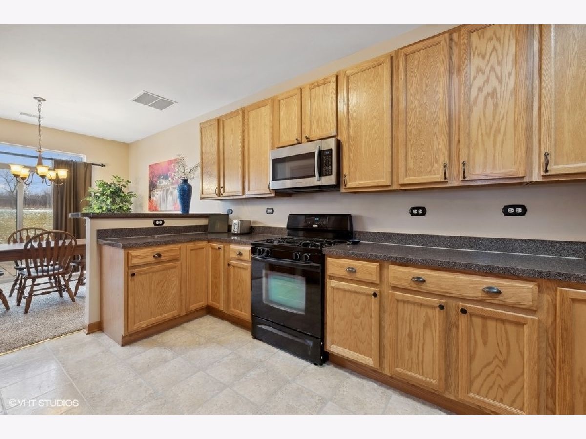 Welcome to this beautifully maintained and move-in-ready townhome located in the highly sought-after Liberty Lakes community, ideally positioned near the Lakewood Forest Preserve and the Millennium Park Trail, offering easy access to nature, walking paths and outdoor recreation. This immaculate residence combines thoughtful updates, functional living spaces and an inviting layout perfect for today's lifestyle. Upon entry, you are greeted by a welcoming foyer with soaring vaulted ceilings that immediately create a sense of openness and warmth. Large windows throughout the main level allow abundant natural light to fill the home, enhancing its bright and airy feel. A conveniently located powder room adds everyday functionality for guests. The kitchen is the heart of the home and is thoughtfully designed for both cooking and entertaining. It features ample cabinet and counter space, a 4-burner gas range, microwave, side-by-side refrigerator with water and ice in the door, pantry closet and Whirlpool dishwasher (new in 2025). A breakfast bar provides additional seating and flows effortlessly into the dining area, which opens to the spacious living room-ideal for hosting gatherings or enjoying quiet evenings at home. From the dining room, a sliding glass door leads to your private patio and yard area, offering a perfect space for outdoor dining, relaxing or enjoying warmer weather. The second level features a well-designed layout with a versatile loft area. The primary suite is a true retreat, complete with tray ceiling, walk-in and wall closets and an updated, spa-like ensuite bath featuring newer dual sinks and vanity (2023) and modern finishes. The second bedroom is generously sized and is complemented by a full hall bath. Additional highlights include a second-floor laundry room with Whirlpool washer and dryer, extra storage and a folding counter, an upstairs linen closet and a dedicated deep storage closet off the family room-making organization easy and efficient. The home also features a direct entry 2-car attached garage with workbench and overhead racks for additional storage space. New roof 2022. All new toilets 2023.