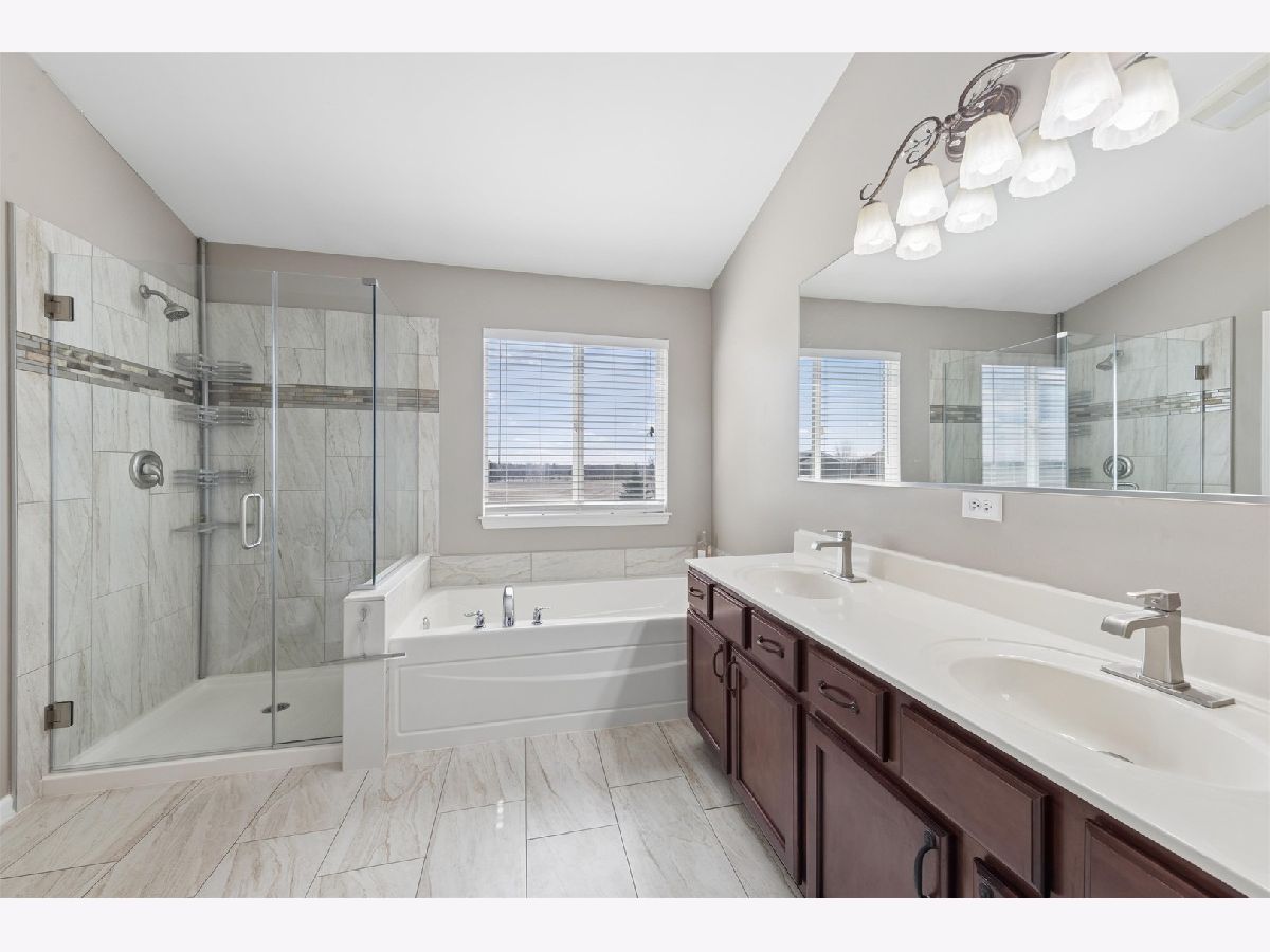 Fall in LOVE with this SPACIOUS home on the LARGEST lot in the neighborhood! 5 Bedrooms & 3 1/2 Baths! 3 Car Tandem Garage w/NEW Door & Opener (2025). 2 story welcoming Foyer. NEW LV Flooring throughout 1st floor (2024). Updated Kitchen w/stunning granite counters, stone tile backsplash & Breakfast Bar flows to spacious Dining area. All Appliances included, 1st floor Washer & Dryer & built-in Fridge in Basement. 9 ft ceilings throughout. Enormous Master Suite w/En-suite. NEW Master Bathroom (2025) w/large Walk in Closet, dual sinks, a soaking tub, & separate shower. 3 additional large Bedrooms & a hall Bathroom complete the 2nd floor. FULL, finished Basement w/5th Bedroom (Fitness room or Office possible), FULL Bath, Recreation Area, tons of Storage. SAVE BIG on low electricity bills with a NEW Roof & OWNED Solar Panels ($68K investment in 2023). HUGE, PRIVATE corner lot w/walking path to the park and trails; perfect for the kids and dog to run and play. Wrought Iron maintenance-free Fenced yard w/a magnificent Patio, Gazebo, above ground Pool w/equipment (2021) & built in Fire Pit. Community w/clubhouse, swimming pool, exercise room & park. Easy access to I-88, shopping. NO SSA! Low taxes. MOVE IN NOW TO ENJOY SPLASHING IN THE POOL THIS SUMMER!