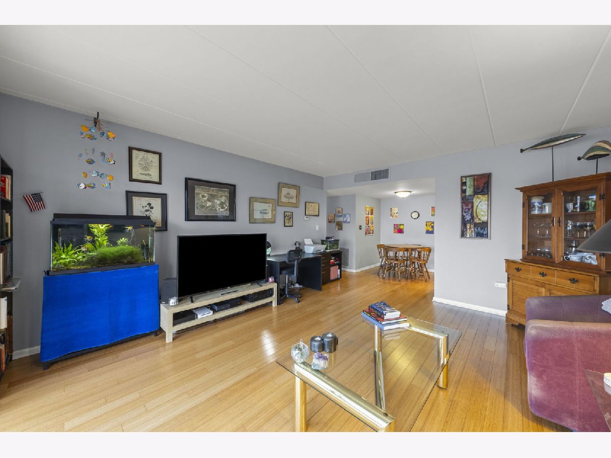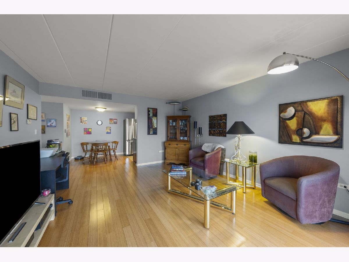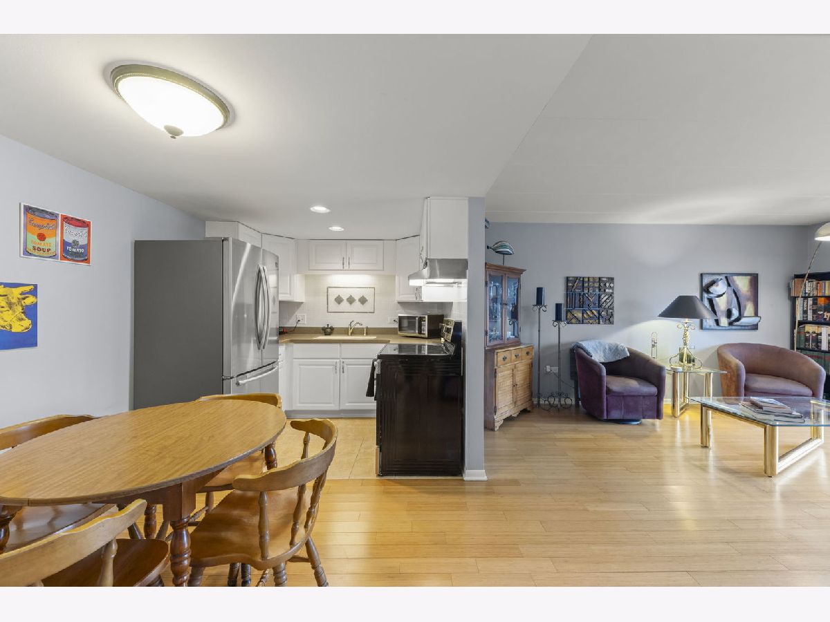 Welcome to this charming 1 bed condo in the Cameo 55+ community in Downers Grove. Step into the bright and inviting living space featuring hardwood flooring, great natural light, and a large sliding glass door that opens to a spacious balcony. The kitchen offers newer appliances and white cabinetry with plenty of storage. The dining area has plenty of room for a good sized table to host your family and friends. Around the corner, the spacious primary suite includes two generous closets. The bathroom features a newer vanity, light fixture, and faucet. A storage unit is conveniently located down the hall, and the building amenities include a library, exercise room, party and game room, and laundry just steps away. The unit comes with two unassigned parking spaces. Enjoy easy access to expressways, shopping, downtown, and the Metra. Welcome home!