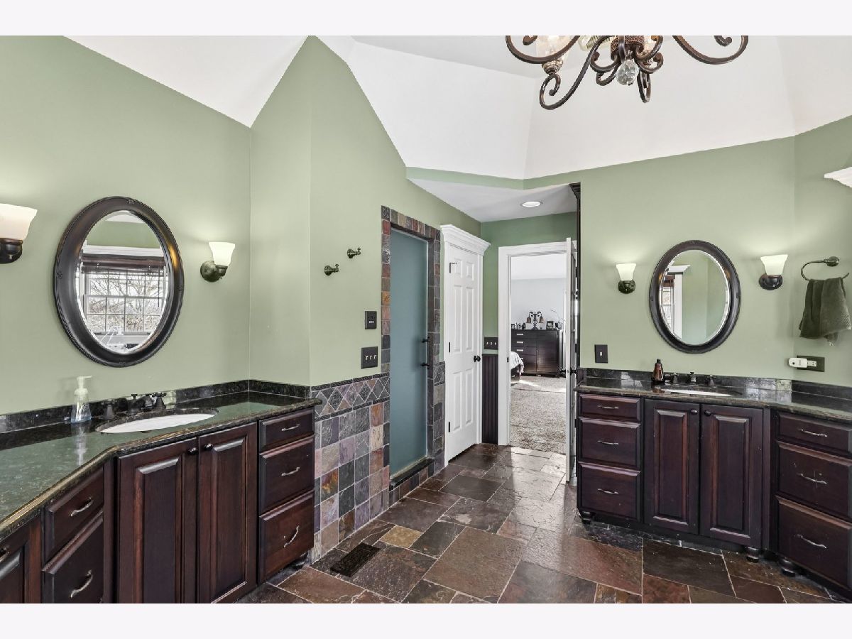 Resort-style living in the heart of McHenry County! This one-of-a-kind 4 bedroom, 3.5 bathroom custom home sits on over an acre at the end of a quiet cul-de-sac in highly desirable Dutch Creek Estates. A long driveway and covered front porch welcome you to your new private oasis - Once inside a two story foyer greets you and flows in to the large living room with a wood burning brick fireplace. A formal dining room is right off the stunning kitchen with granite countertops, oversized island with breakfast bar, built-in double oven, cooktop with range hood, and room for a kitchen space. The kitchen opens to a sun-filled sunroom with vaulted ceilings, skylights, and windows on three sides. A main-floor laundry room with a utility sink, hanging rod & extra storage and a half bath with built-ins complete the level. All four bedrooms are located on the second floor, including an amazing primary suite with vaulted ceilings, walk-in closet, and spa-like ensuite featuring dual vanities, a steam shower, and a freestanding soaking tub. Three spacious secondary bedrooms share a hall bath with dual vanity and tub/shower combo. The full finished walk-out basement is an entertainer's dream with a family room with a second wood burning fireplace, wet bar, media room with recliners, office, third full bath, and abundant storage. Step out to your new backyard with an inground pool and hot tub surrounded by a stamped concrete patio and a paver patio with fire pit. The pool and fire pit area are fenced, while the rest of the expansive yard offers plenty of open green space. An attached 3 car garage with tile flooring and newer garage doors provides plenty of parking or additional storage space. Recent improvements over the last four years include James Hardie siding and trim, a new roof, poolside storm door, and extensive landscaping with decorative rock and rubber mulch. Thoughtfully designed for both luxury and everyday comfort, this is truly a private retreat that feels like a vacation at home - don't miss it!