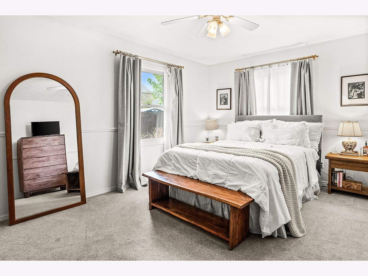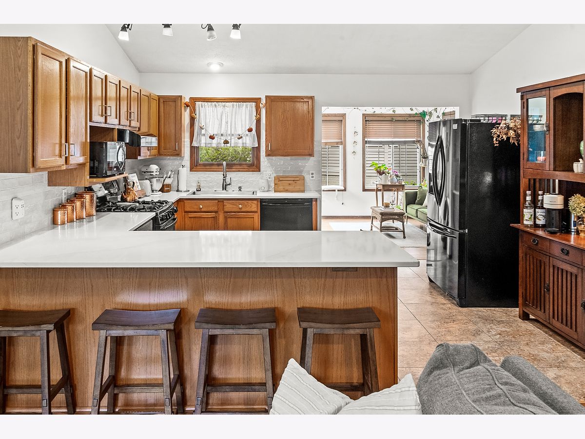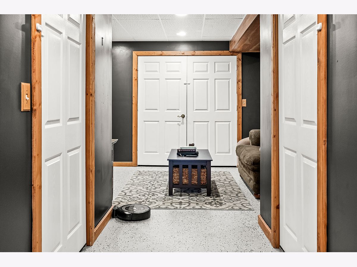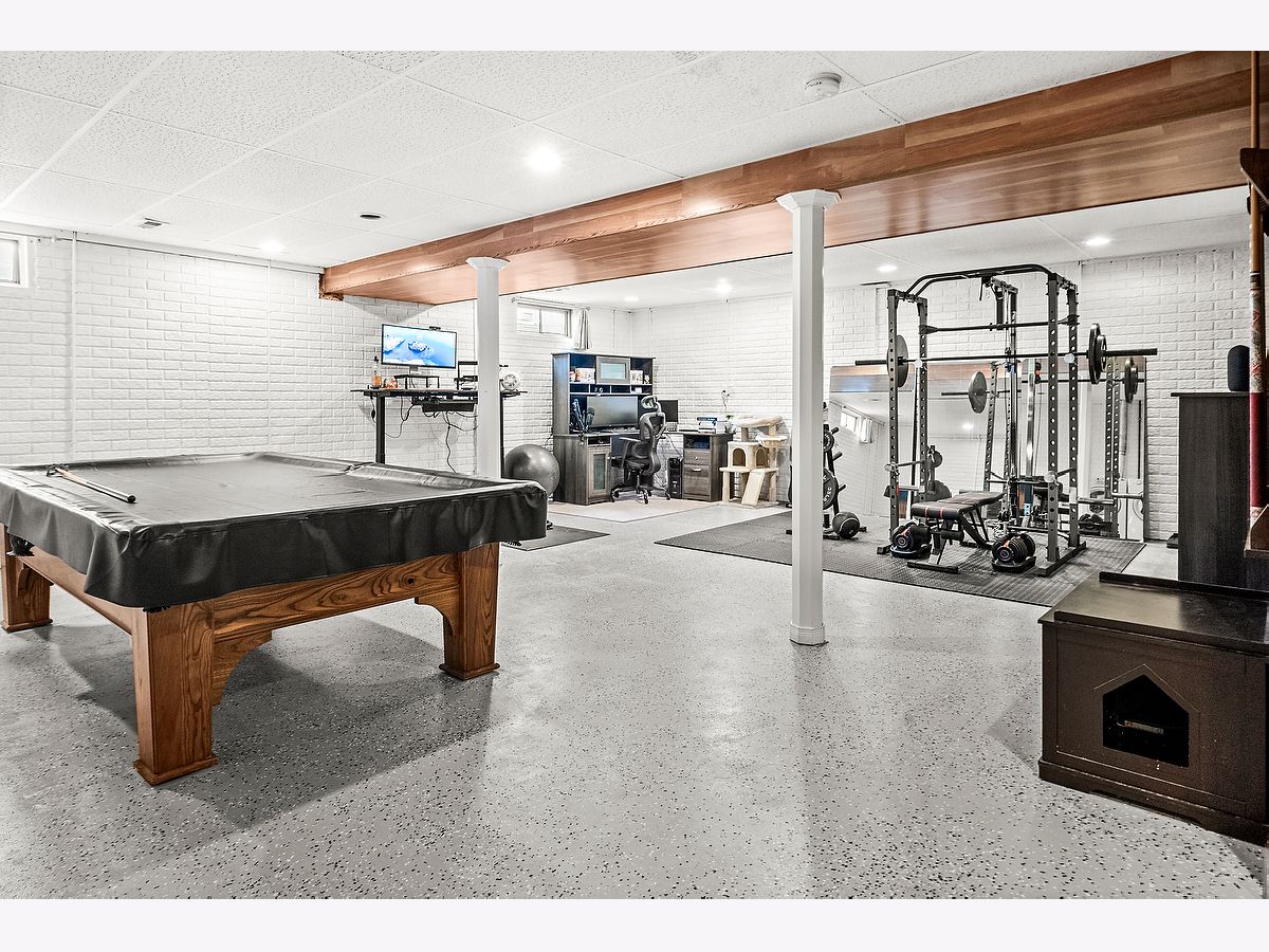 This charming corner-lot ranch has been thoughtfully updated from top to bottom! Step inside to find a bright, inviting kitchen featuring new quartz countertops, a stylish backsplash, and a brand-new sink - all complemented by a 2023 dishwasher. The open living room and two bedrooms showcase gorgeous new wood floors, while updated light fixtures add warmth and character throughout. Both bathrooms have been refreshed with new tile floors and modern vanities, and the master bedroom also features newer carpet (2018). Tech lovers will appreciate the Google Home and Nest system already in place for convenience and comfort. The finished basement offers extra living or entertaining space, complete with a bathroom rough-in for future expansion. The basement floor has been freshly painted and clear-coated, and includes a sump pump with backup (approx. 5 years old). A washer and dryer hookup on the main floor adds flexibility if you prefer laundry without stairs. Outside, you'll enjoy a well-kept yard maintained by Weedman, including regular aeration and seeding - plus your very own raspberry bushes ready to enjoy each season! Don't miss your chance to own a move-in-ready home that combines modern updates, smart features, and a welcoming layout in one perfect package!