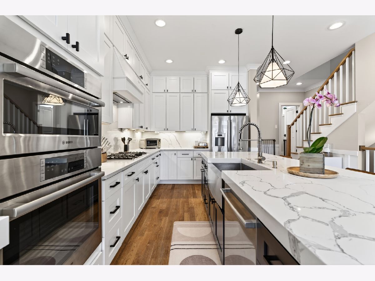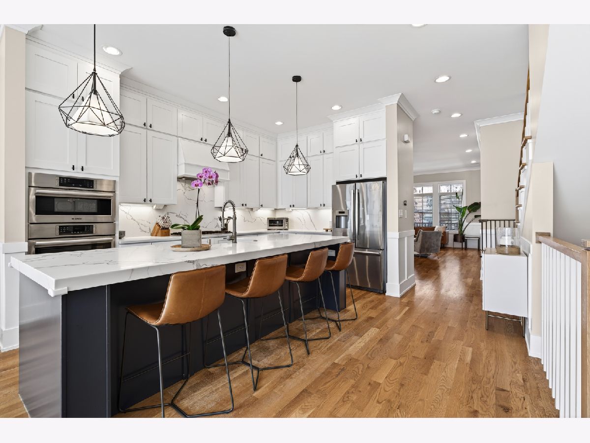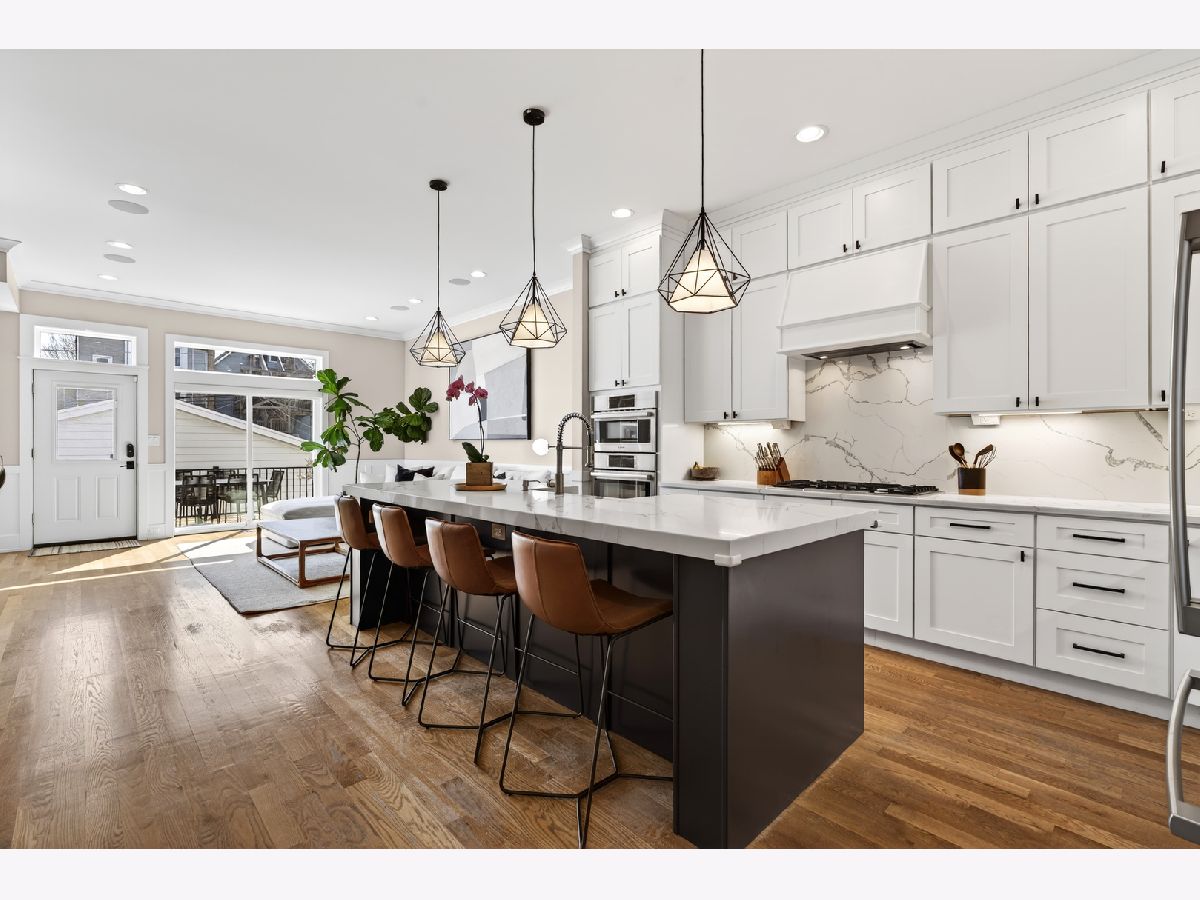 Built on an extra-wide 31' lot in 2019 and meticulously maintained, this stunning Avondale home offers the confidence of new construction with years of thoughtful upgrades already in place. Hardie Board siding, newly refinished hardwood floors on the main and second level, landings and stairs, custom Graber window treatments, and a gas fireplace create a warm and polished interior that's ready to impress from day one. The chef's kitchen and all appliances are original to the 2019 build and in excellent condition, while select finishes have been freshened as recently as 2026, including new Moen faucets throughout. The home is wired for modern living with surround sound in the living room, family room and outdoors, plus a smart garage door, video doorbell and three exterior cameras. Dual zone central HVAC with a new motor (2025) keeps every level perfectly comfortable year-round. Outdoors includes a newly expanded TimberTech deck (2025), professionally pavered yard (2021) and a full irrigation system creating an outdoor retreat that truly sets this home apart. The finished basement adds flexible additional living space, pre-wired for surround sound. True 2.5 car garage fits two full sized SUVs plus lawn equipment, bikes, strollers and wagons. Pre-wired for EV charger. Just minutes from three of Chicago's best neighborhoods, Logan Square, Roscoe Village and Avondale. The California Blue Line and access to 90/94. Move in ready!. This one checks every box!