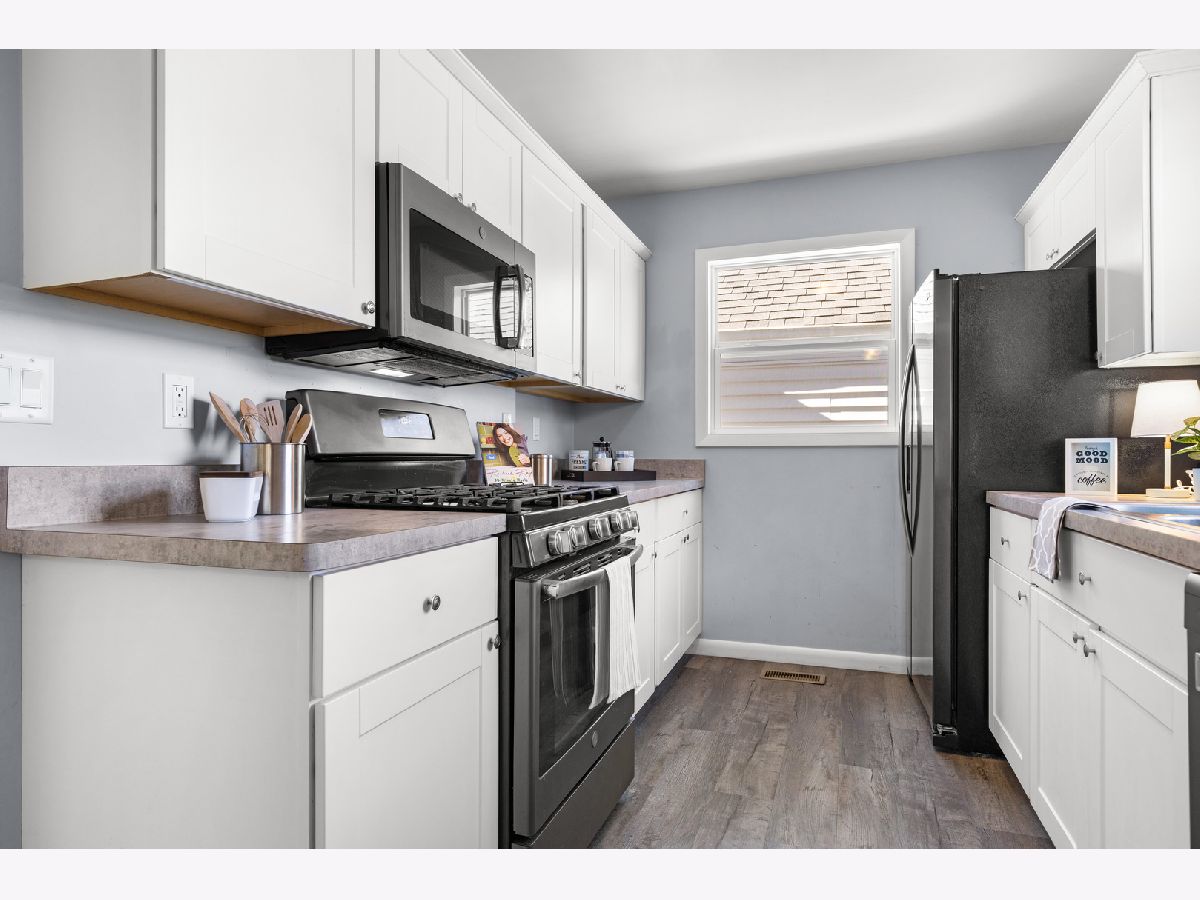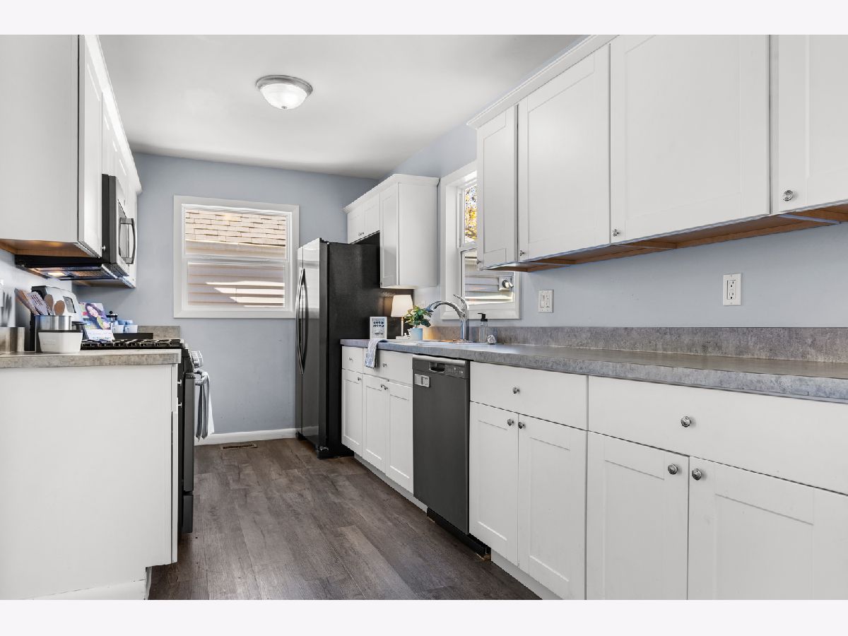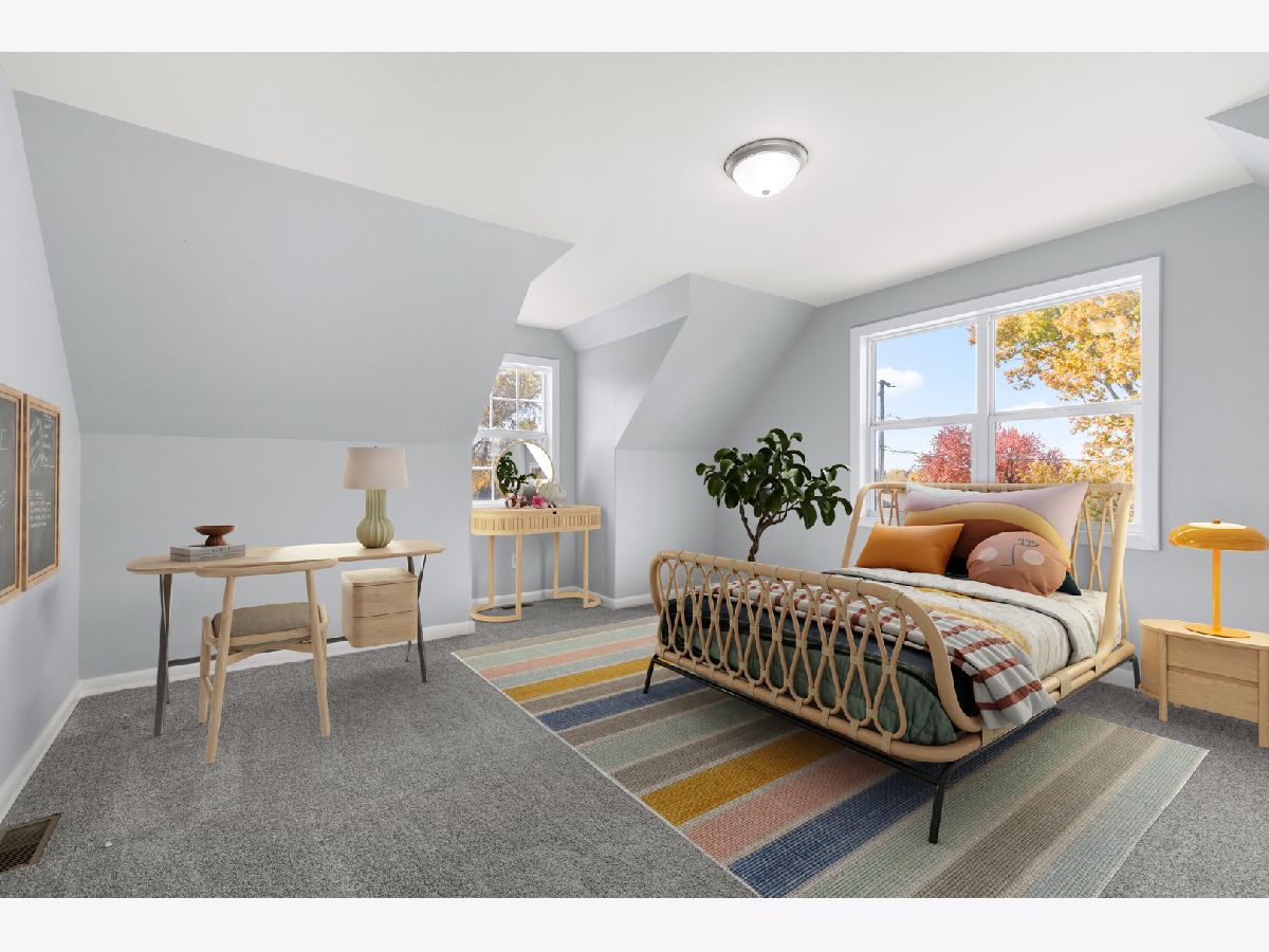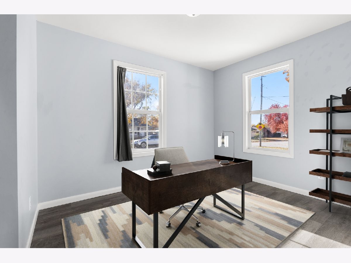 This cape cod classic has had a major facelift. There's a charming living room with fireplace that flows right into the bayed eating area and kitchen providing a great layout for entertaining. Light and bright white cabinetry and stainless steel appliances (dishwasher new). The enormous main floor primary is amazing with its vaulted ceiling, double closets, sitting area (12' x 9') and full bath attached. Also on the main floor is a private office which could be a 4th bedroom and convenient laundry! The main floor has easy care, durable LVP flooring. The upper level has 2 spacious adorable bedrooms with access to another full bath. A full basement provides ample storage space. Plenty of room to play outside in the Double lot, fenced rear yard. Awesome location near Highcrest/Edgebrook shopping/U of I School of Medicine. Virtual staging.