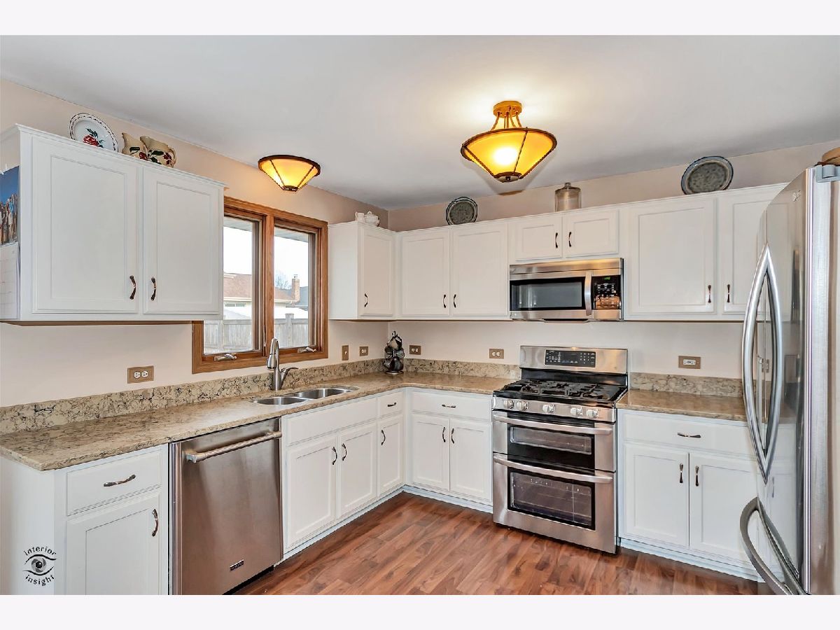 Welcome Home to this beautifully maintained 3 bedroom 2-full-bath split level in the highly sought after New Lenox Elementary School District! This functional floor plan offers comfortable living spaces and an attached 2-car garage. Home features a sunny eat-in kitchen complemented by sleek stainless-steel appliances, a double oven and pantry. From the kitchen, step outside to enjoy the concrete patio perfect for grilling, relaxing or hosting gatherings. Upstairs you will find 3 sizable bedrooms with Wall-to-Wall closet space. A refreshed full bathroom with tub/shower completes the 2nd floor. Stay warm in the lower-level family room around the beautiful brick fireplace. The fully fenced yard is perfect for pets, playing and entertaining. Yard is professionally landscaped. All newer mechanicals for peace of mind. Newer Roof, Windows, Exterior Doors. Don't miss this opportunity to own a Move-In-Ready Home in a fantastic location just minutes from I-80, 355 and New Lenox's finest shopping, dining and entertainment!