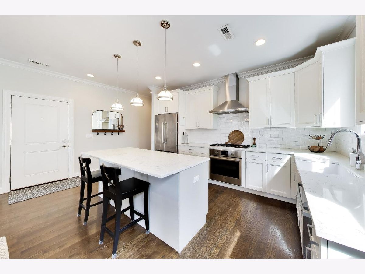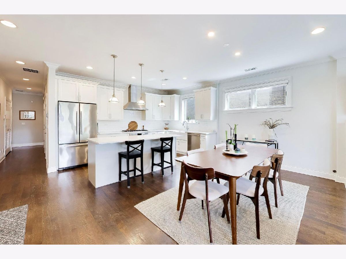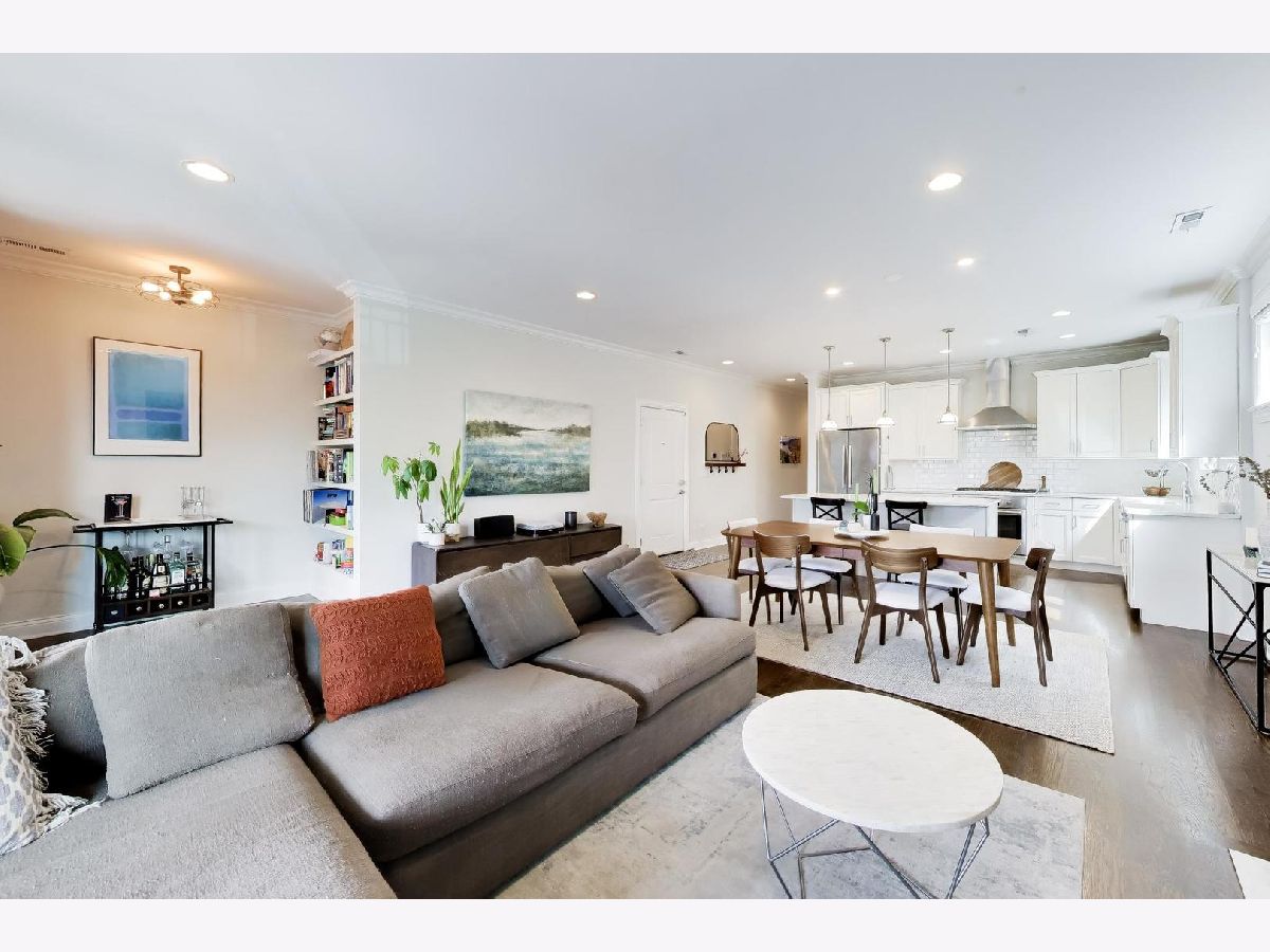 Enjoy expansive living in this extra-wide 3 bed / 2 bath condo set on an oversized 30x150 lot! Tucked away on a quiet, tree-lined street, this unbeatable location offers easy access to everything Logan Square has to offer. Designed for both everyday comfort and entertaining, the open-concept living and dining area offers incredible width and natural light, flowing seamlessly to a covered front terrace perfect for indoor/outdoor living year-round. The chef's kitchen is the heart of the home and features custom cabinetry, sleek white quartz countertops, and a high-end Bosch stainless steel appliance package. A cozy wood-burning fireplace adds warmth and character, while a versatile nook with built-in bookshelves creates the ideal space for an in-home office, reading corner, or play area. All three bedrooms are generously sized, and the primary includes a spacious en-suite bathroom complete with double vanities, heated floors, and a luxurious steam shower. Other notable features include a separate laundry room with generous storage, hardwood floors throughout, and a common turf area off the garage offering a great space for outdoor enjoyment. Step outside your front door and enjoy immediate access to Palmer Square Park, the Logan Square farmers market, and the Armitage corridor -- home to neighborhood favorites like Parson's Chicken & Fish, Middle Brow Bungalow, Gretel, Miko's Italian Ice and the newest neighborhood sushi/omakase concept, Omakase Box. Close proximity to I-90/94 expressways and the California/Milwaukee blue line. Welcome to your new home!