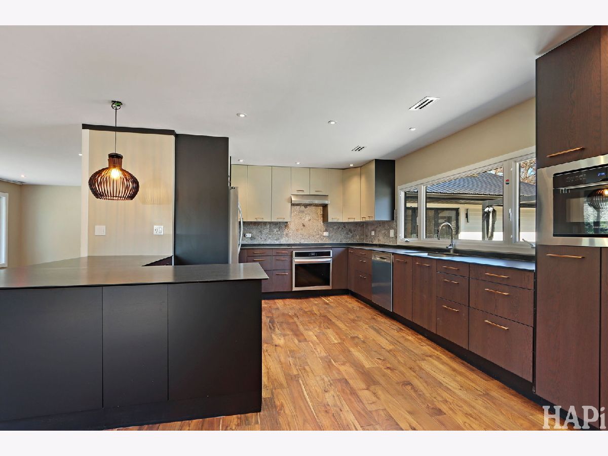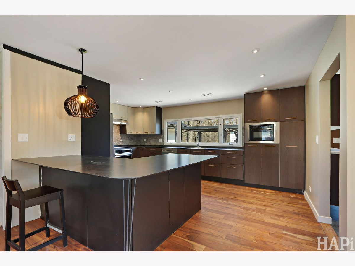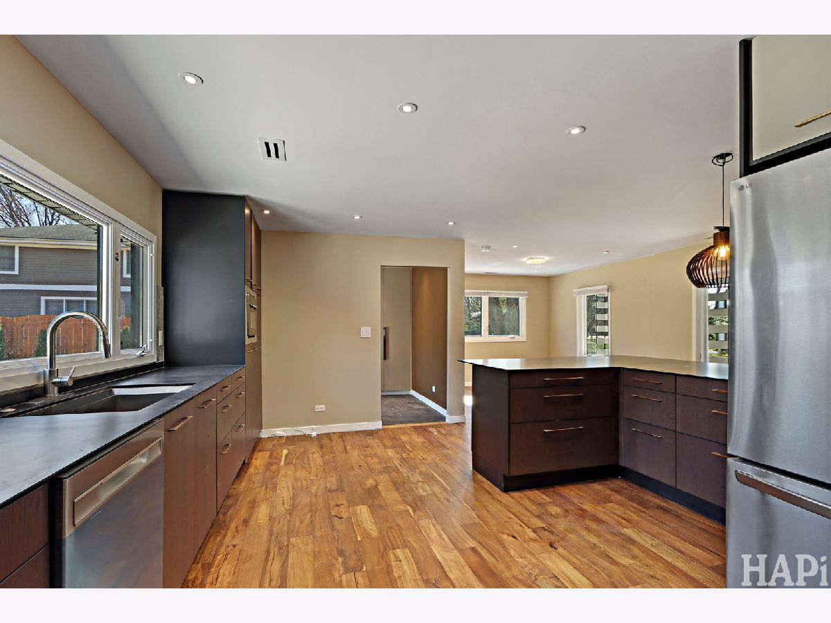Completely reimagined 1956 ranch on a rare near one-acre cul-de-sac lot, taken down to the studs in 2022/2023 and rebuilt for modern living, efficiency, and durability. Updates include new electrical (200-amp), plumbing, HVAC, steel roof, ClimateGuard windows, spray-foam insulation, and professionally encapsulated crawl space. Open-concept living with abundant natural light, acacia hardwood floors, custom kitchen cabinetry with shark-nose counters, built-in oven, and striking stone fireplace feature wall. Luxury baths feature designer tile, brass fixtures, and spa-style finishes, including a walk-in tiled shower with bench in the primary suite. Energy-efficient throughout with a $28,000 solar system (2023) providing low operating costs and summer surplus power. Outdoor living includes a custom patio with louvered portico, new circular driveway (2023), and expansive near one-acre yard. Rare 4-car garage with epoxy floors, new doors, and professional lighting. Quiet location with minimal traffic, near parks, lake, downtown Arlington Heights, and easy highway access. Every system and finish has been rebuilt - modern, efficient, and move-in ready. RENT TO OWN MAY BE AN OPTION.