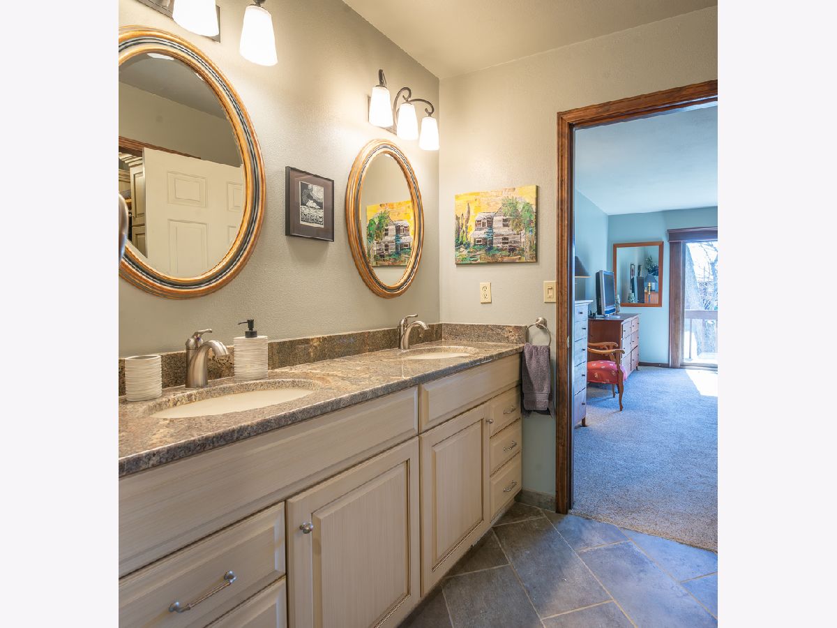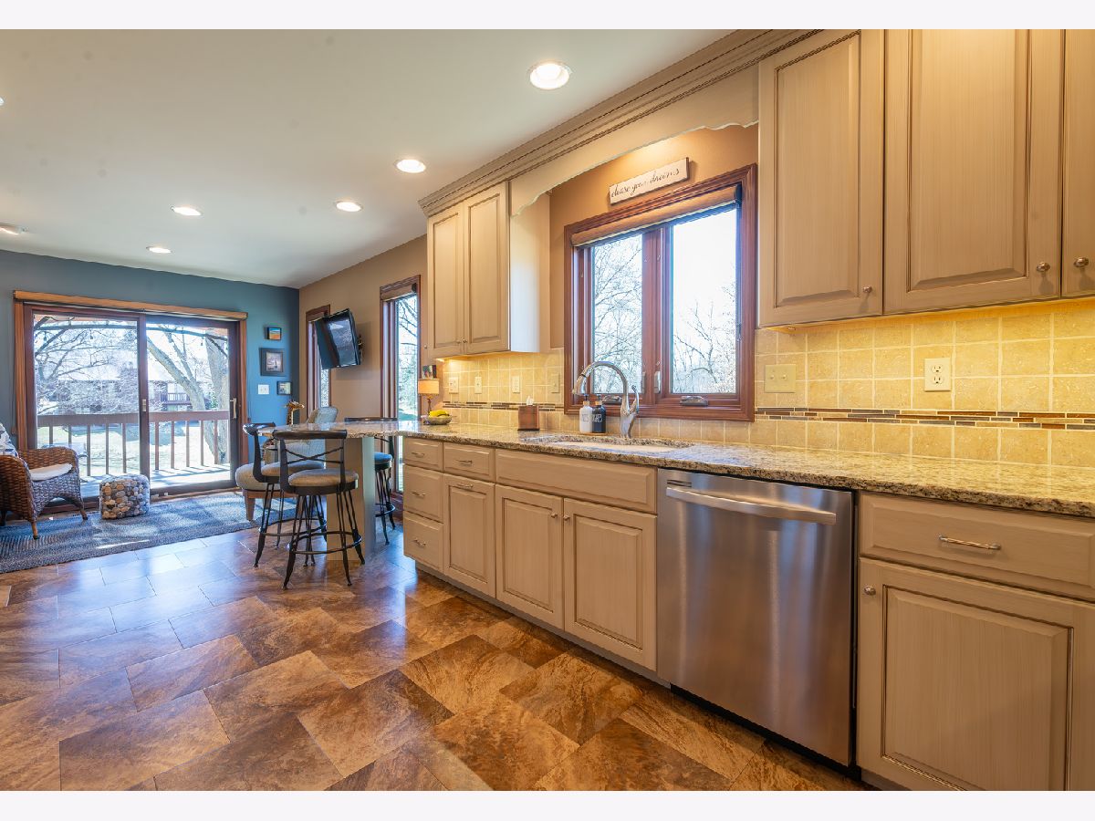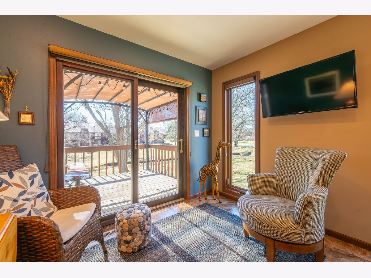 Better than new! This beautifully updated end-unit side-by-side duplex style condo with only one shared wall offers true main-floor living with a walkout daylight lower level and peaceful views of woods and a creek, creating a setting that feels like living in your own private park. Enjoy morning coffee while watching wildlife and evenings taking in sunsets from your private deck. The property also offers the added convenience of a driving range, observatory, and golf course just across the street. The main floor features a welcoming layout with guest bedroom and full bath with low step-in shower, ideal for visitors or flexible living. The primary suite was completely remodeled in 2023 and includes a private deck, walk-in closet, and spa-like bathroom with heated soaking tub, bidet, walk-in shower with dual shower heads, and double vanity. A spacious living room with wood-burning fireplace and formal dining room provide comfortable gathering spaces. The updated kitchen (2012) includes granite countertops, stainless steel appliances, breakfast bar, eating area, and abundant cabinetry. Convenient main-floor laundry adds to the ease of single-level living. Step outside to the deck rebuilt in 2018 with gazebo, the perfect place to enjoy wildlife and tranquil nature views. Skylights throughout the home bring in abundant natural light. The walkout daylight lower level expands the living space with family room, entertainment area, bar space, additional bedroom, half bath, and ample storage with workbench. Additional updates and improvements include: Added insulation during remodel. New siding by condo association. Whole-house ventilation system. Water heater (2020). Gas forced air furnace & central air (2020). Sump pump (2017). Flooring (2018 or newer). A rare opportunity to enjoy low-maintenance living with space, updates, and beautiful natural surroundings.
