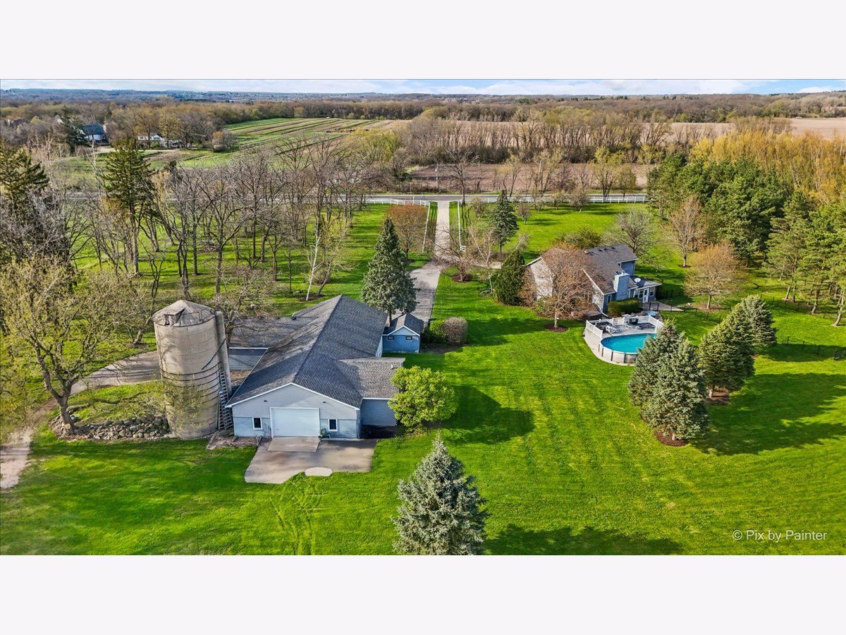 Beautiful nearly 7 acre estate located in Spring Grove with a Richmond mailing address. Here is your opportunity to live where you run your business, Zoned B2- do your due diligence with the Village of Spring Grove. The home exudes charm as you walk up to the large front porch that overlooks your grounds. Main floor primary suite an added plus with large walk in closet, sunken whirlpool tub, double bowl vanity, and separate shower! Kitchen features large center island with plenty of seating and food prep space, & stainless steel appliances. Vaulted great room with stone woodburning fireplace is open to kitchen which makes entertaining seamless. Formal Dining room for all the special occasion dinners! Lovely sunroom with heated slate floors located right off the kitchen! Second floor features an additional two bedrooms, loft, and full bath. Finished basement gives you all the extra space you need, recreation, workout, office, or 4th bedroom space in addition to plenty of storage and half bath! Main house has two car attached heated garage. Talk about an out building, wow! 80x40 structure with large clear span, heat, air conditioning and handicap accessible bathrooms to house your potential future business ventures! 11 foot ceilings and (2) drive in doors, 8x10 and 14x10. Adjacent to the shop is a 3.5 car garage and 620 sq ft quonset hut for even more storage to park your vehicles, toys and more! Paved driveway leads you to your home and outbuildings. Enjoy summer time fun in your 33x18 above ground heated pool and hot tub! This could be the home/business opportunity you have been looking for!