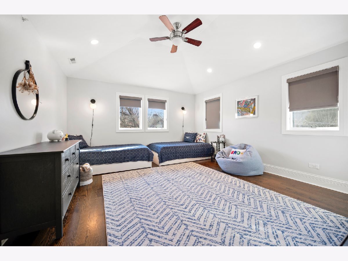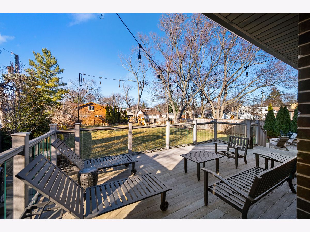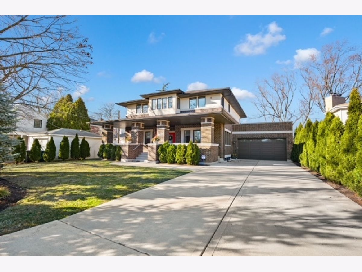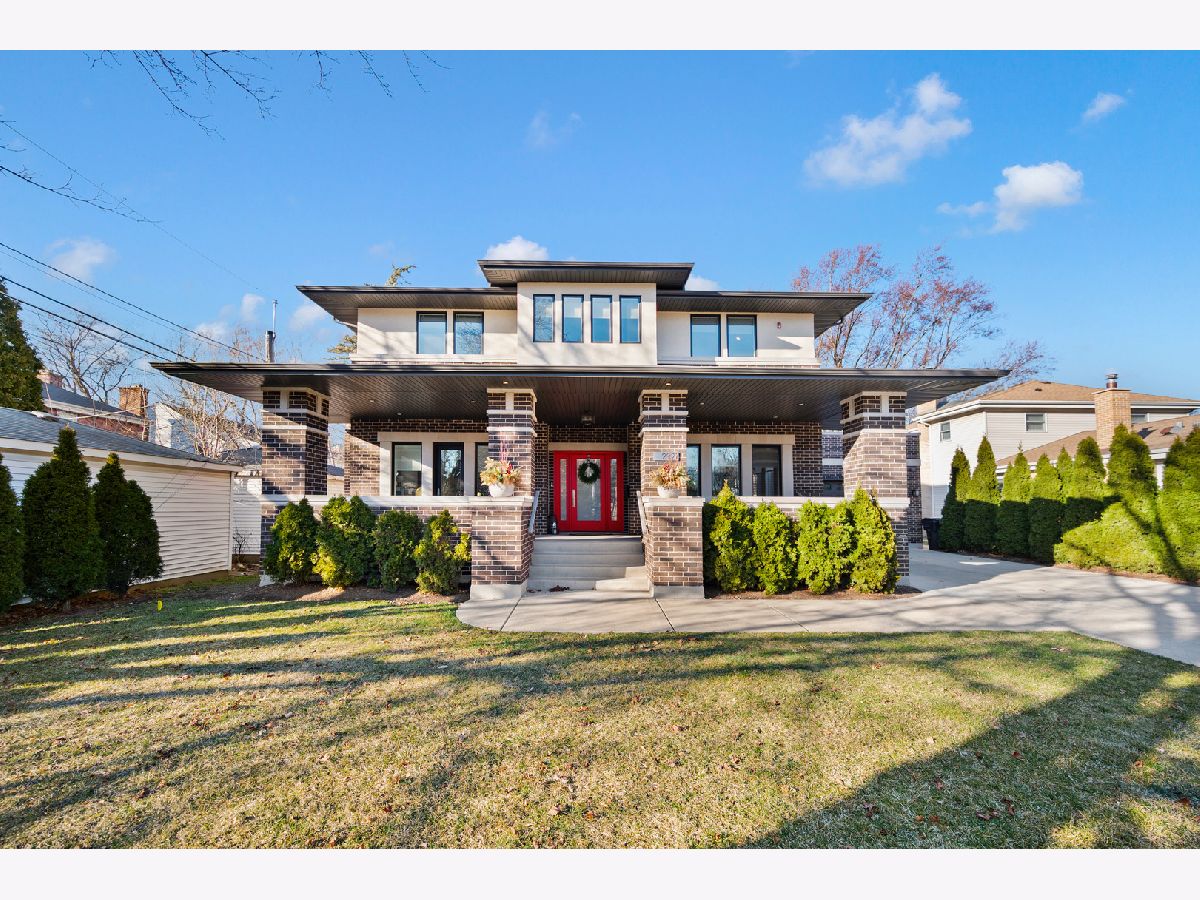 The moment you step inside this home, you will feel the quiet luxury that exudes from the soaring ceilings and open spaces. Set back on an oversized 14,000 square foot double lot, behind the professionally landscaped entryway, this newer construction Frank Lloyd Wright inspired home boasts 5,000 square feet of serene, open living space. In addition to the gorgeous interior, this home offers outdoor space that is unparalleled at this price-point in Northwest Evanston! The fully landscaped and fenced backyard provides custom planted foliage to ensure color and beauty for all seasons. An elevated, large Trex deck with glass railings for unobstructed views, and adjacent patio with new, summer kitchen is perfect for entertaining. Back inside this beautiful home, you will find a chef's kitchen with top of the line, stainless steel appliances and a large center island that separates the kitchen from the expansive living room with remote controlled fireplace. Two sets of double doors brings the outside in, floods the living space with light and provides for gorgeous views of nothing but beautiful nature. When entering the home through the front door, you will see a large bedroom with a walk-in closet to the left that is currently being used as an office. A spacious dining room mirrors on the right. The second level boasts three ensuite bedrooms, including the primary suite and a conveniently located laundry room. The lower level is a home in and of itself! Soaring ceilings and recreational space galore including a large family room, separate room for exercise or movie screening, and the final bedroom and bath for hosting guests and family. Add to all of this an attached, 2.5 car garage with storage and a perfectly situated mud room and you really have the home that dreams are made of! Don't miss this opportunity for space, newness, privacy, and beauty all within a short distance to Central St. shops and restaurants.