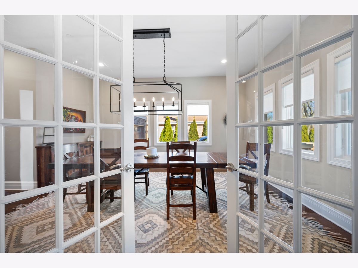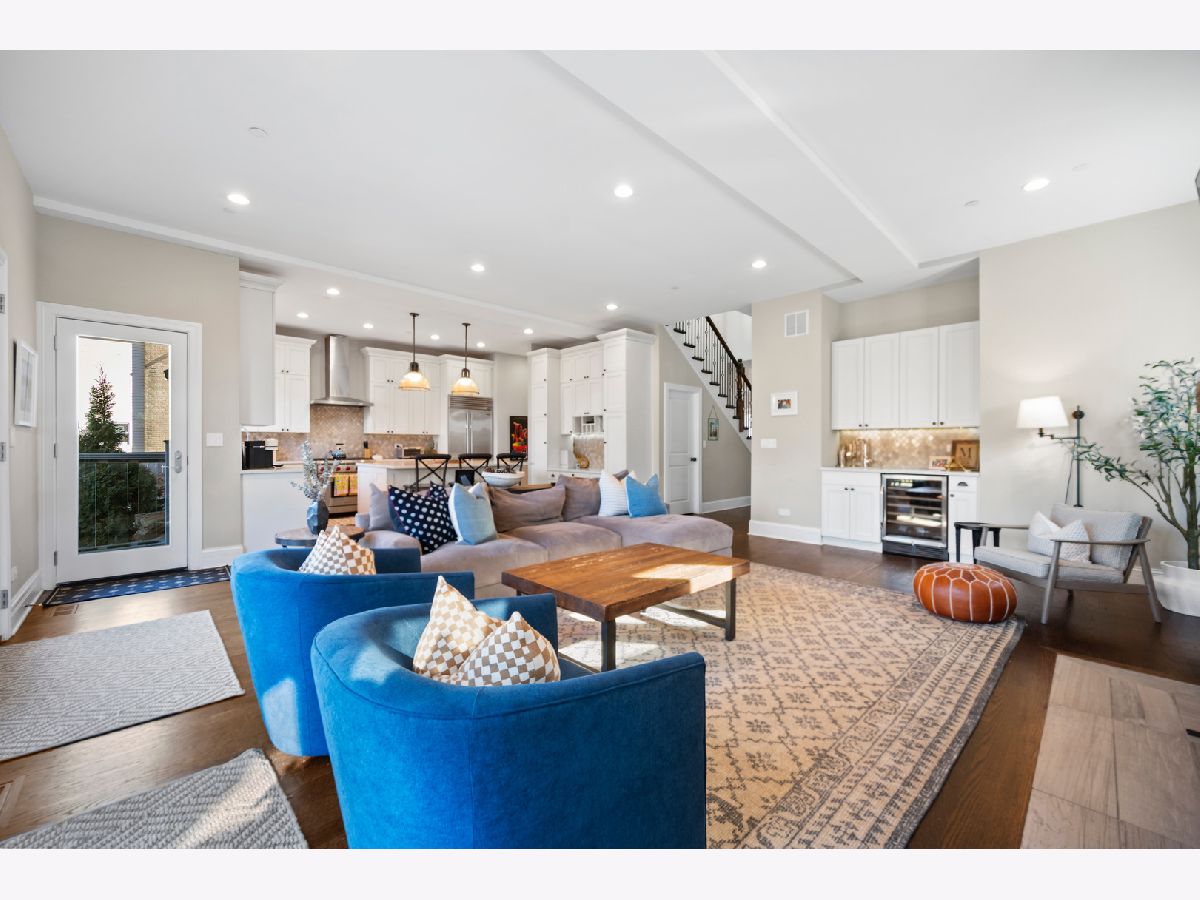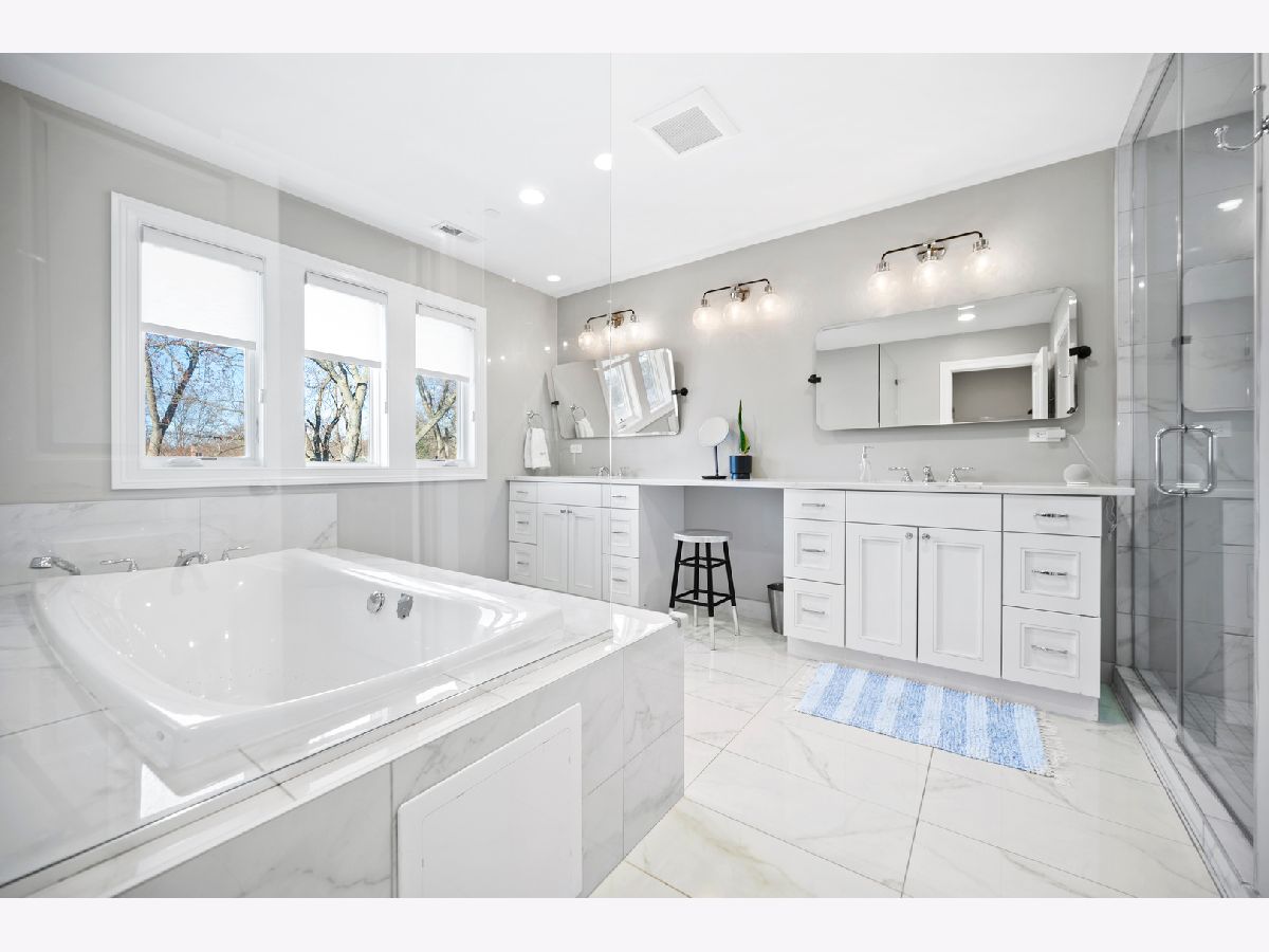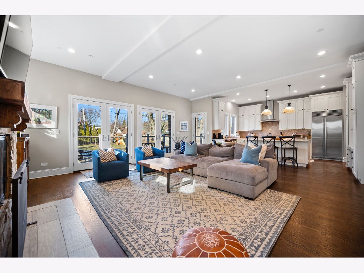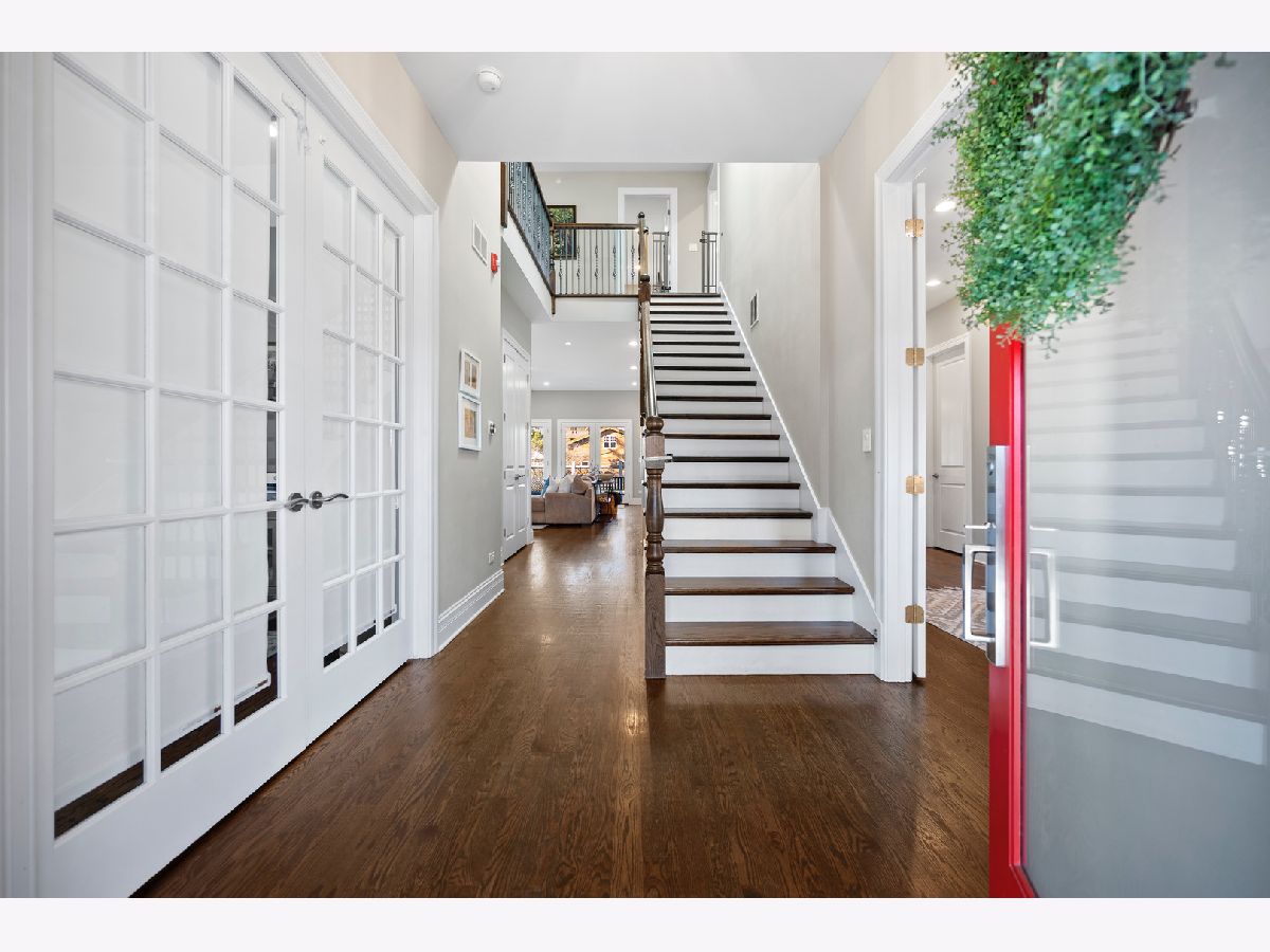 The moment you step inside this home, you will feel the quiet luxury that exudes from the soaring ceilings and open spaces. Set back on an oversized 14,000 square foot double lot, behind the professionally landscaped entryway, this newer construction Frank Lloyd Wright inspired home boasts 5,000 square feet of serene, open living space. In addition to the gorgeous interior, this home offers outdoor space that is unparalleled at this price-point in Northwest Evanston! The fully landscaped and fenced backyard provides custom planted foliage to ensure color and beauty for all seasons. An elevated, large Trex deck with glass railings for unobstructed views, and adjacent patio with new, summer kitchen is perfect for entertaining. Back inside this beautiful home, you will find a chef's kitchen with top of the line, stainless steel appliances and a large center island that separates the kitchen from the expansive living room with remote controlled fireplace. Two sets of double doors brings the outside in, floods the living space with light and provides for gorgeous views of nothing but beautiful nature. When entering the home through the front door, you will see a large bedroom with a walk-in closet to the left that is currently being used as an office. A spacious dining room mirrors on the right. The second level boasts three ensuite bedrooms, including the primary suite and a conveniently located laundry room. The lower level is a home in and of itself! Soaring ceilings and recreational space galore including a large family room, separate room for exercise or movie screening, and the final bedroom and bath for hosting guests and family. Add to all of this an attached, 2.5 car garage with storage and a perfectly situated mud room and you really have the home that dreams are made of! Don't miss this opportunity for space, newness, privacy, and beauty all within a short distance to Central St. shops and restaurants.