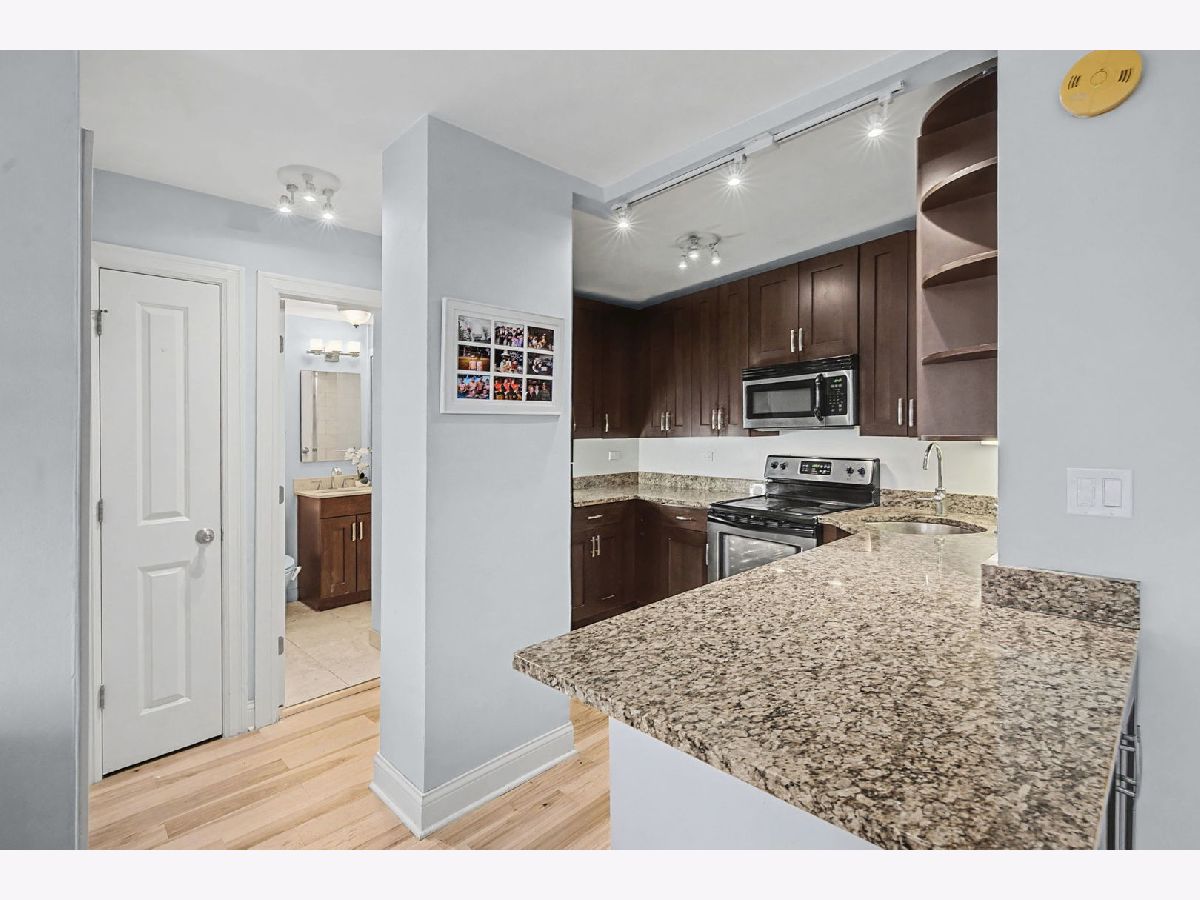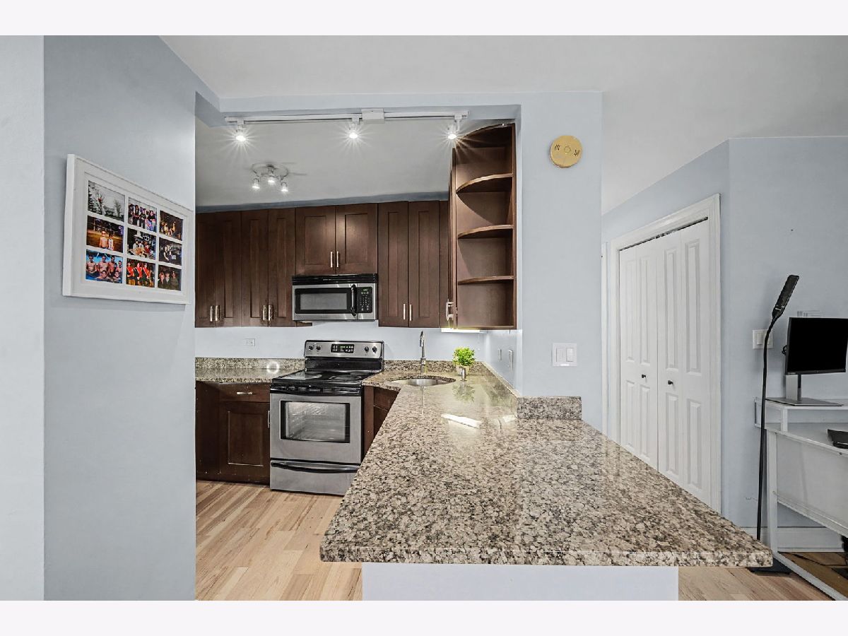 Ideally located in the heart of Lakeview in a full-amenity building, this bright and inviting condo offers an open and spacious living and dining area with beautiful engineered hardwood floors and oversized windows that fill the home with natural light. The kitchen features an abundance of 42" walnut cabinets, stainless steel appliances, granite countertops, and a large island that provides additional seating and prep space. The generously sized bedroom offers great space along with plenty of closet storage throughout the home. A stone bathroom and the convenience of in-unit laundry add to the home's functionality. Enjoy wonderful building amenities including a rooftop deck with incredible city views, a party room, and a fitness center. Pet-friendly and ideally located close to restaurants, shopping, Belmont and Diversey Harbors, bike paths, and convenient public transportation.