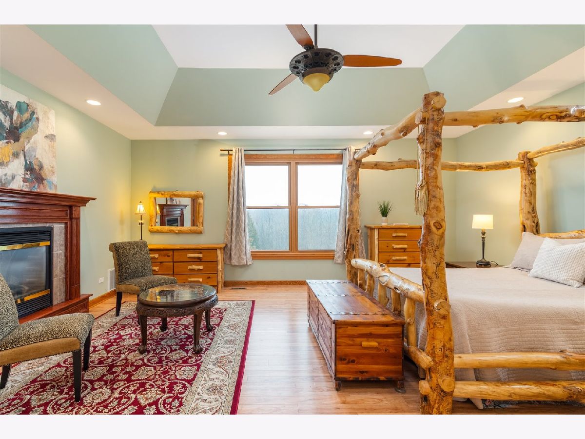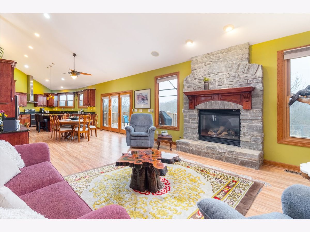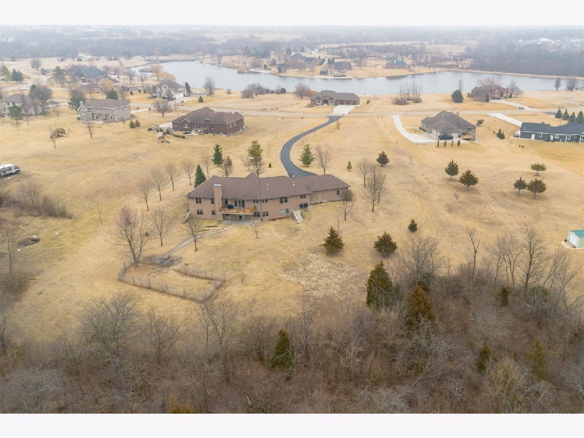 Custom-built ranch offering approximately 2,900+ square feet above grade and nearly 5000+ square feet of finished living space including the beautifully finished walkout lower level - all set on 5.67 private wooded acres backing to a ravine. The open floor plan features soaring vaulted ceilings, hardwood floors, and three gas fireplaces. The gourmet kitchen includes granite countertops, cherry cabinetry, stainless steel appliances, and a walk-in pantry. This 3-bedroom, 3 full and 1 half bath home offers oversized walk-in closets throughout and a convenient first-floor laundry with additional storage. The primary suite features a see-through fireplace shared between the bedroom and spa-inspired bath. The finished walkout basement adds substantial additional living space with a full bath, storage area, built-in storm shelter, and patio access. A deck off the main-level eating area overlooks peaceful wooded views. Located in a custom home community centered around a scenic lake with a walking path.