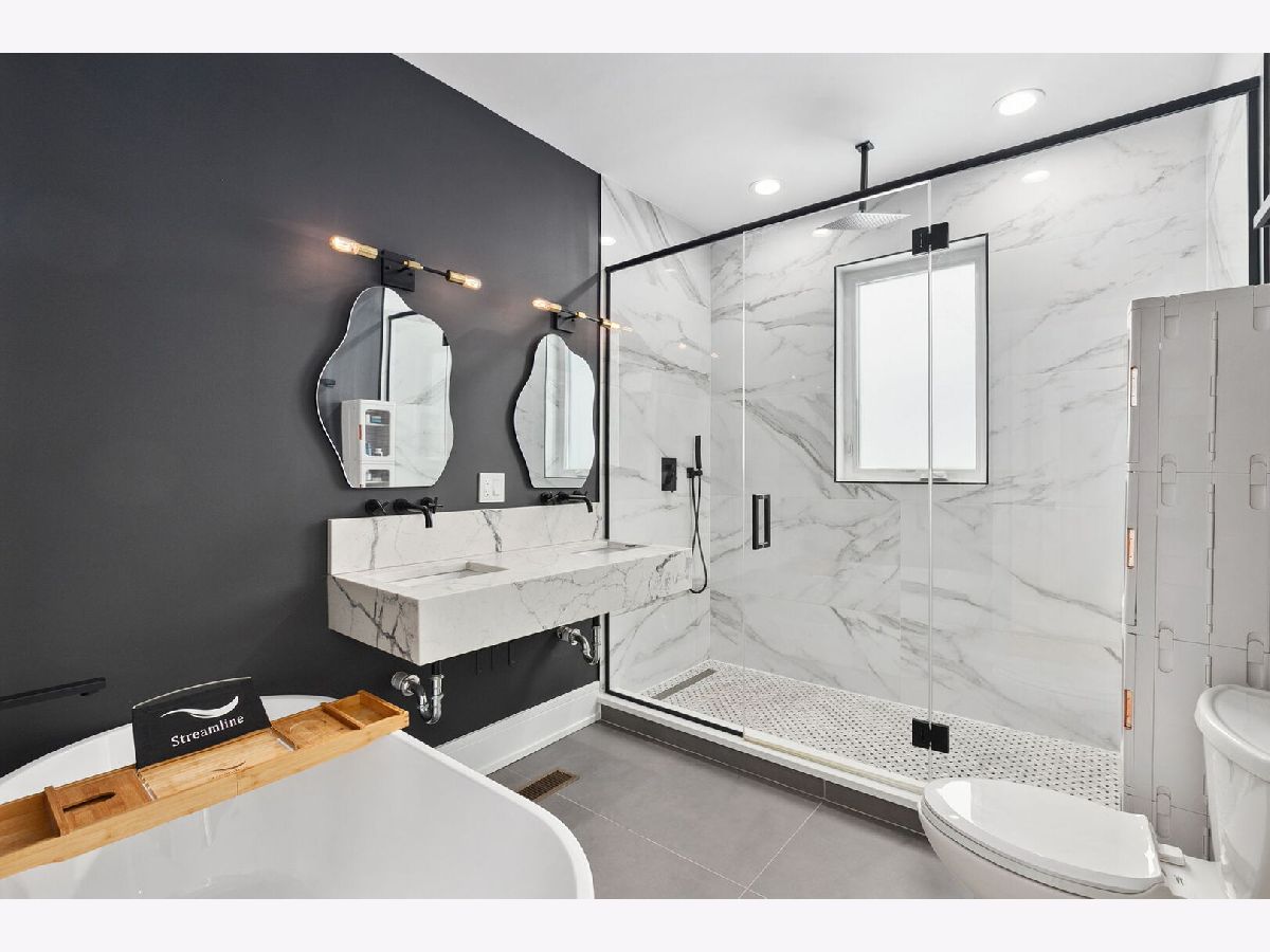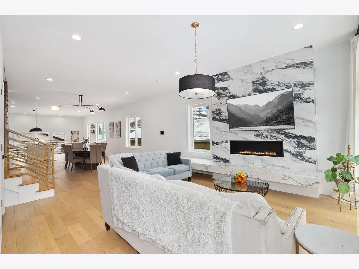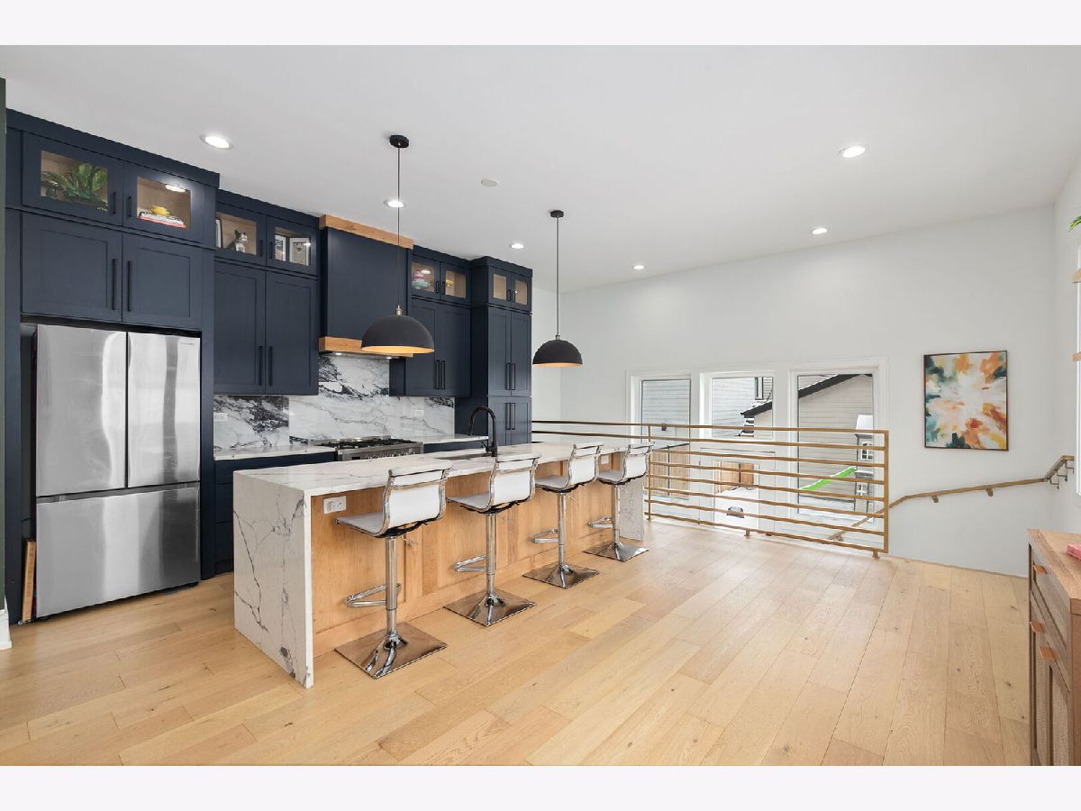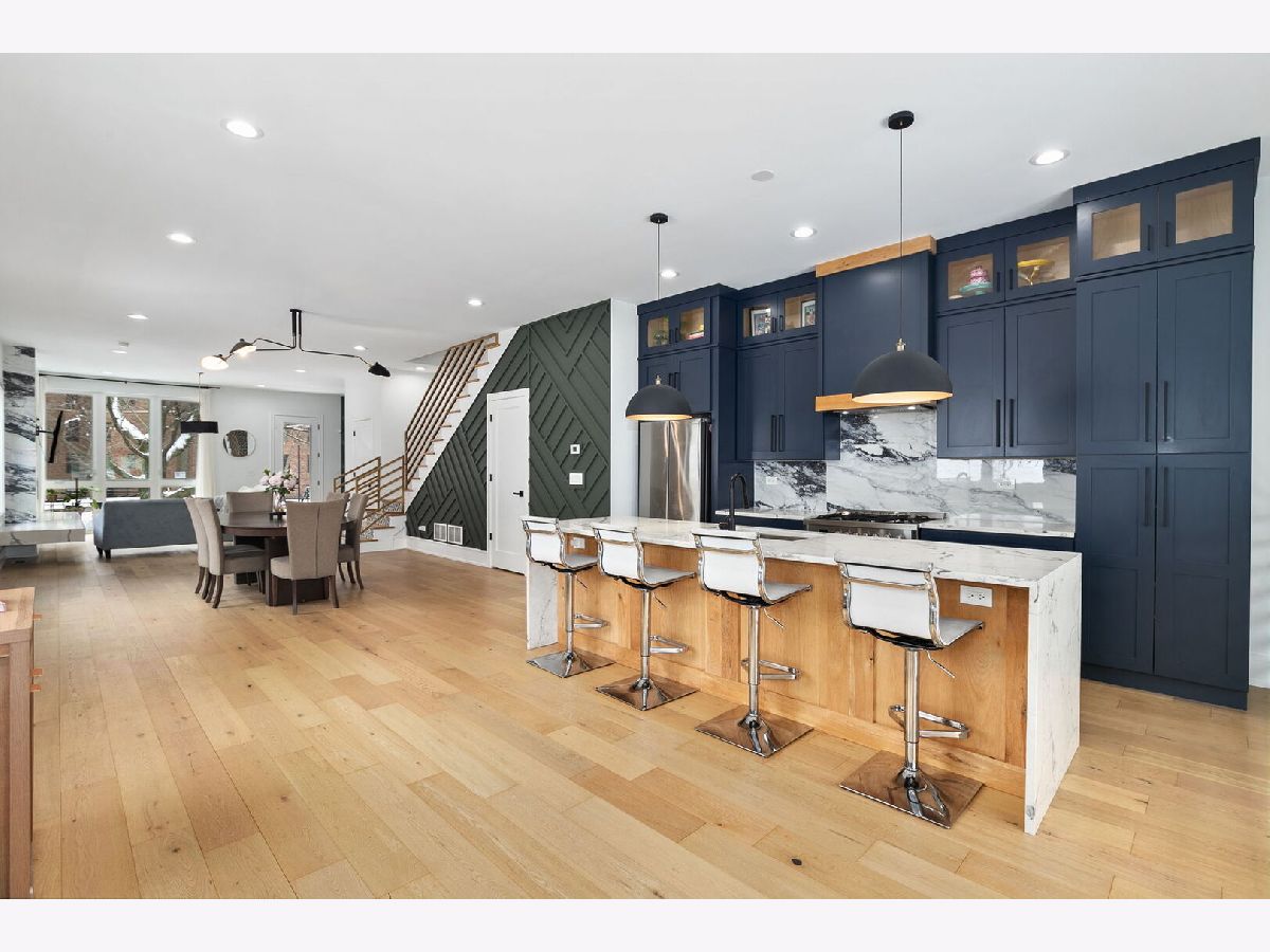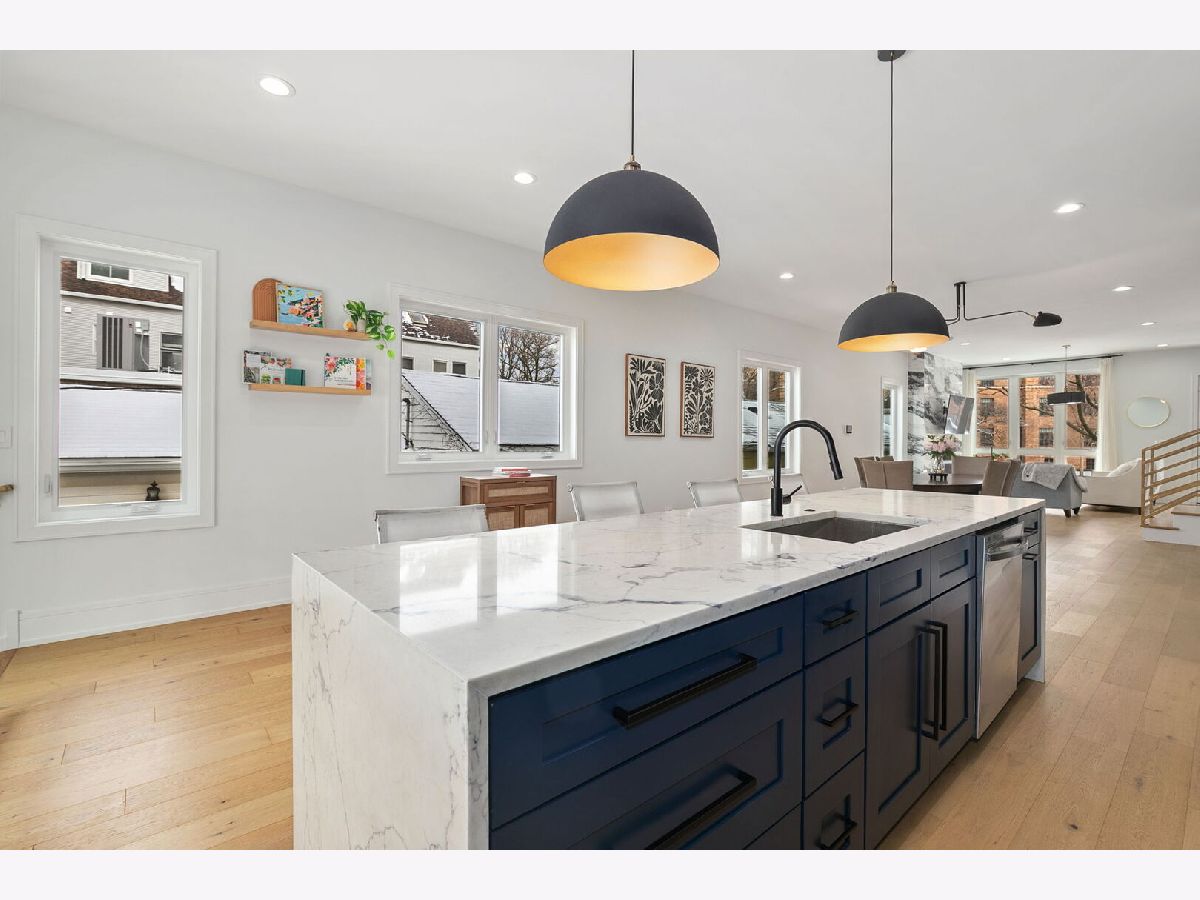 Modern and stylish throughout without losing its practicality and convenience, this remarkable 5Br/3.5Ba single-family home spans across three levels plus a fully finished rooftop, showcasing high-end finishes, exceptional design and thoughtful functionality throughout. The main level features an impressive, open layout with a designer kitchen, an oversized island, and a seamless flow into the living and dining areas-perfect for entertaining; plus a convenient powder room. Upstairs, three spacious bedrooms and two full baths include a luxurious primary suite with a spa-like shower and gorgeous marble accents. The sunny lower level provides an additional family room, two more generous bedrooms and a third full bath. The home's outdoor space cannot be beat, featuring both a turfed rooftop deck plus a grassy backyard. Situated on a quiet, tree-lined street just a short walk to Hamlin Park and close to Roscoe Village dining, shopping, and transit; this home offers the perfect blend of modern living and neighborhood charm.