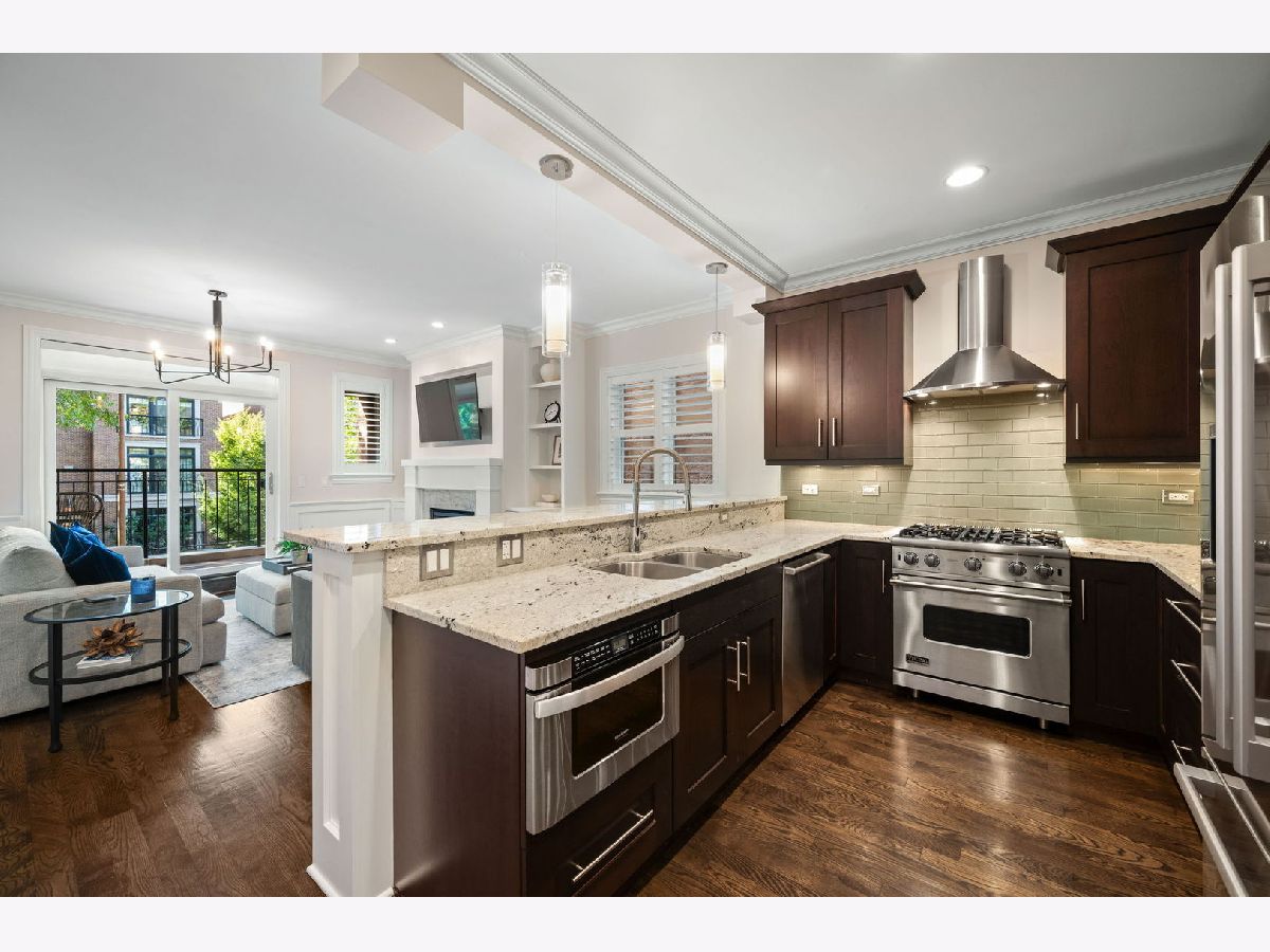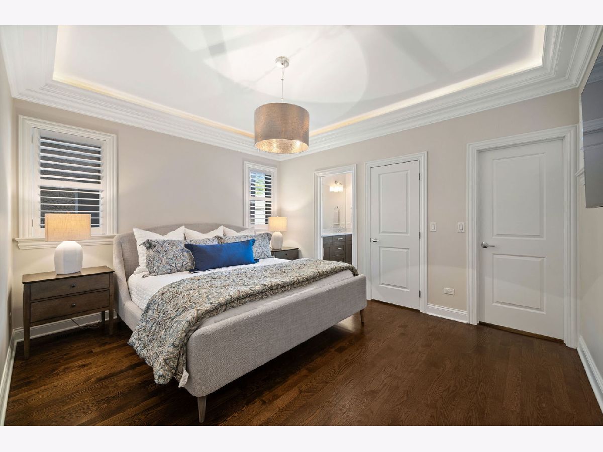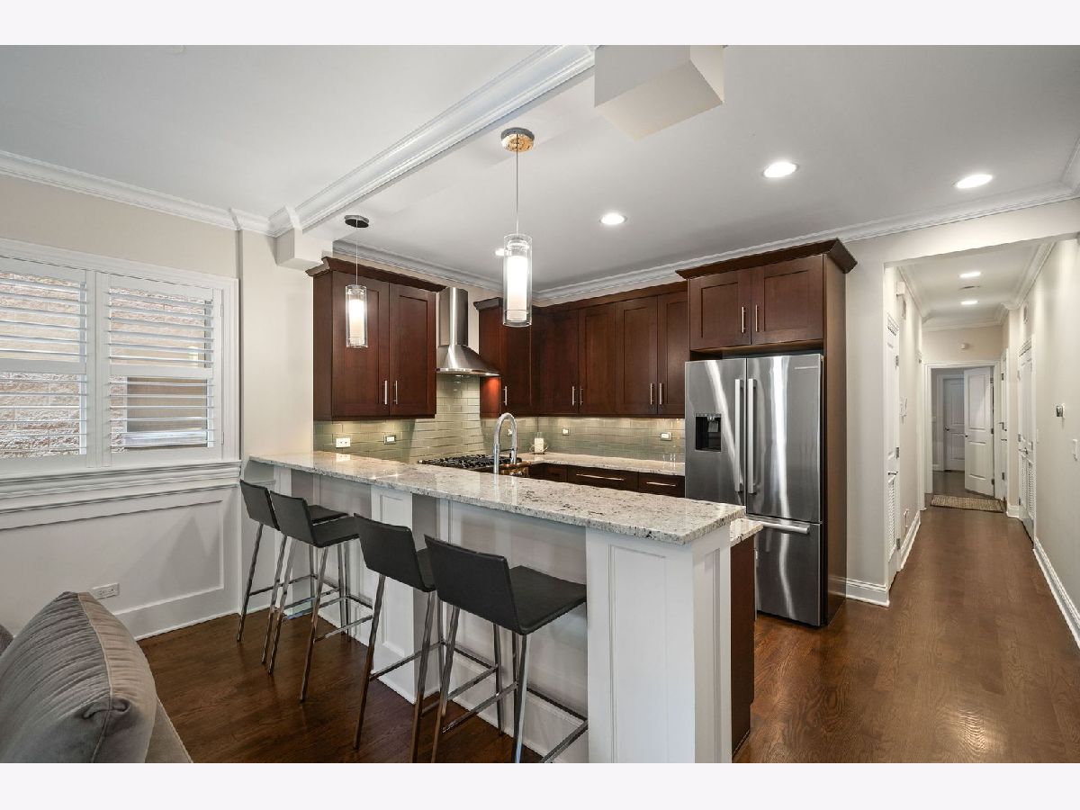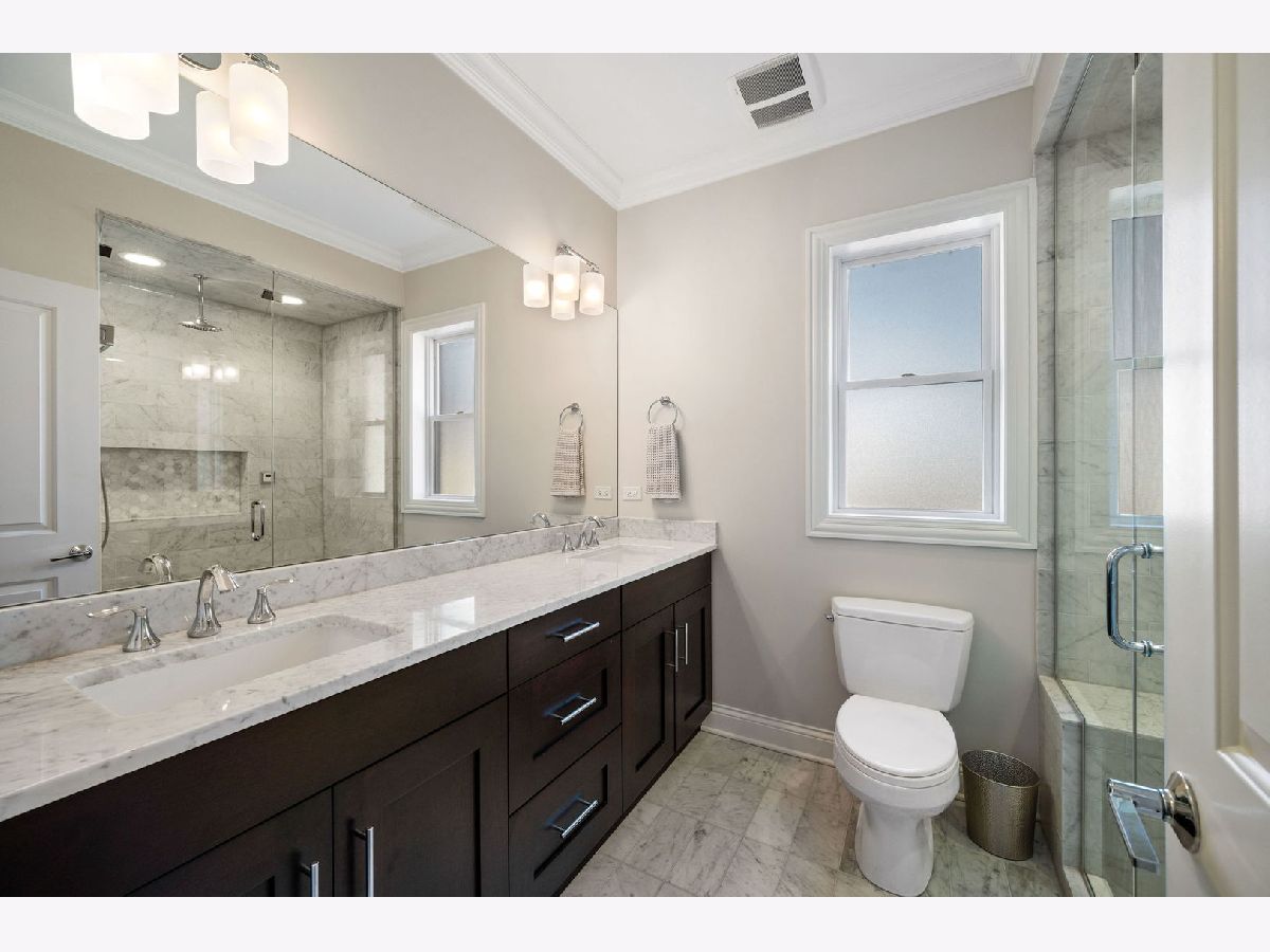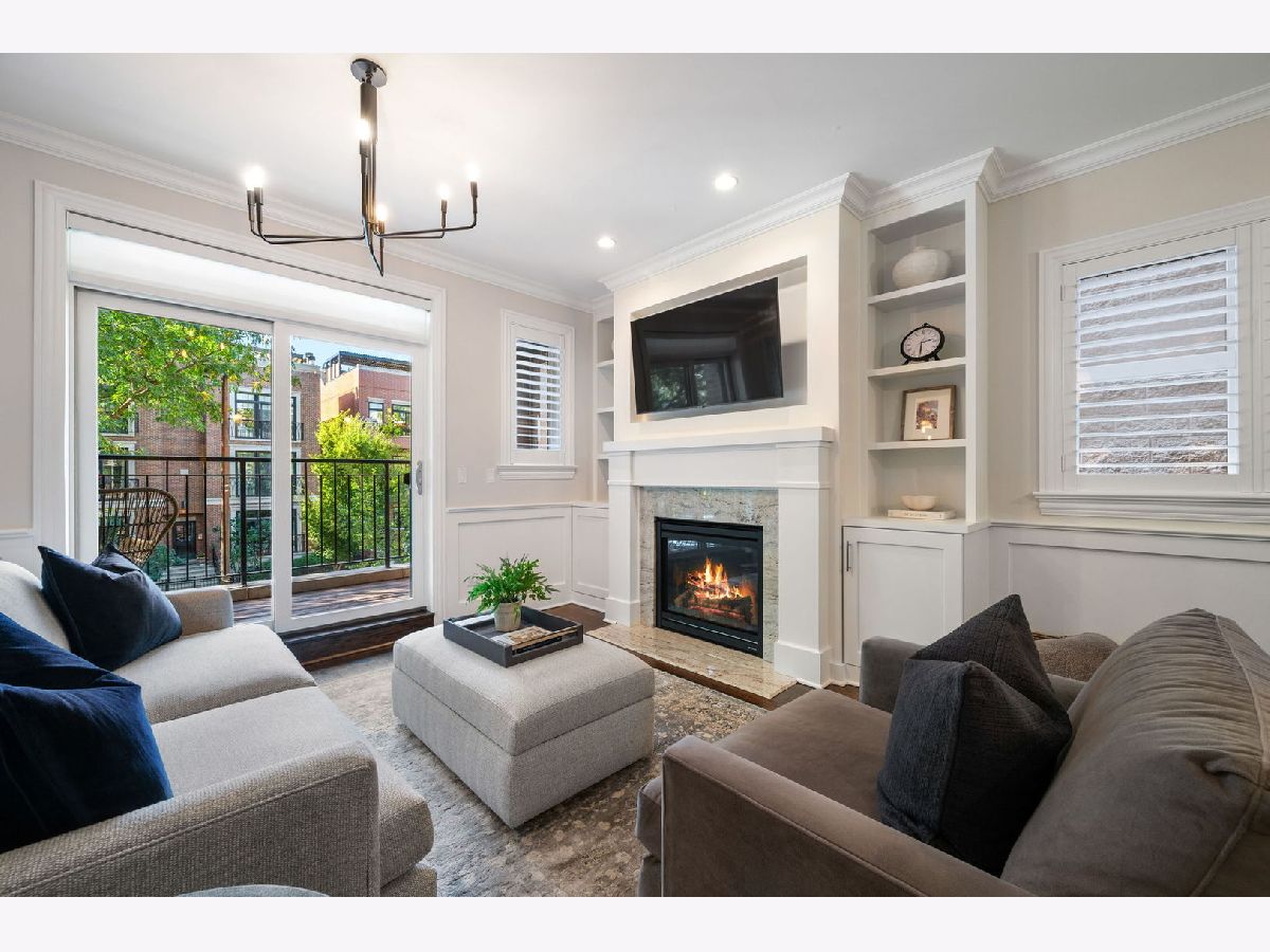 This stylish 2 bedroom, 2 bath home features upgraded finishes in an all brick building just steps from Hamlin Park and the popular restaurants and boutiques of Roscoe Village. Elevated details include a well-appointed kitchen with Viking and Bosch appliances, hardwood flooring throughout, crown molding, a fireplace with built-in shelving, wood shutters and a charming covered front balcony - the perfect perch for morning coffee or evening relaxation. The spacious primary suite easily accommodates a king size bed and has integrated lighting, while the spa-inspired bath offers a double vanity, heated floors, steam shower and marble finishes. Additional highlights include in-unit laundry, assigned garage parking, a storage locker and an intercom system. A shared HOA Ring doorbell camera adds extra convenience. Enjoy quick access to expressways and the Paulina Brown Line Station is less than a mile away for an easy commute downtown. This home offers the perfect blend of comfort, style, and convenience in one of Chicago's most desirable neighborhoods.