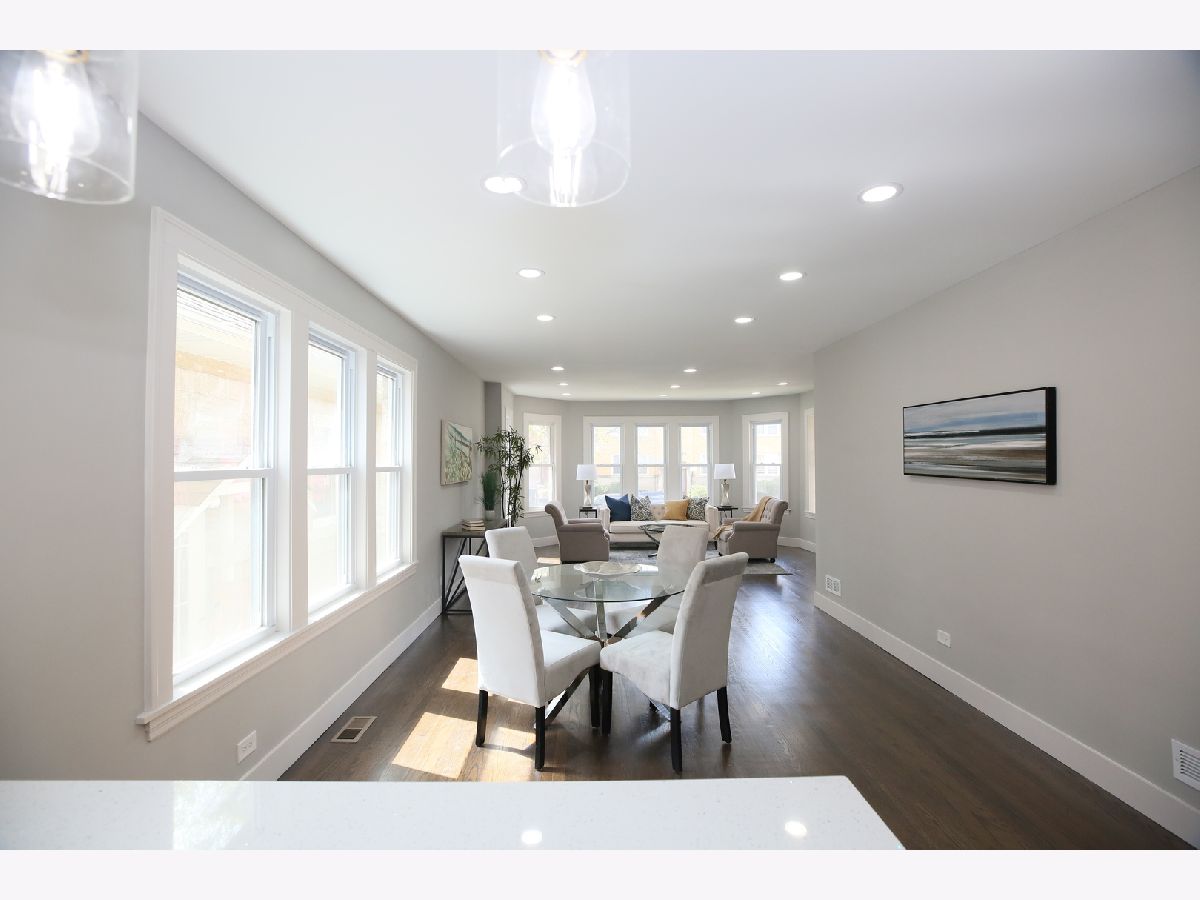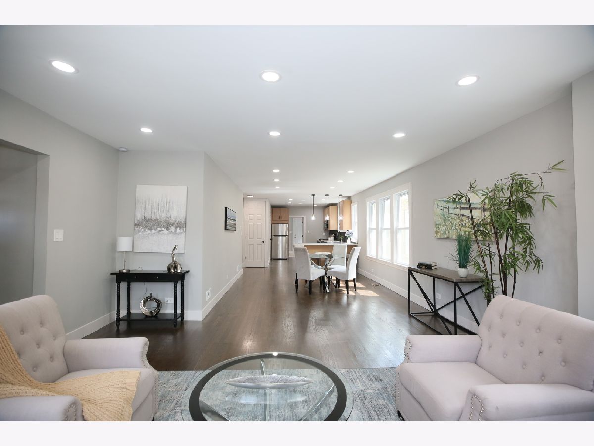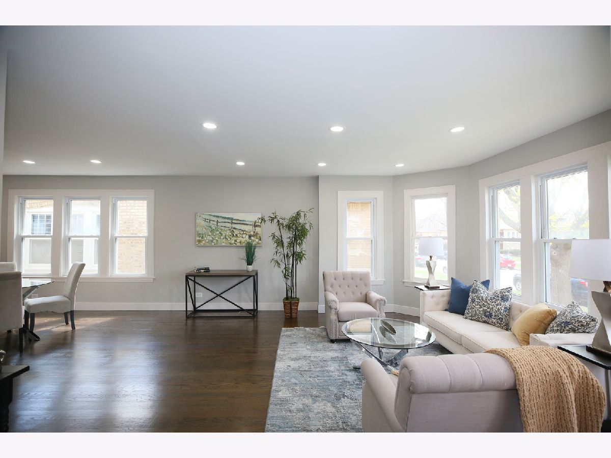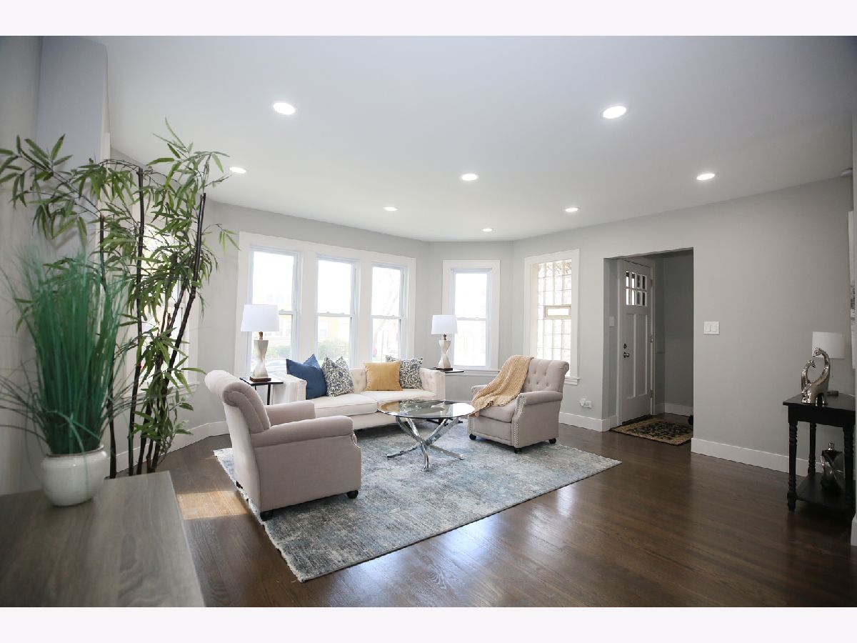 This stunning brick home has been thoughtfully remodeled with a sleek, modern aesthetic, featuring a clean color palette and elegant design throughout. Offering 5 bedrooms and 3 full bathrooms, this spacious home perfectly blends style, comfort, and functionality. The open-concept main level is a true highlight-seamlessly connecting the living room, dining area, and kitchen to create a bright and airy space ideal for both everyday living and entertaining. The living room is filled with natural light, while the dining area flows effortlessly into the fully updated kitchen, complete with gorgeous white quartz countertops, high-end stainless steel appliances, and slim white oak cabinetry. Upstairs, you'll find a huge primary suite with additional living space, providing a private retreat rarely found at this price point. The finished basement offers a large, versatile space perfect for family entertainment, recreation, or a home gym. Additional upgrades include new LED lighting, a new HVAC system, and a roof approximately 8-9 years old, giving peace of mind for years to come. Conveniently located just steps from public transportation, expressways, shopping, and only one block from schools, the library, and the park. Move right in and enjoy modern living at its best!