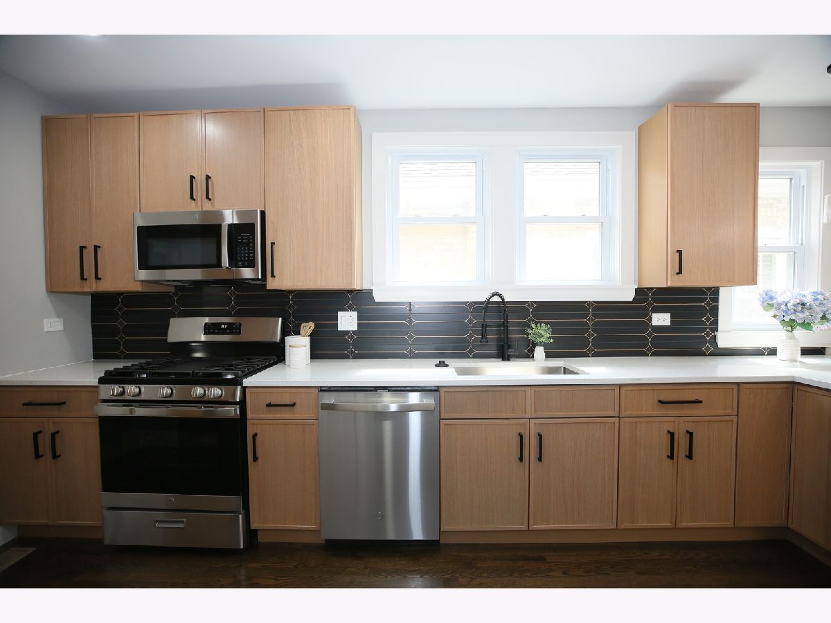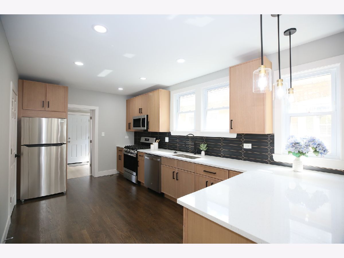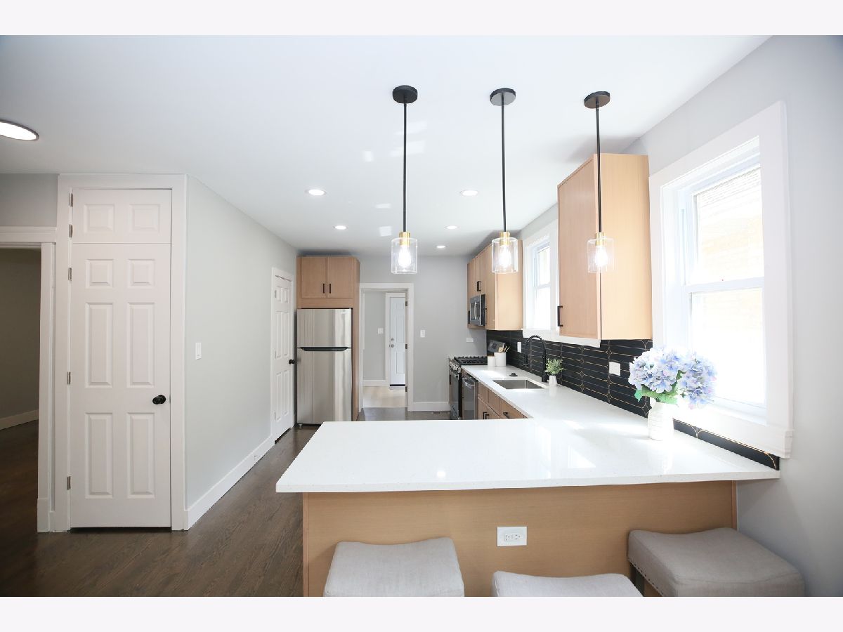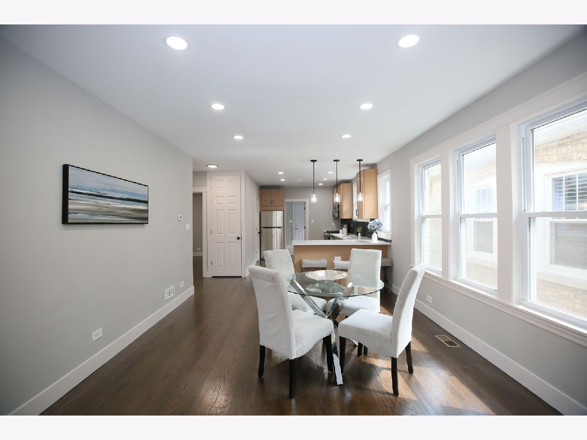 This stunning brick home has been thoughtfully remodeled with a sleek, modern aesthetic, featuring a clean color palette and elegant design throughout. Offering 5 bedrooms and 3 full bathrooms, this spacious home perfectly blends style, comfort, and functionality. The open-concept main level is a true highlight-seamlessly connecting the living room, dining area, and kitchen to create a bright and airy space ideal for both everyday living and entertaining. The living room is filled with natural light, while the dining area flows effortlessly into the fully updated kitchen, complete with gorgeous white quartz countertops, high-end stainless steel appliances, and slim white oak cabinetry. Upstairs, you'll find a huge primary suite with additional living space, providing a private retreat rarely found at this price point. The finished basement offers a large, versatile space perfect for family entertainment, recreation, or a home gym. Additional upgrades include new LED lighting, a new HVAC system, and a roof approximately 8-9 years old, giving peace of mind for years to come. Conveniently located just steps from public transportation, expressways, shopping, and only one block from schools, the library, and the park. Move right in and enjoy modern living at its best!