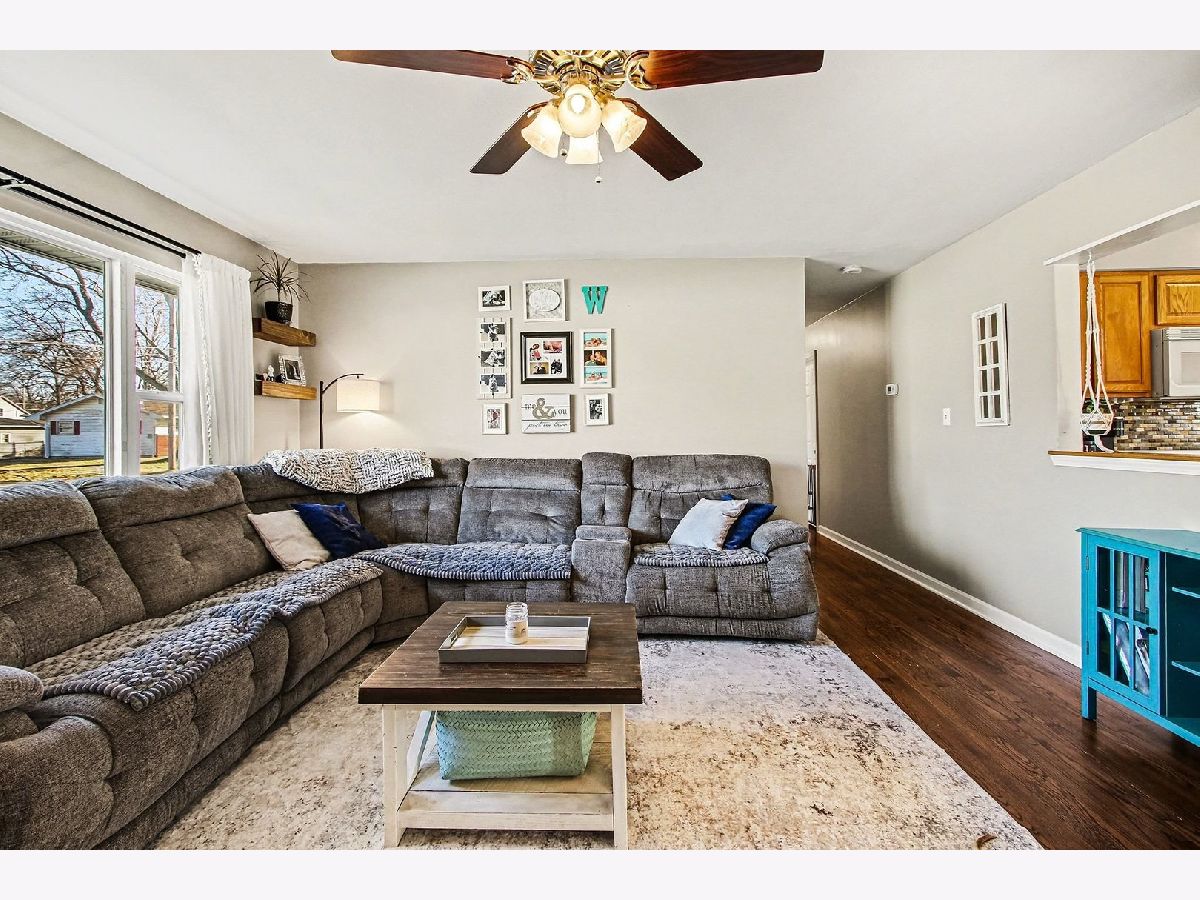 Pride of ownership is evident throughout this beautifully maintained 5-bedroom, 2-full-bath ranch home featuring a 2.5-car detached garage. Hardwood floors welcome you into the spacious living room, which opens to a large kitchen with oak cabinetry and included appliances. A convenient door leads to the paver patio, fenced backyard, and pool-perfect for relaxing or entertaining outdoors. The home offers a desirable split-bedroom layout with four bedrooms on one side and a generously sized primary bedroom on the other. Recent updates include a newer roof on both the home and garage (approximately 2 years old), seamless gutters, and Govee lighting. Additional highlights include vinyl siding, a long driveway providing ample parking, and a recently professionally landscaped front yard. Ideally located near schools, shopping, dining, the South Shore Train Line, major highways, and Indiana National and State Parks. This wonderful home is move-in ready-schedule your showing today!