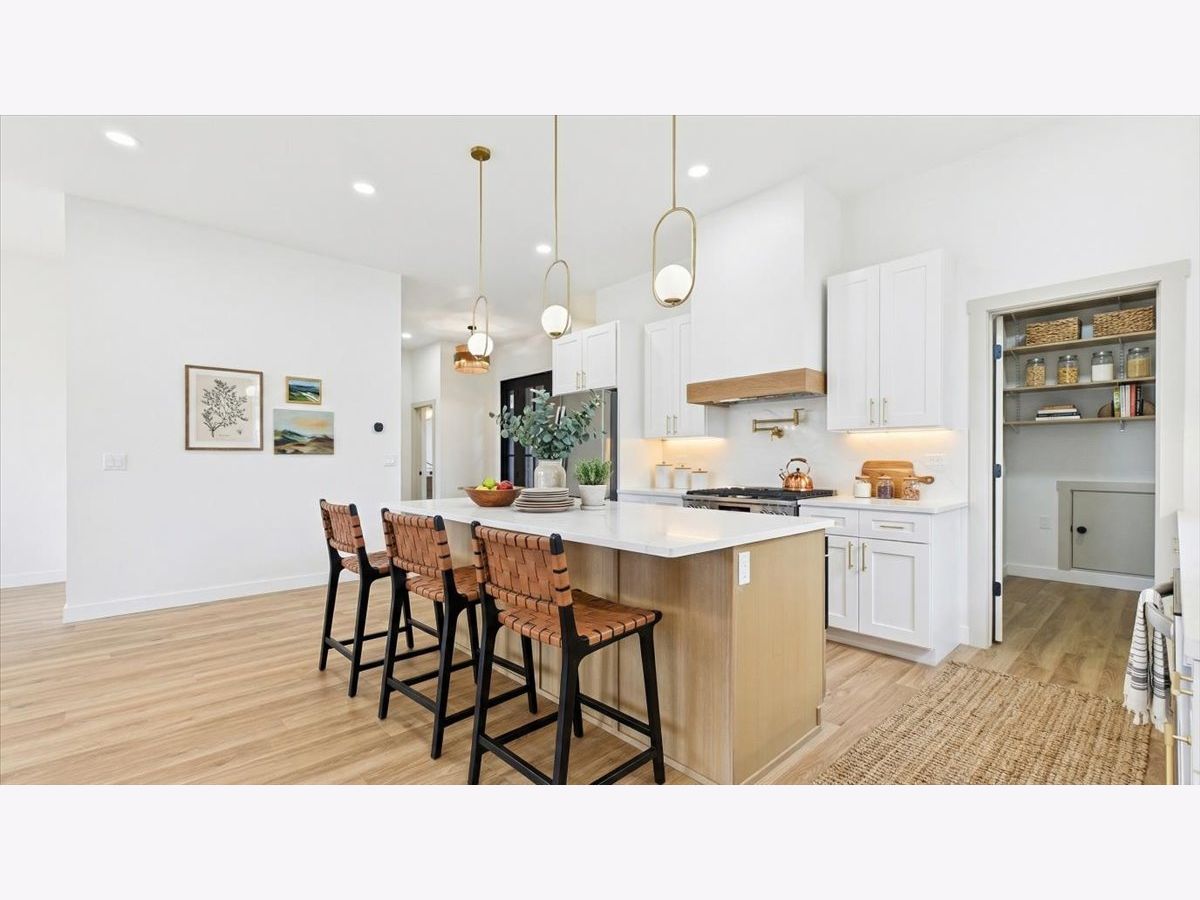Brand-new construction in Lake in the Hills with elevated design, quality craftsmanship, and a point of view rarely found at this price point. Designed by a local builder with an architectural background creating high-end single-family homes in the north suburbs for more than a decade, this 4-bedroom, 2.1-bath home brings thoughtful design, strong flow, and higher-level finishes to a market often dominated by more standard new construction. Set on a hillside lot with scenic views, the home offers approximately 2,970 square feet of finished living space, 10-foot ceilings on both levels, abundant natural light, and a layout designed for modern living. The open-concept main level features a striking fluted wood fireplace wall and seamless connection between the living, dining, and kitchen spaces. The kitchen pairs style and function with quartz countertops, a 36-inch range, pot filler, oversized island, butler's pantry, and a convenient grocery door from the attached garage. A sliding glass door opens to a private balcony, extending the living space outdoors. The main-level primary suite includes separate walk-in closets and a spa-inspired bath with double vanity and multi-head shower. The finished lower level offers high ceilings, a spacious recreation area, three additional bedrooms, a full bath, and exterior access. Andersen windows, Kohler fixtures, an insulated EV-ready garage with an 8-foot door, and carefully considered details throughout complete a home built to stand apart from the typical new construction landscape.