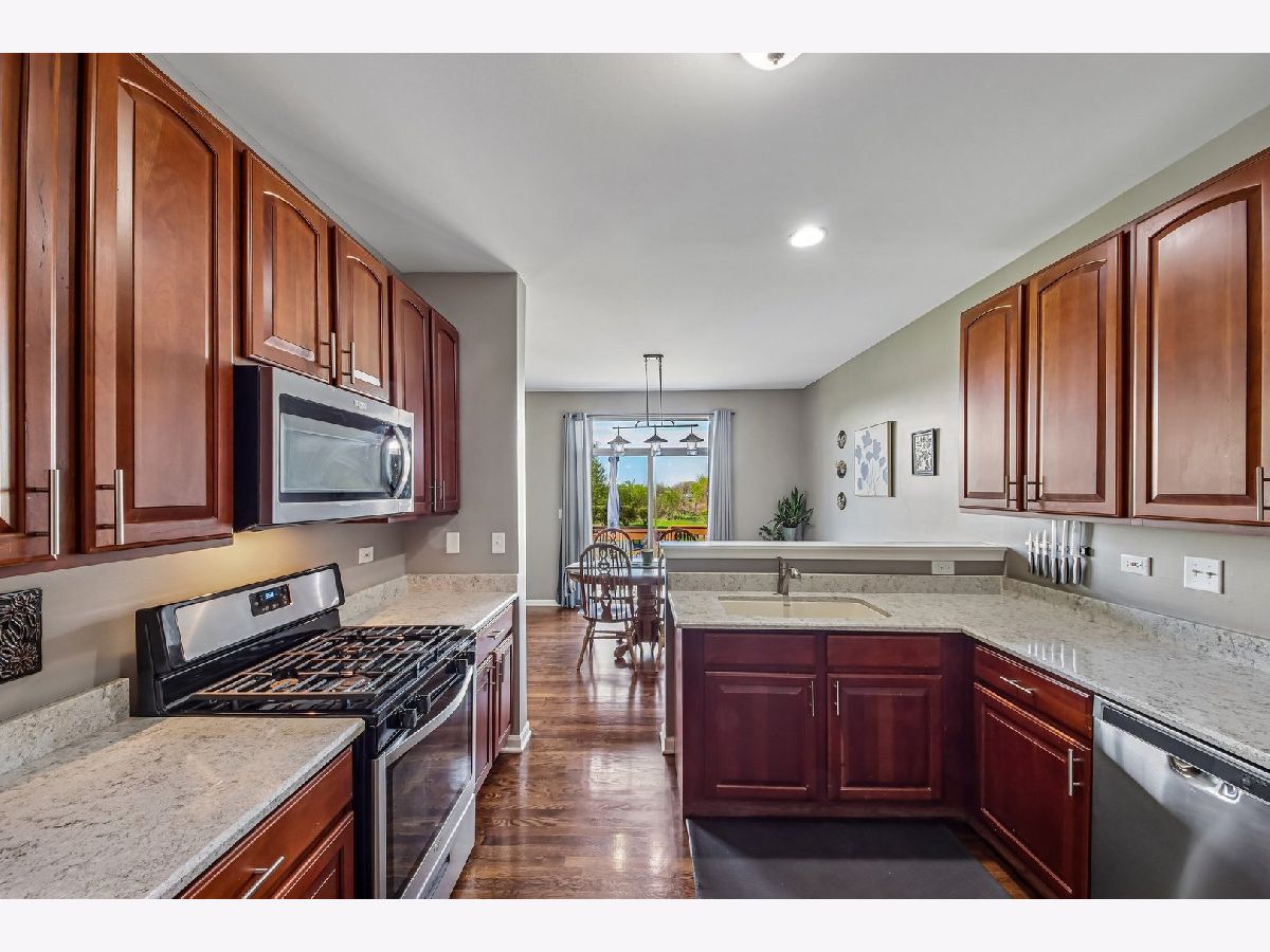 You will love this move-in ready townhome featuring 3 bedrooms, 2.5 baths, and a partially finished English basement. The light floods into the first floor, highlighting the beautiful hardwood flooring that flows through the spacious living and dining areas. The kitchen offers a great flow for entertaining and everyday living, with a sliding glass door leading out to the deck-perfect for enjoying those phenomenal west-facing sunsets and the open space beyond! Upstairs, you'll find a versatile nook area that serves as the perfect spot for a desk or a cozy sitting area. The Primary Suite is a true retreat, featuring dual closets and a private ensuite. Two additional generous bedrooms and a hall bath complete the second floor. The English basement provides plenty of extra hangout space, and you will appreciate how the light pours in through the large windows. This home is situated in a stellar location with a park at the end of the street featuring a playground, tennis courts, a pavilion, and walking paths that meander throughout the neighborhood. Plus, you are just minutes away from the Randall Rd corridor and all the shopping and restaurants it has to offer! This one won't last!