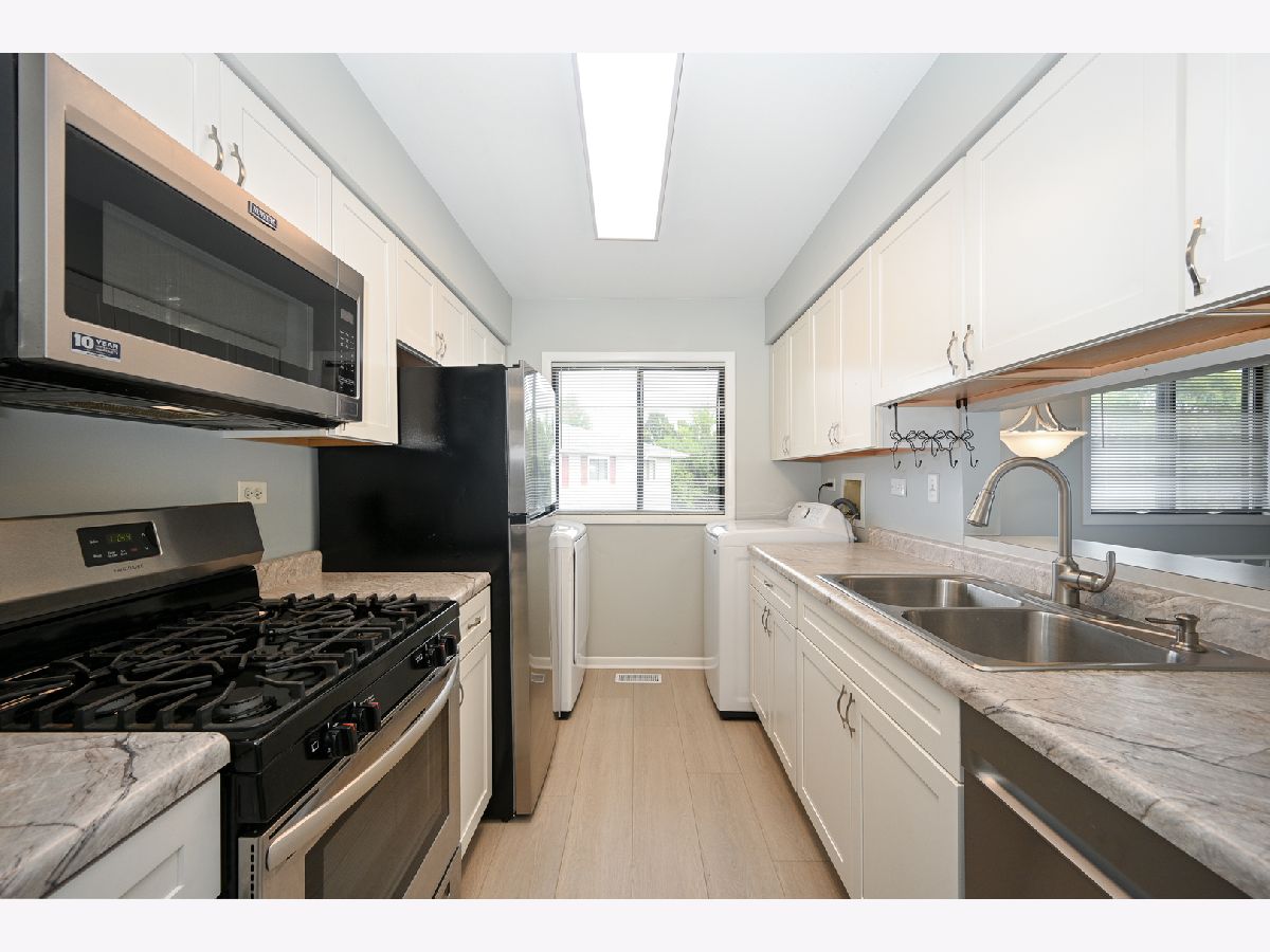 Penthouse Living in a Prime Location! Step into this beautifully updated 2nd-floor penthouse condo offering style, comfort, and convenience. Featuring 2 bedrooms and 1 full bath, this home shines with brand new flooring and a fresh, modern paint palette throughout. The kitchen has been remodeled with crisp white cabinetry and stainless steel appliances. Enjoy the ease of an in-unit washer and dryer, plus an attached 1-car garage for year-round convenience. Located in the highly regarded School District 200, this home offers the perfect blend of lifestyle and location. Fresh, move-in ready, and waiting for you-don't miss this opportunity!