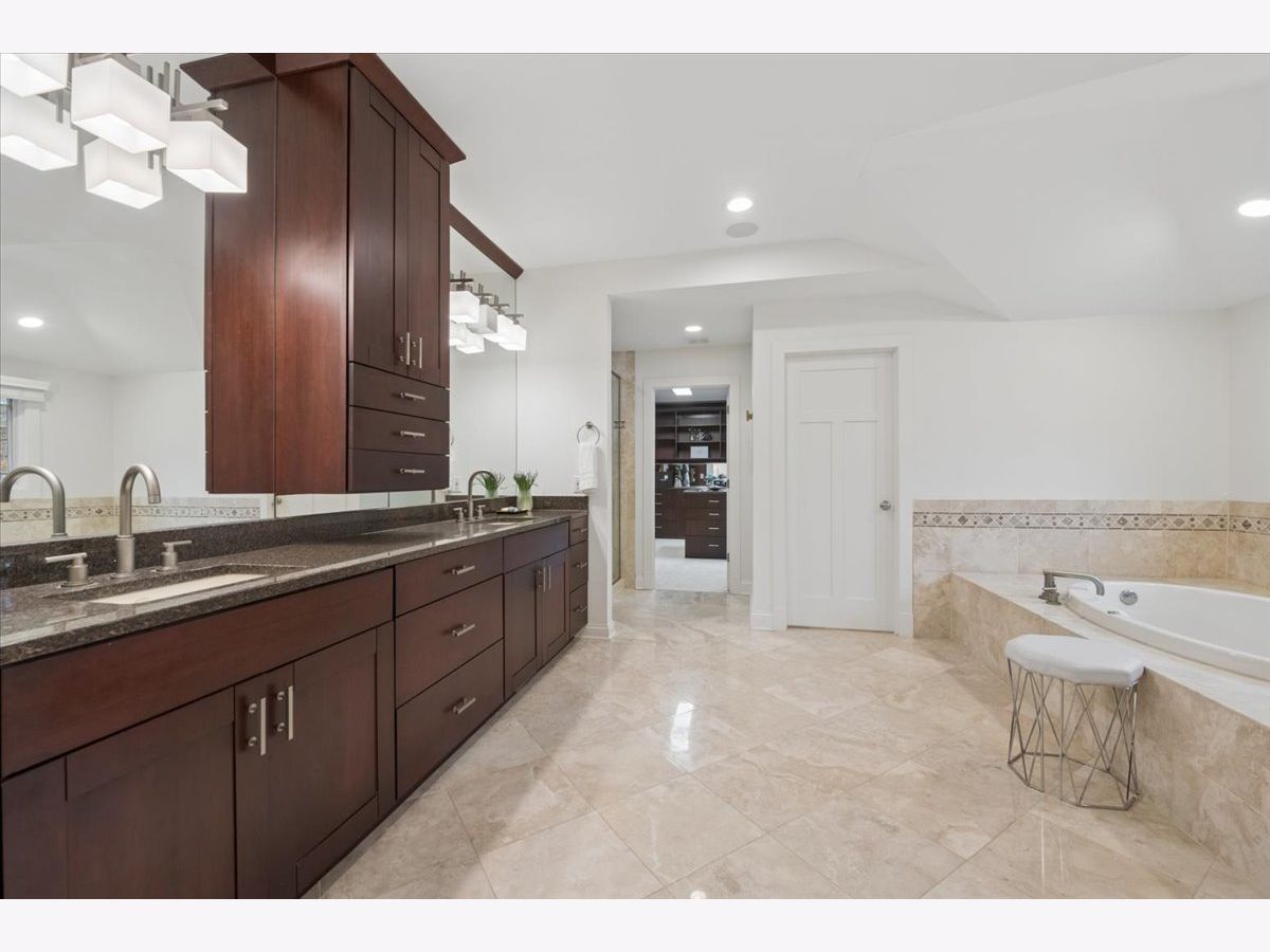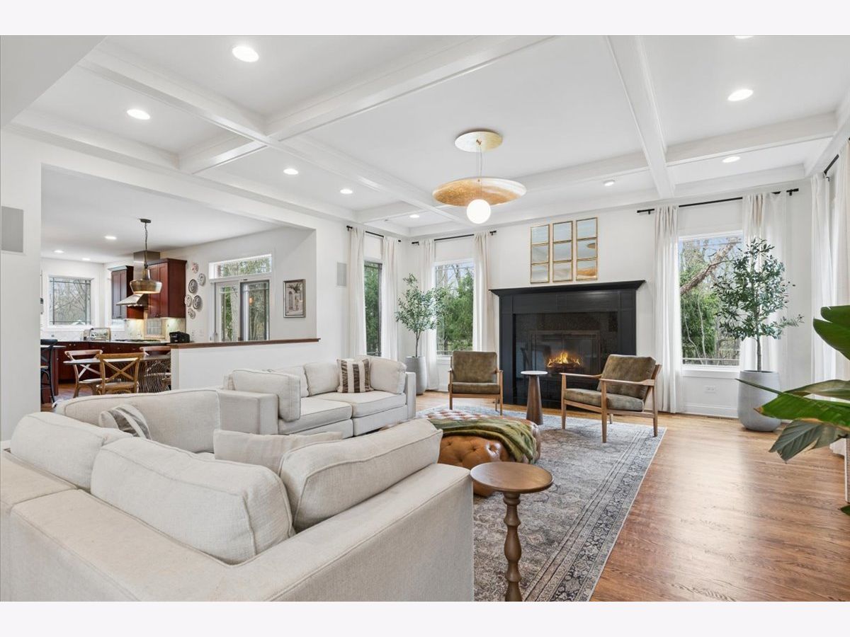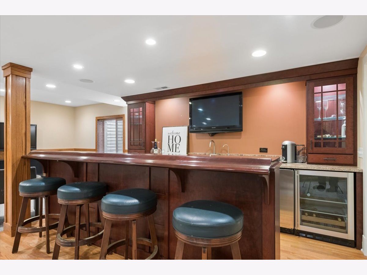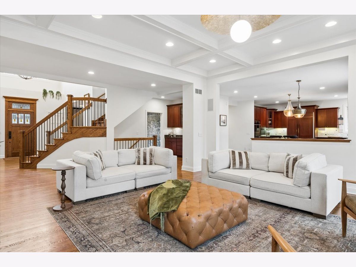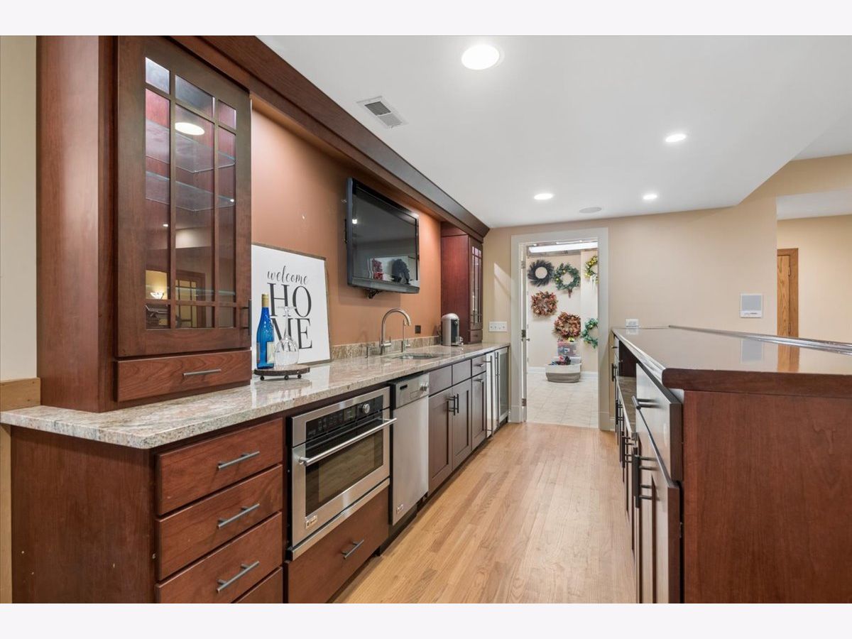 A quietly commanding presence rooted in architectural intention, this custom residence channels a refined Prairie aesthetic while delivering the scale, flow, and modern livability today's market demands. Set on an expansive half-acre, the home unfolds with a sense of openness and symmetry, where a dramatic two-story foyer introduces richly finished hardwood floors, curated lighting, and thoughtfully layered millwork that continues throughout. Formal living and dining spaces are elevated yet inviting, with sculptural fixtures and ceiling detail that add a subtle sense of drama without excess. At the heart of the home, the kitchen is both functional and beautifully composed-anchored by a generous island with seating, framed by granite surfaces, custom cabinetry, a walk-in pantry, and a full suite of premium appliances-seamlessly connecting to a sunlit breakfast room with direct access to the patio for effortless indoor-outdoor entertaining. The adjoining family room offers warmth and architectural depth with its coffered ceiling and ambient lighting, creating a natural gathering space. A versatile main-level office or fifth bedroom with ensuite bath provides flexibility for guests or work-from-home living, complemented by a well-appointed mudroom and powder room. Upstairs, the primary suite is designed as a private retreat, featuring vaulted ceilings and an adjoining sitting room with custom built-ins and beverage station, while the spa-caliber bath is finished with heated flooring, dual vanities, soaking tub, and an oversized shower with rainfall fixture. Additional bedrooms are generously proportioned, including an ensuite and thoughtfully designed closets, while a dedicated laundry room enhances everyday ease. The lower level extends the home's livability with a fully finished recreation space, complete with a wet bar, fitness room, additional bedroom, and a luxe bath featuring a steam shower-ideal for both entertaining and extended stays. Outdoors, a newly expanded brick paver patio offers a serene setting for gatherings, framed by mature landscaping and a fully fenced yard. A rare four-car heated garage, whole-house generator, and extensive mechanical updates-including newer HVAC systems, lighting, and finishes-underscore the home's turnkey appeal. This is a residence that balances architectural pedigree with modern comfort, offering a lifestyle defined by space, privacy, and effortless sophistication.