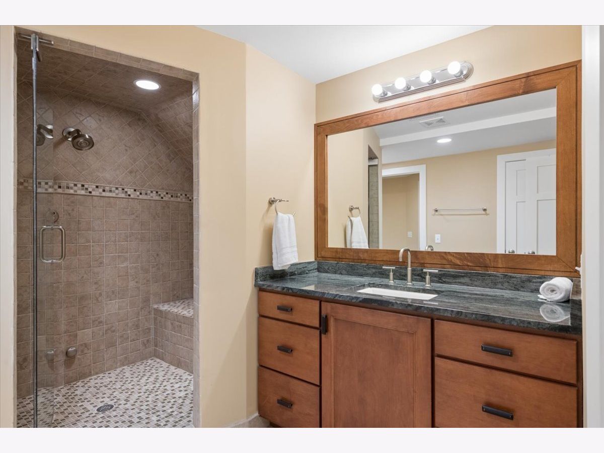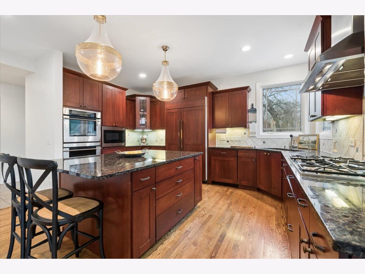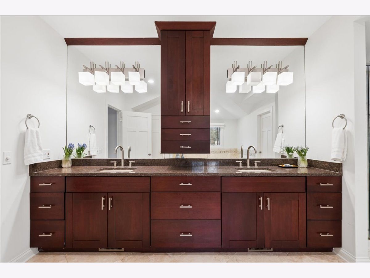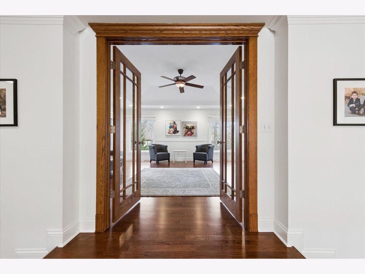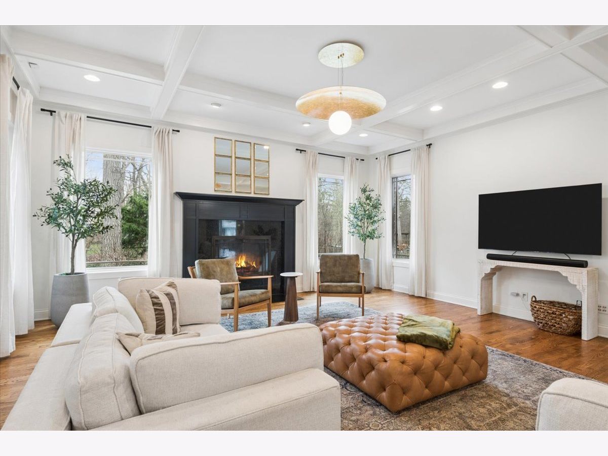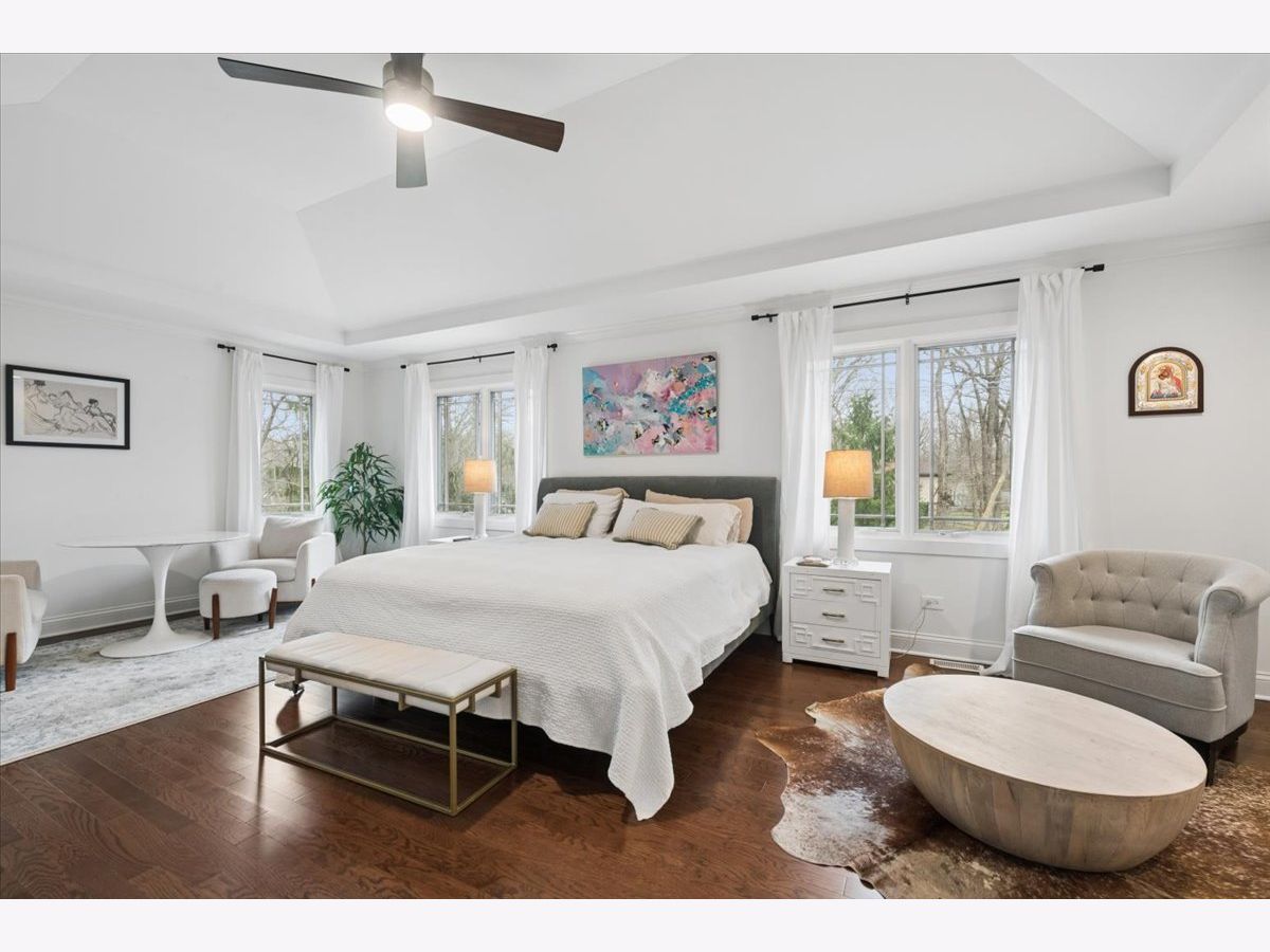 A quietly commanding presence rooted in architectural intention, this custom residence channels a refined Prairie aesthetic while delivering the scale, flow, and modern livability today's market demands. Set on an expansive half-acre, the home unfolds with a sense of openness and symmetry, where a dramatic two-story foyer introduces richly finished hardwood floors, curated lighting, and thoughtfully layered millwork that continues throughout. Formal living and dining spaces are elevated yet inviting, with sculptural fixtures and ceiling detail that add a subtle sense of drama without excess. At the heart of the home, the kitchen is both functional and beautifully composed-anchored by a generous island with seating, framed by granite surfaces, custom cabinetry, a walk-in pantry, and a full suite of premium appliances-seamlessly connecting to a sunlit breakfast room with direct access to the patio for effortless indoor-outdoor entertaining. The adjoining family room offers warmth and architectural depth with its coffered ceiling and ambient lighting, creating a natural gathering space. A versatile main-level office or fifth bedroom with ensuite bath provides flexibility for guests or work-from-home living, complemented by a well-appointed mudroom and powder room. Upstairs, the primary suite is designed as a private retreat, featuring vaulted ceilings and an adjoining sitting room with custom built-ins and beverage station, while the spa-caliber bath is finished with heated flooring, dual vanities, soaking tub, and an oversized shower with rainfall fixture. Additional bedrooms are generously proportioned, including an ensuite and thoughtfully designed closets, while a dedicated laundry room enhances everyday ease. The lower level extends the home's livability with a fully finished recreation space, complete with a wet bar, fitness room, additional bedroom, and a luxe bath featuring a steam shower-ideal for both entertaining and extended stays. Outdoors, a newly expanded brick paver patio offers a serene setting for gatherings, framed by mature landscaping and a fully fenced yard. A rare four-car heated garage, whole-house generator, and extensive mechanical updates-including newer HVAC systems, lighting, and finishes-underscore the home's turnkey appeal. This is a residence that balances architectural pedigree with modern comfort, offering a lifestyle defined by space, privacy, and effortless sophistication.