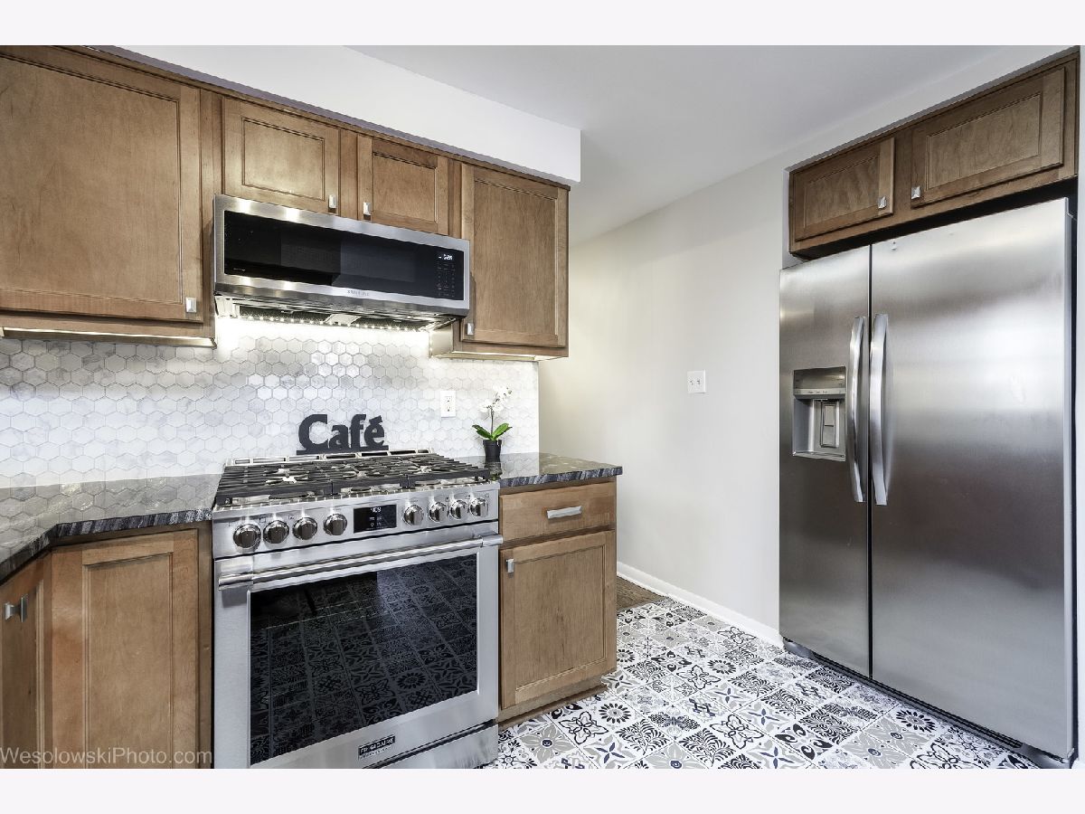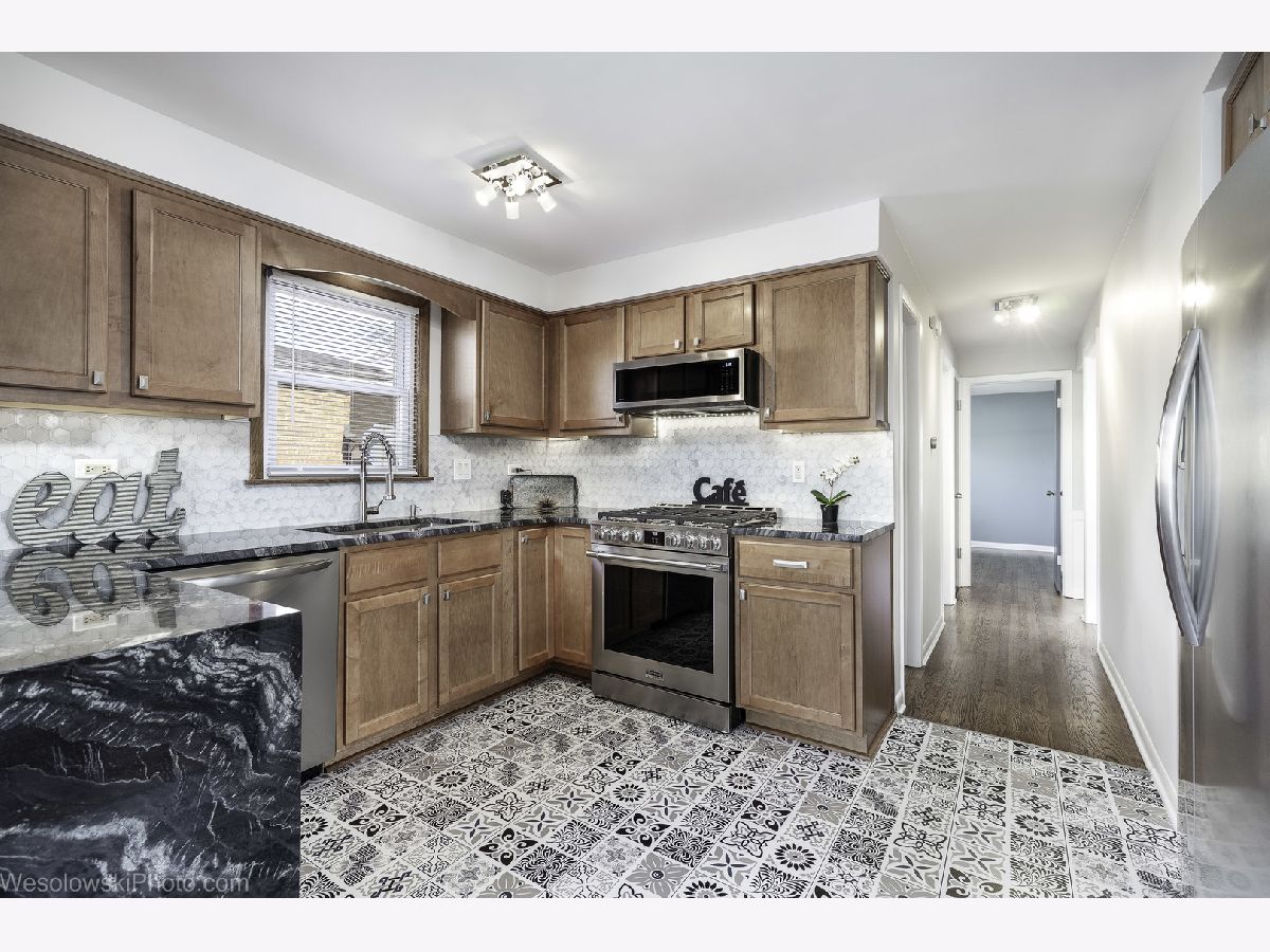 Large, exceptional solid brick raised ranch with a side drive and over-size 2.5 car garage, located on quiet suburban style cul de sac. The home was remodeled by the reputable North Shore contractor with an excellent track record. The main floor features 3 good size bedrooms, 2 baths, LR with a fireplace and a large kitchen open to the dining area. Gleaming oak floors throughout the entire main level. Luxuriously finished lower level with 2 additional bedrooms, sizable bathroom with walk-in shower and huge fam. room with e-fireplace, wet bar and wine cooler. Major improvements include new roof, aluminium capping/soffits and over-sized downspouts, new concrete patio and large part of the driveway, all exterior and garage doors. Newer 90+ furnace and AC, high end appliances, quality fixtures and finishes throughout. 1 y platinum home warranty included.