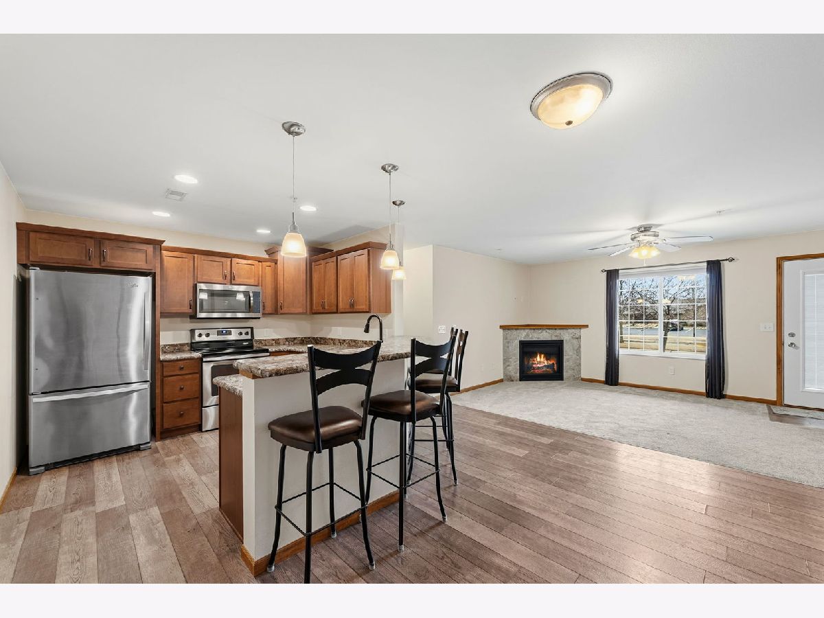 Hello there! I've been waiting to meet you. I'm fun and easy-going first-floor condo, and the best part about me?NO stairs! That means simple comfortable living and easy coming and going every single day. Step inside and you'll notice I like to keep things open and welcoming. My kitchen and dining area flow together nicely, making it easy to cook, chat and gather all in one space. My living room is ready to help you unwind with a cozy corner fireplace-perfect for relaxing nights or a quiet cup of coffee in the morning. I come with 2 bedrooms and 2 bathrooms, giving everyone their own comfortable space. My primary bedroom is a bit of a show-off with its private en-suite bathroom and a walk in closet that's ready to hold all your favorite things. I also have a 2 car garage, so your vehicles, bikes and extra storage have a place to call home too. Location-wise I'm pretty proud of myself. I'm tucked into a convenient spot near stores, parks,restaurants and the interstate, so whether you're running errands, grabbing dinner everything is close and easy. Now here's one of my favorite perks-the lawn care and snow removal are all taken care of for you. More time for enjoying life! The only thing missing is you. Move in, add your personal touches, and make me feel like home. I'm ready for my next chapter.
