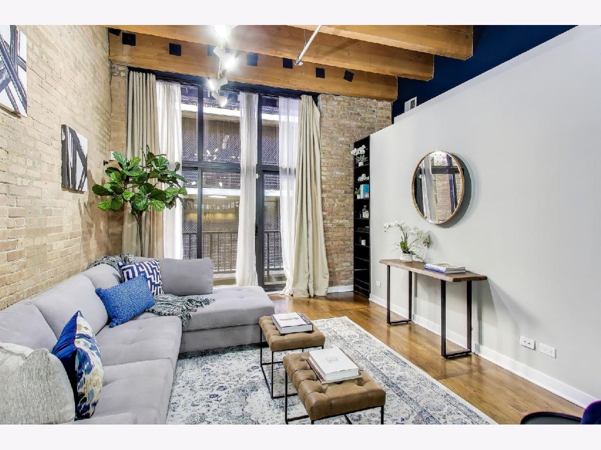 Welcome to this stunning 2-bedroom, 2-bath timber loft in the heart of River North where classic Chicago character meets modern style! Soaring 13'+ beamed ceilings, exposed brick, and refinished hardwood floors set an impressive tone the moment you walk in. This bright corner unit offers a proper entryway with generous storage that opens into a spacious, open-concept living area perfect for entertaining or unwinding in style. The split-bedroom layout enhances privacy, while the kitchen shines with stainless steel appliances, granite countertops, a tile backsplash, and a large peninsula ideal for cooking and conversation. The primary suite features a refreshed bathroom with modern tile and a sleek shower. Enjoy the convenience of in-unit laundry, a large private storage room, and access to the building's fitness center. Step outside to your 12x5 private balcony or head up to the newly renovated rooftop deck showcasing spectacular city views. Heated garage parking included in the price.