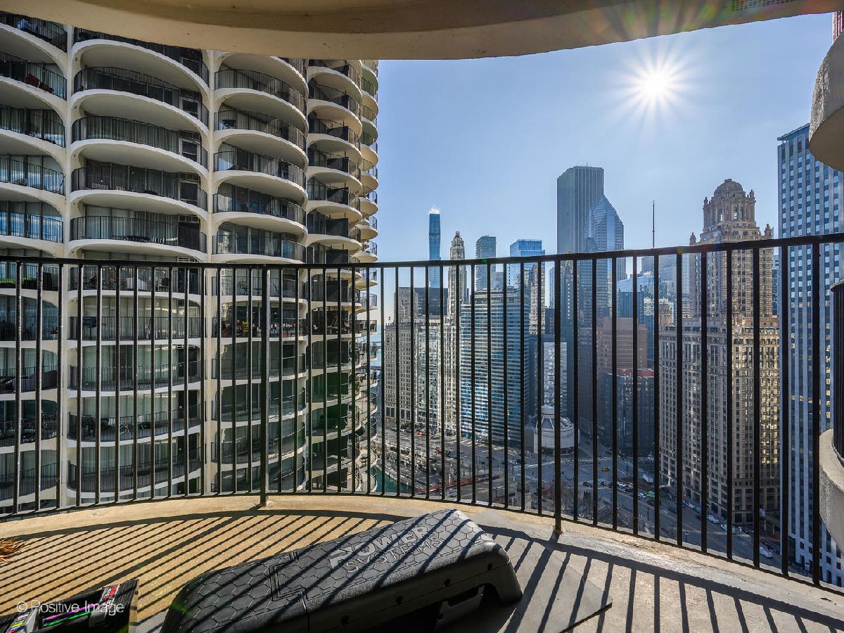 Live within a world icon - welcome to Marina City! These infamous towers are located in the heart of River North on the iconic Chicago Riverwalk. The desirable '08 tier offers sweeping riverfront and downtown views, with slices of Lake Michigan. This condo was tastefully renovated, preserving vintage charm while offering modern amenities and touches. The open-concept living / dining / kitchen area is great for entertaining. The kitchen features higher-end stainless steel appliances and generous counter space on stone countertops. The bathroom has been completely updated with a large walk-in shower and new fixtures. Outdoor space is phenomenal, especially for a downtown condo, with a very large balcony off the living area, and a second balcony off the bedroom! Marina City is a full-amenity building with 24-hour door staff, a fitness center, rooftop deck, party room, valet parking, on-site market, dry cleaner, and more. This is a very well run property with a financially strong association. In the event you wish to rent out the condo, this development is investor friendly. Don't miss out on the chance to not just live well, but iconically in one of the most recognizable structures in the United States!