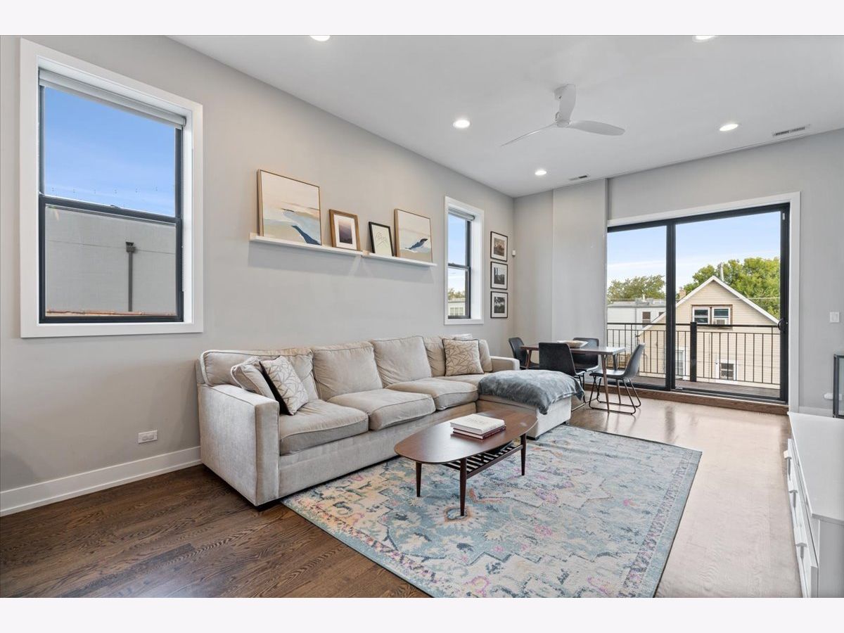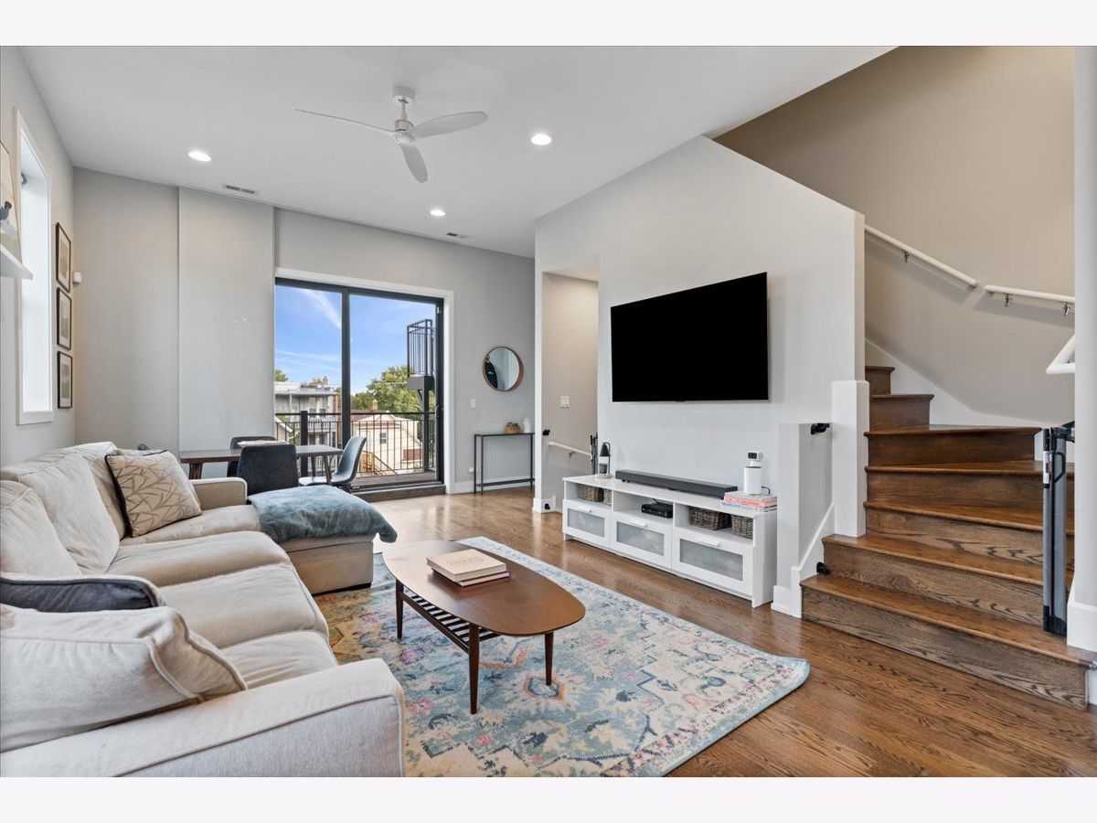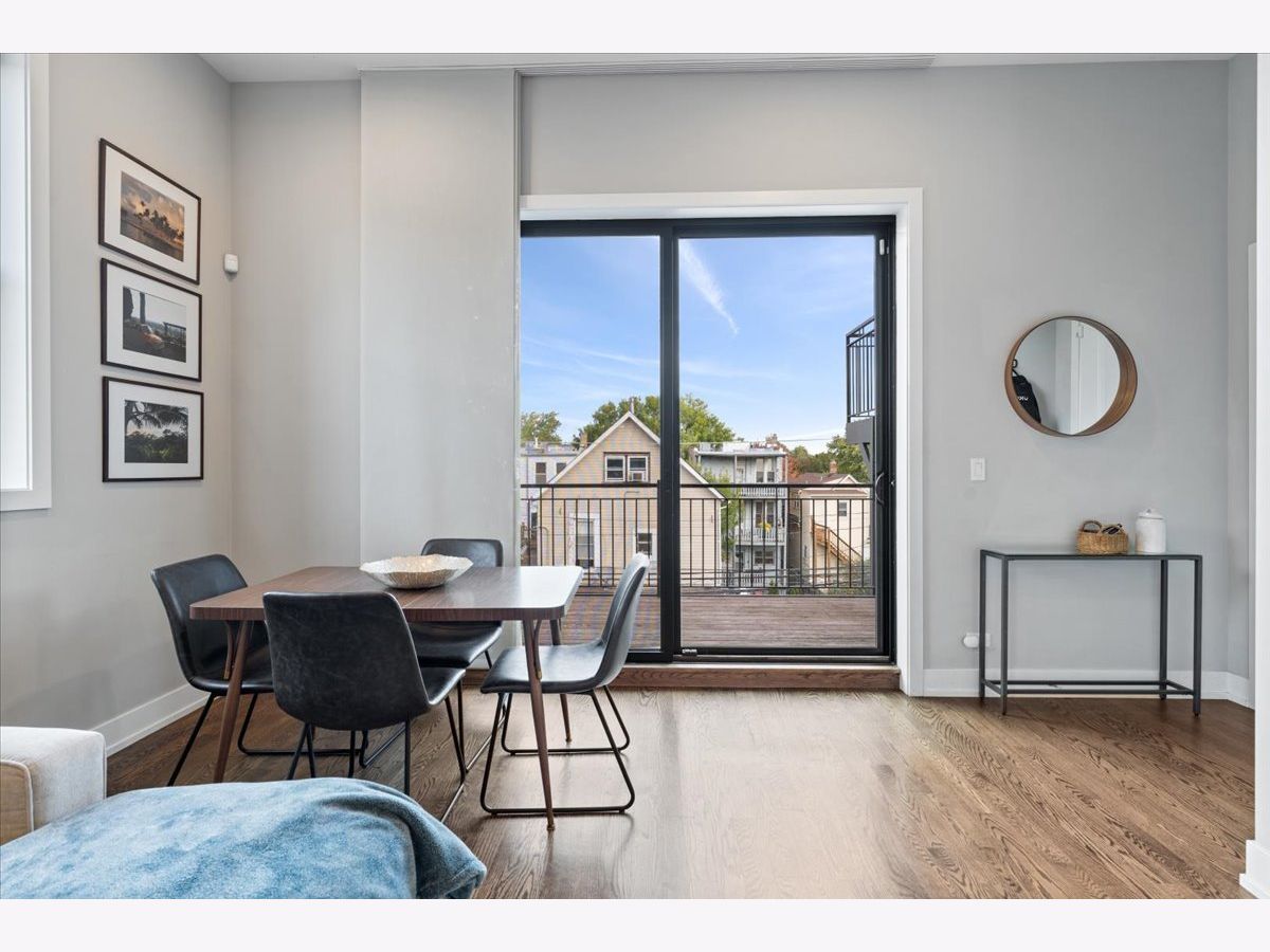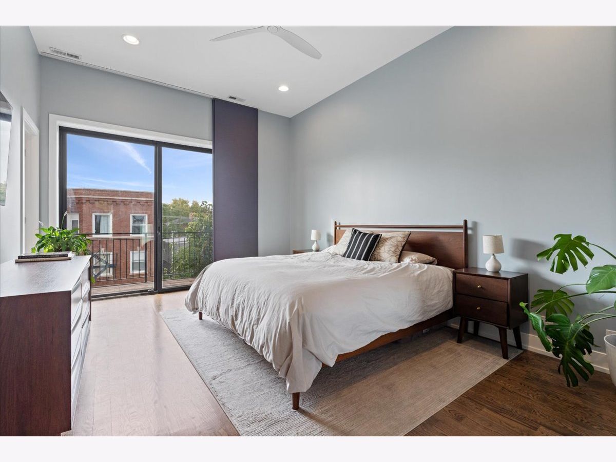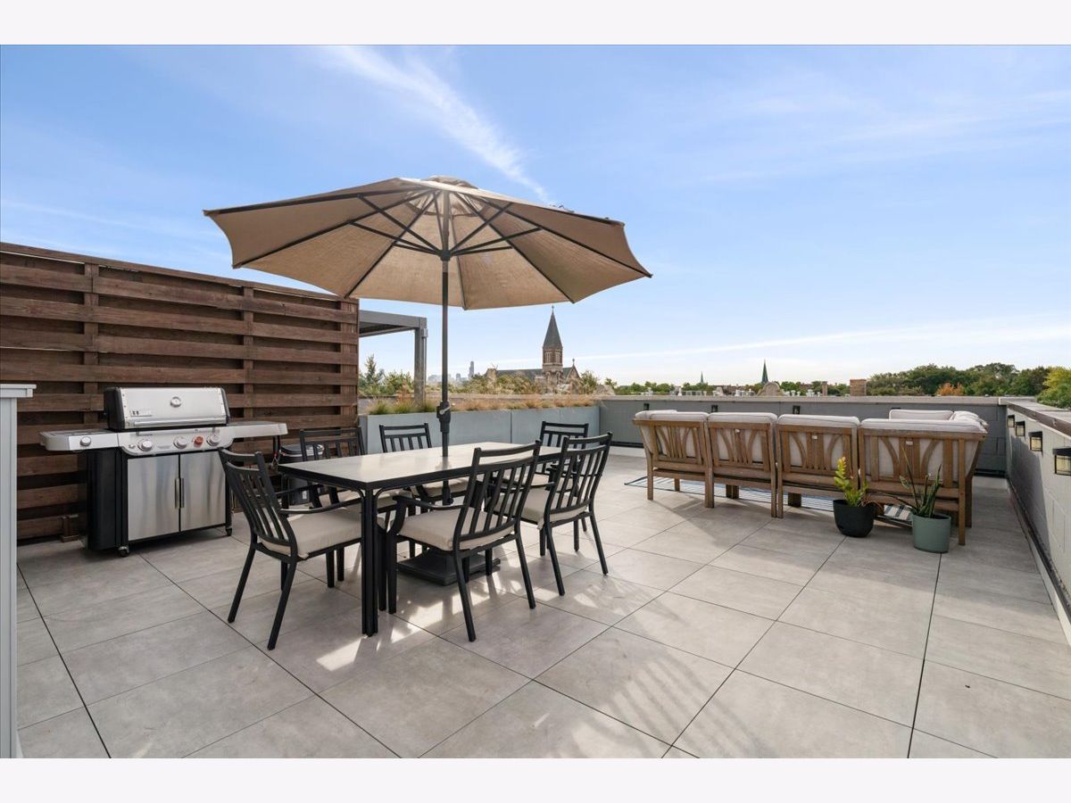 Great opportunity in the heart of Logan Square steps from Palmer Square Park and the farmer's market all Summer and the Blue Line along with everything the area has to offer! Newer construction unit features 3 levels of living with 3 bedrooms, 2.5 bathrooms and an office along with 4 outdoor spaces! This triplex unit has great natural light and the main level features an open-concept modern kitchen w/ custom flat panel cabinetry, quartz countertops, Bosch SS appliances, and white subway tile backsplash. Kitchen is open to a full - width living room and dining space w/ very high ceilings and leads out to a private balcony. This along with the powder room complete the space making it ideal for entertaining purposes. This level is also home to the side by side laundry room w/ additional storage. As you walk further you have a spacious primary suite w/ walk in closet, spa-caliber bath w/ dual vanities and heated floors and walk in rain shower w/ bench. The second private outdoor space is off the primary bedroom . As you head downstairs you have two bedrooms along w/ a full bathroom and extra storage beneath the stairs. One of the bedrooms has a private balcony as well. The top level is home to the office/den and leads right out to the private rooftop deck w/ skyline views. One garage parking space is included in the price and unit also has additional storage closet in basement. All of this just steps from shops, restaurants, the expressway, public transportation, bars, parks and more.