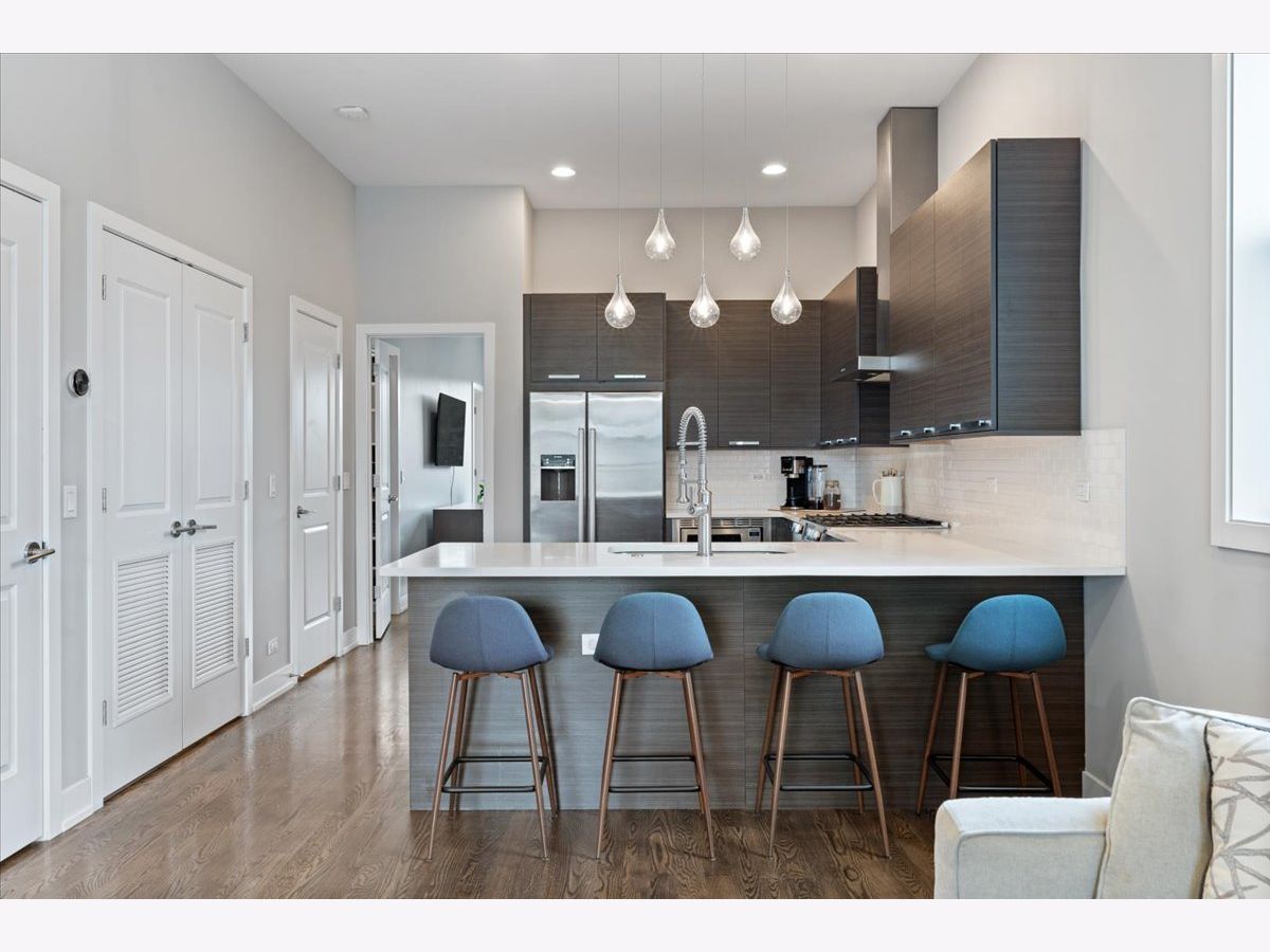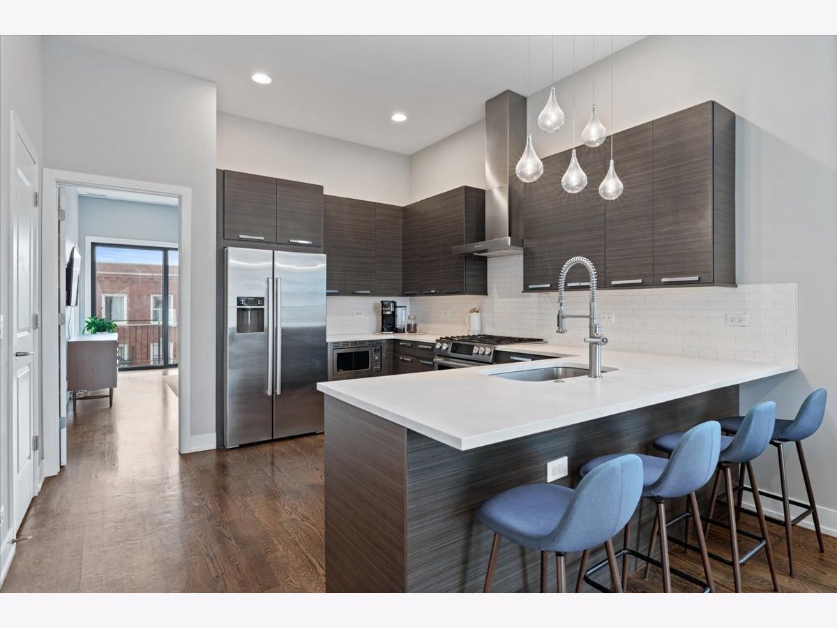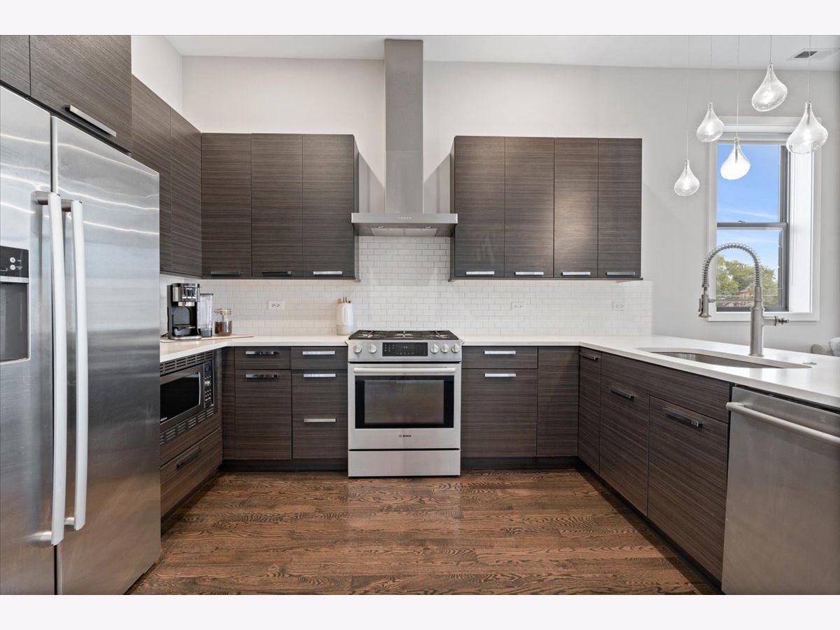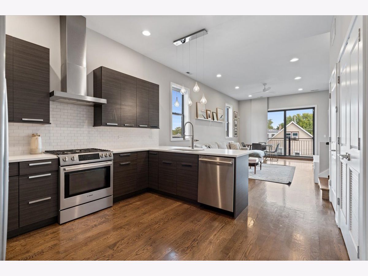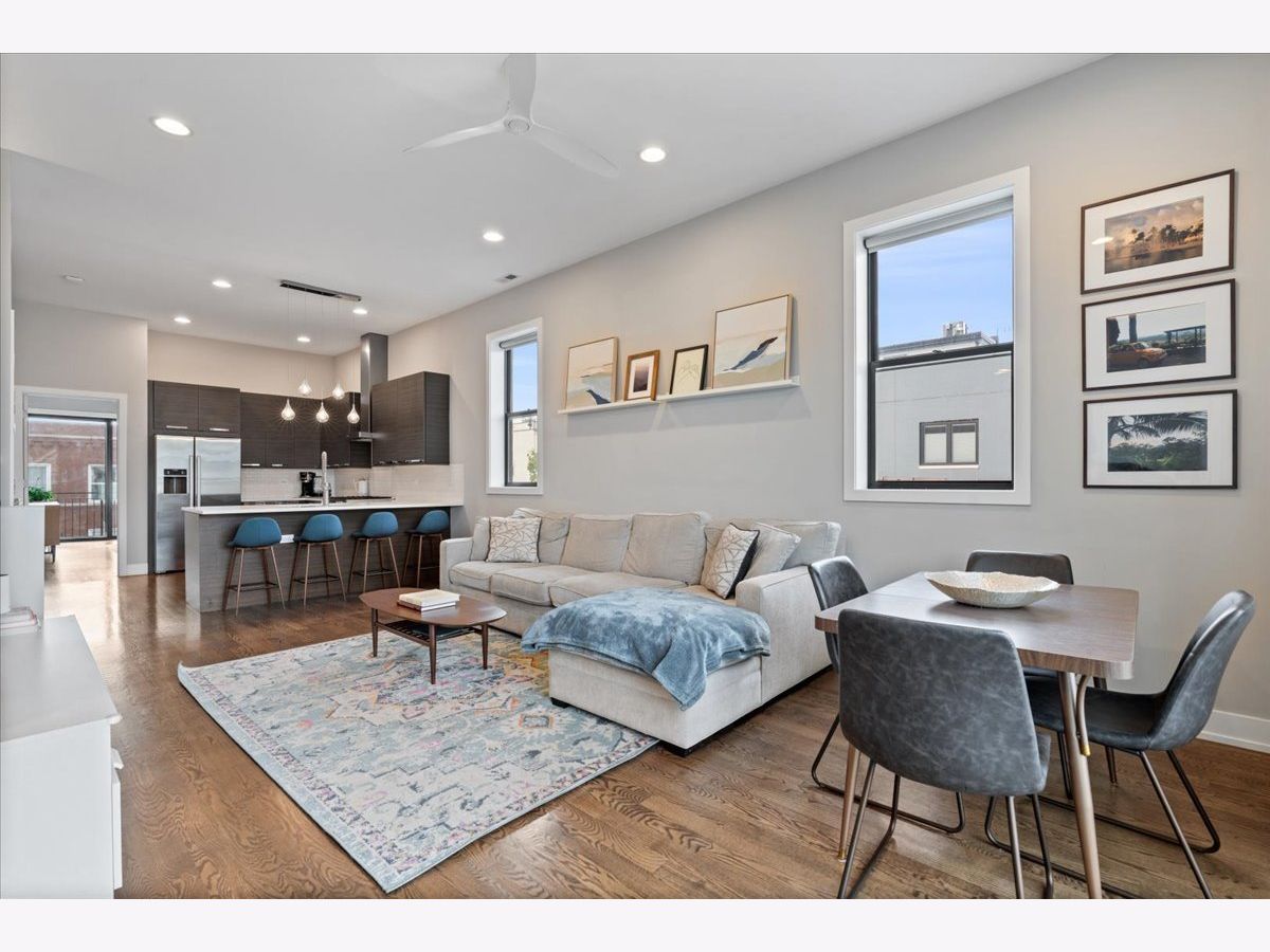 Great opportunity in the heart of Logan Square steps from Palmer Square Park and the farmer's market all Summer and the Blue Line along with everything the area has to offer! Newer construction unit features 3 levels of living with 3 bedrooms, 2.5 bathrooms and an office along with 4 outdoor spaces! This triplex unit has great natural light and the main level features an open-concept modern kitchen w/ custom flat panel cabinetry, quartz countertops, Bosch SS appliances, and white subway tile backsplash. Kitchen is open to a full - width living room and dining space w/ very high ceilings and leads out to a private balcony. This along with the powder room complete the space making it ideal for entertaining purposes. This level is also home to the side by side laundry room w/ additional storage. As you walk further you have a spacious primary suite w/ walk in closet, spa-caliber bath w/ dual vanities and heated floors and walk in rain shower w/ bench. The second private outdoor space is off the primary bedroom . As you head downstairs you have two bedrooms along w/ a full bathroom and extra storage beneath the stairs. One of the bedrooms has a private balcony as well. The top level is home to the office/den and leads right out to the private rooftop deck w/ skyline views. One garage parking space is included in the price and unit also has additional storage closet in basement. All of this just steps from shops, restaurants, the expressway, public transportation, bars, parks and more.